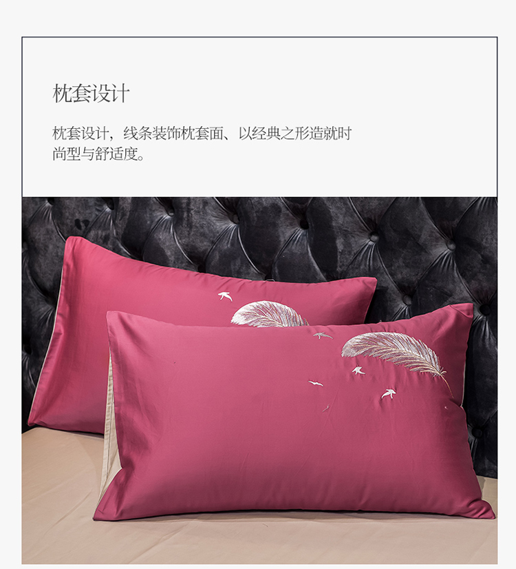 商品名称:骏腾 2022新款全棉羽毛绣花四件套 羽毛-豆沙+卡其