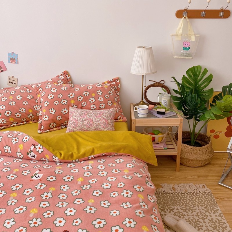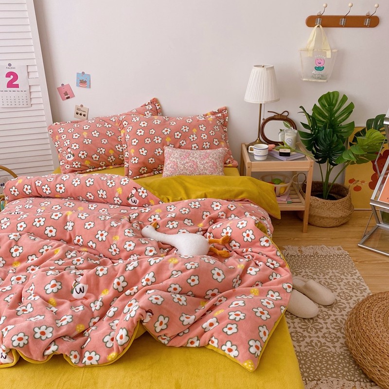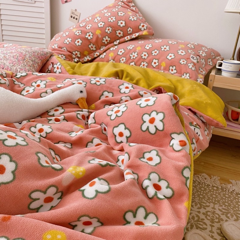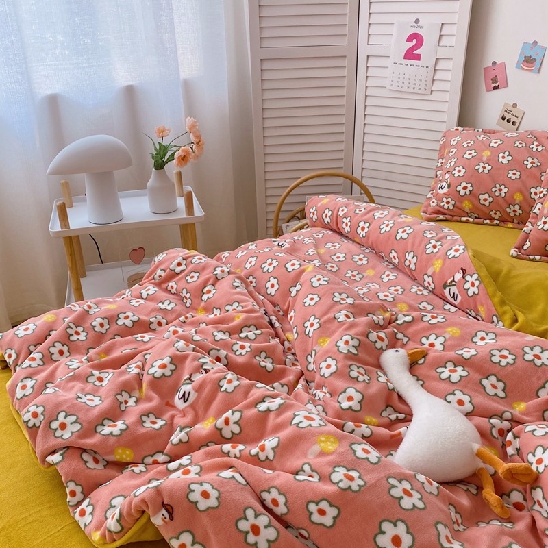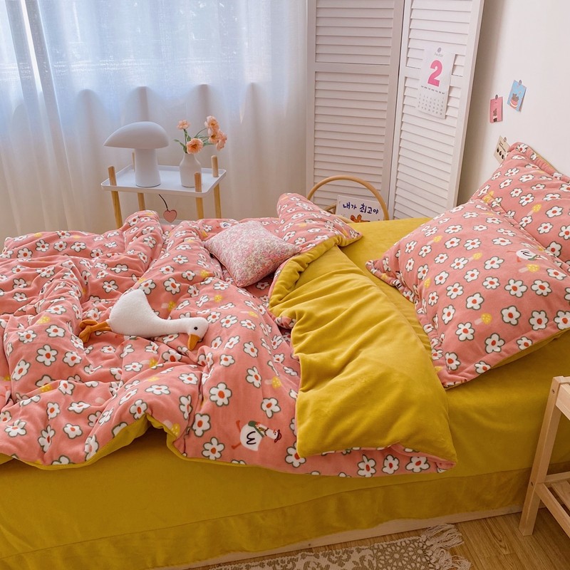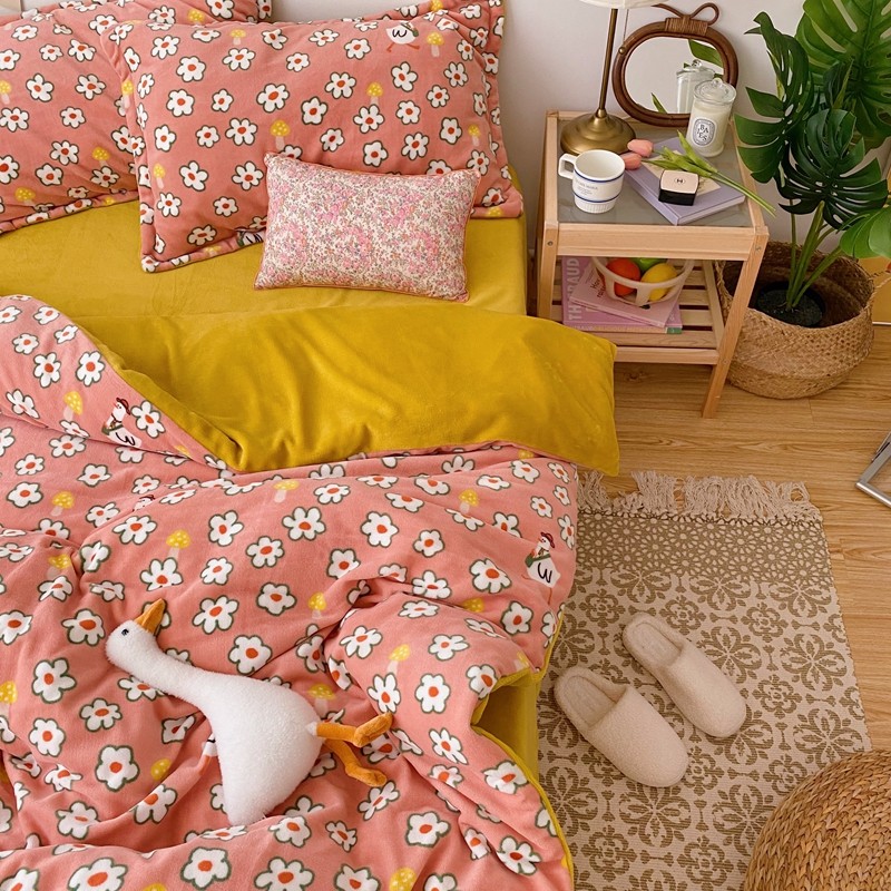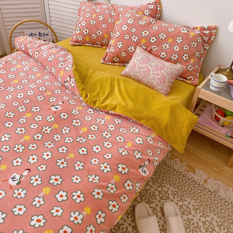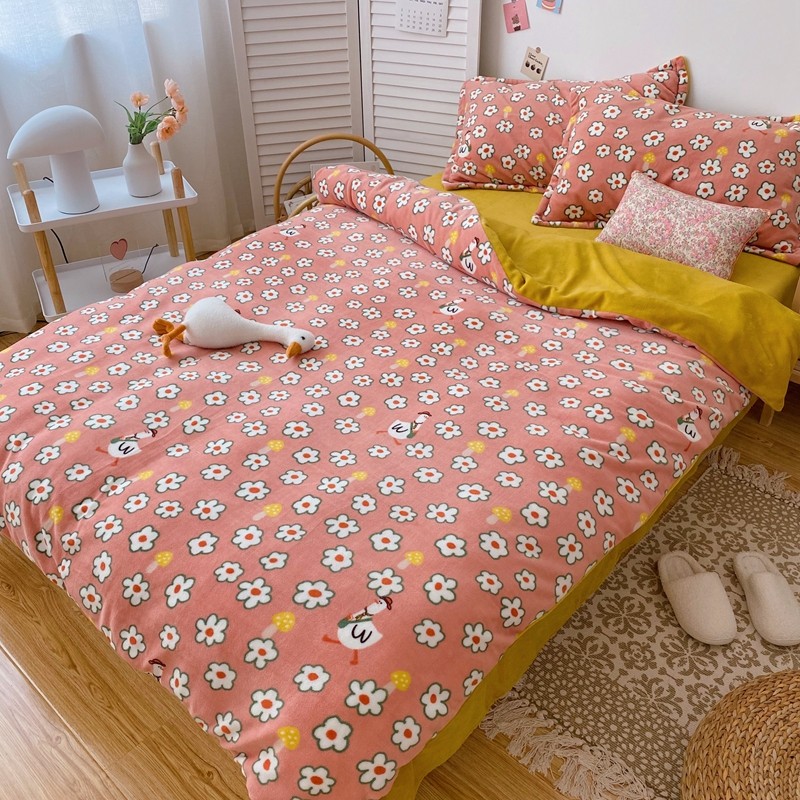 星期八 2020新款秋冬加厚保暖牛奶绒四件套 可爱小鹅