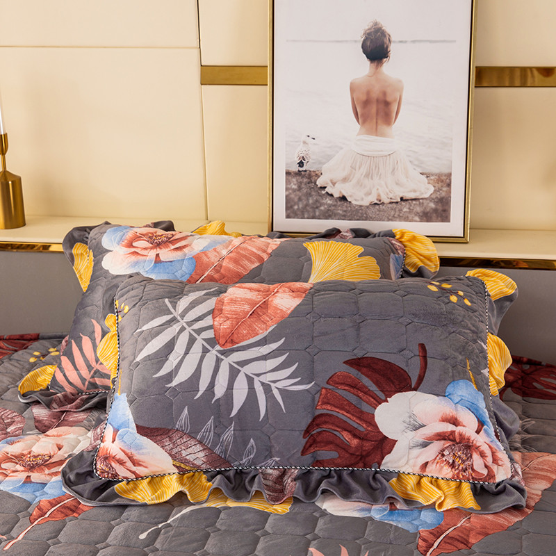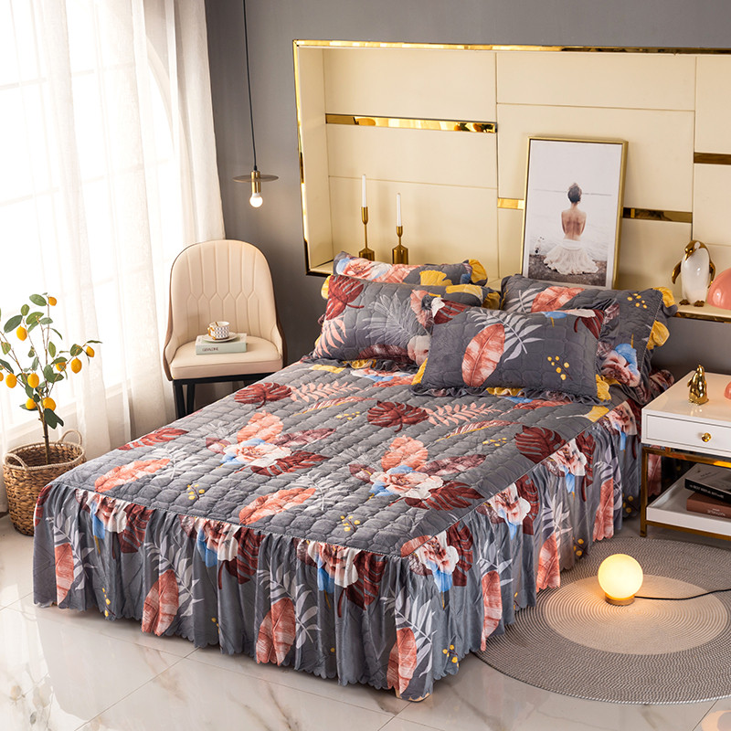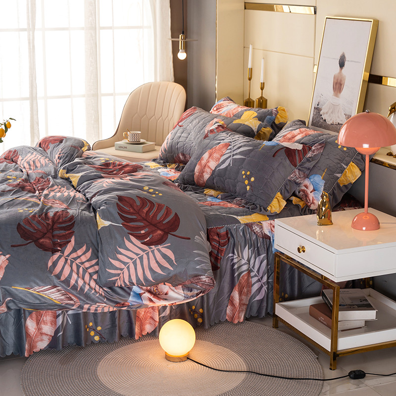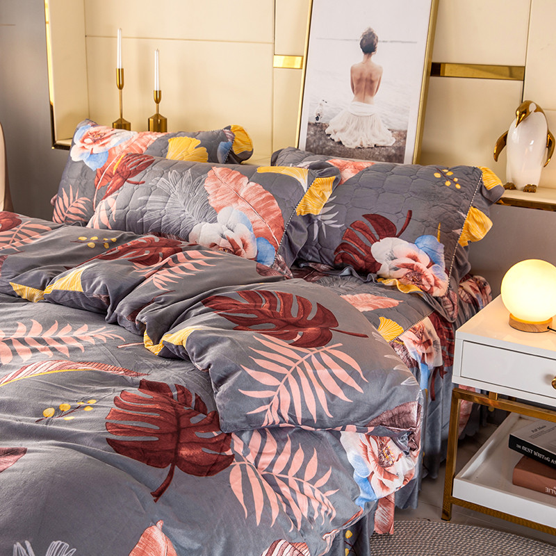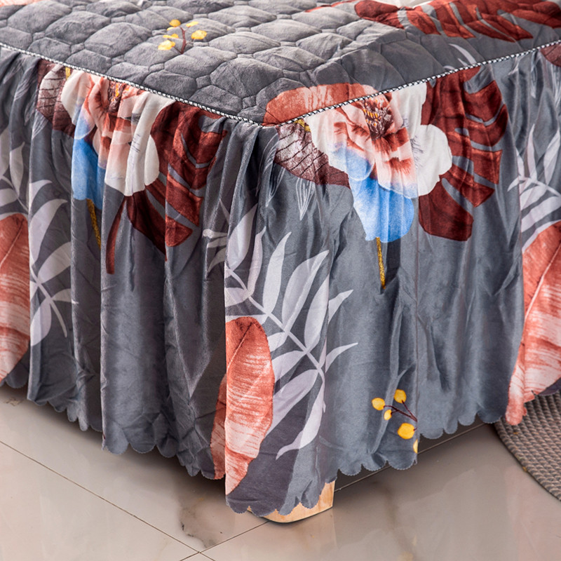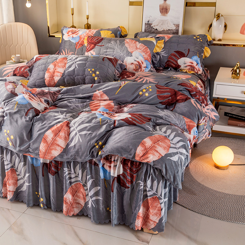 商品名称:纽缦 2020新款绒夹棉床裙四件套 花语灰