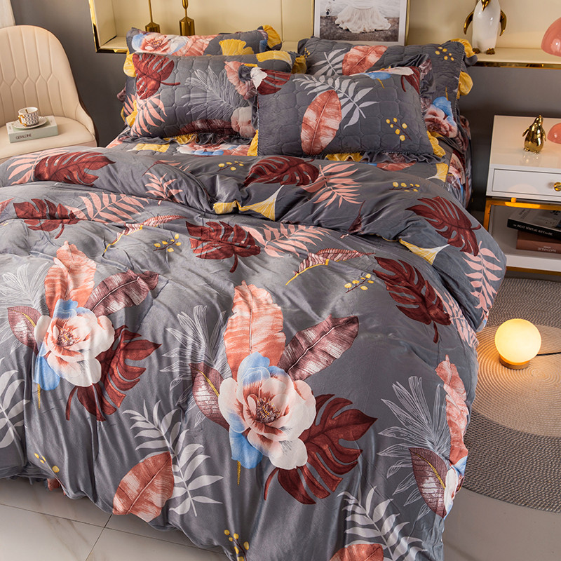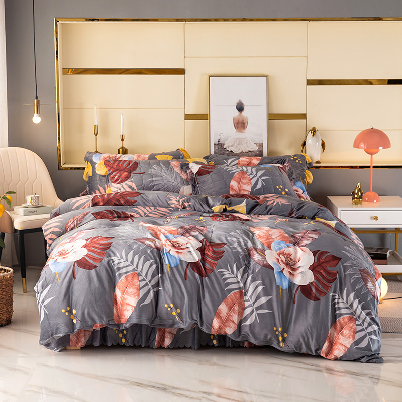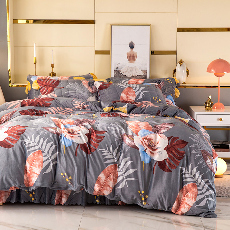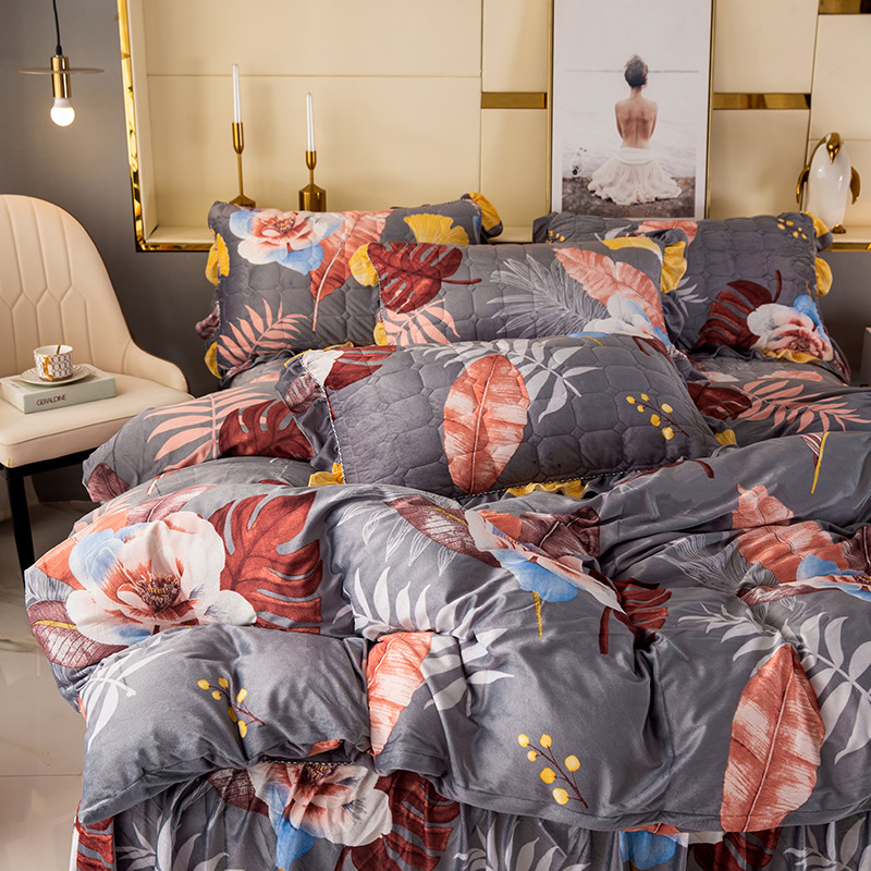纽缦 2020新款绒夹棉床裙四件套 花语灰