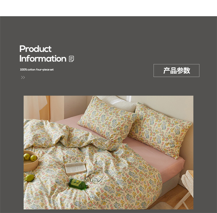 (总)窝米2022新款13370全棉四件套花卉系列,春风里,青柚,秋收,水波纹米驼,水波纹炭黑,恬谧,夏花,云溪红,云溪黄