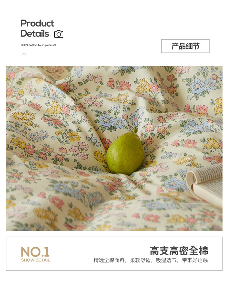窝米 2020春夏新品全棉13372四件套小波西风系列小花花,小花花