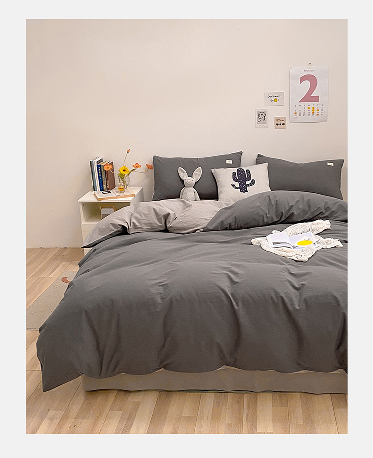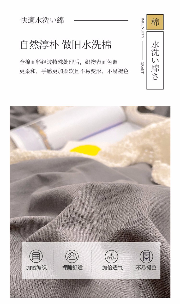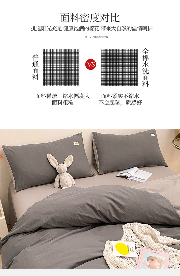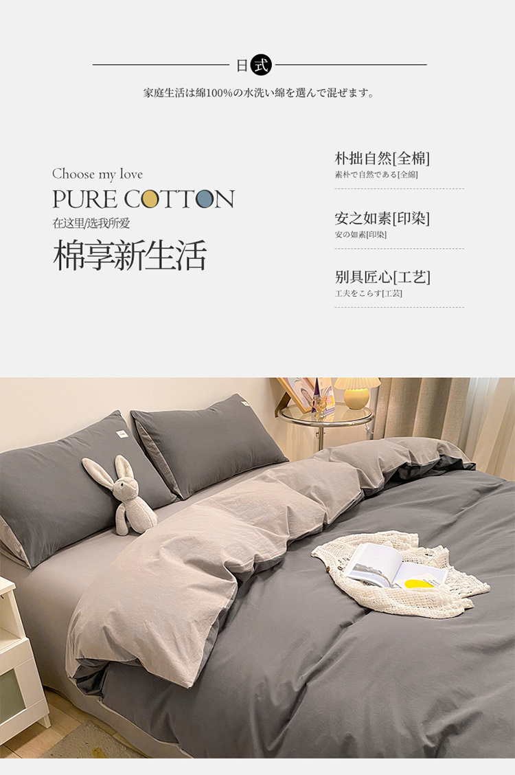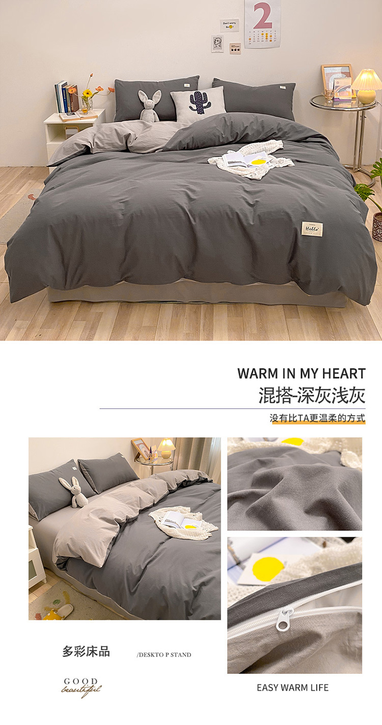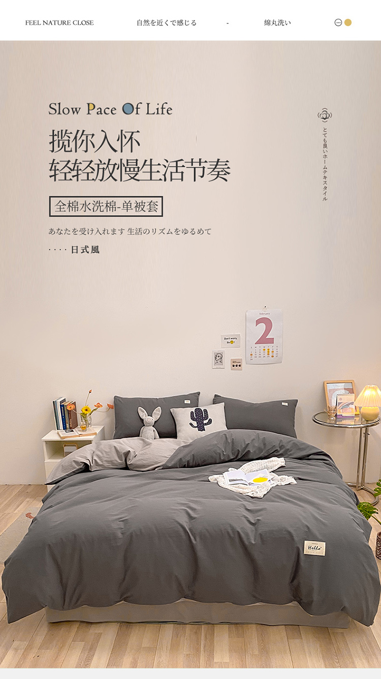 商品名称:蓝巢2021新款全棉水洗棉混搭款单被套实拍图 混搭-深灰浅灰