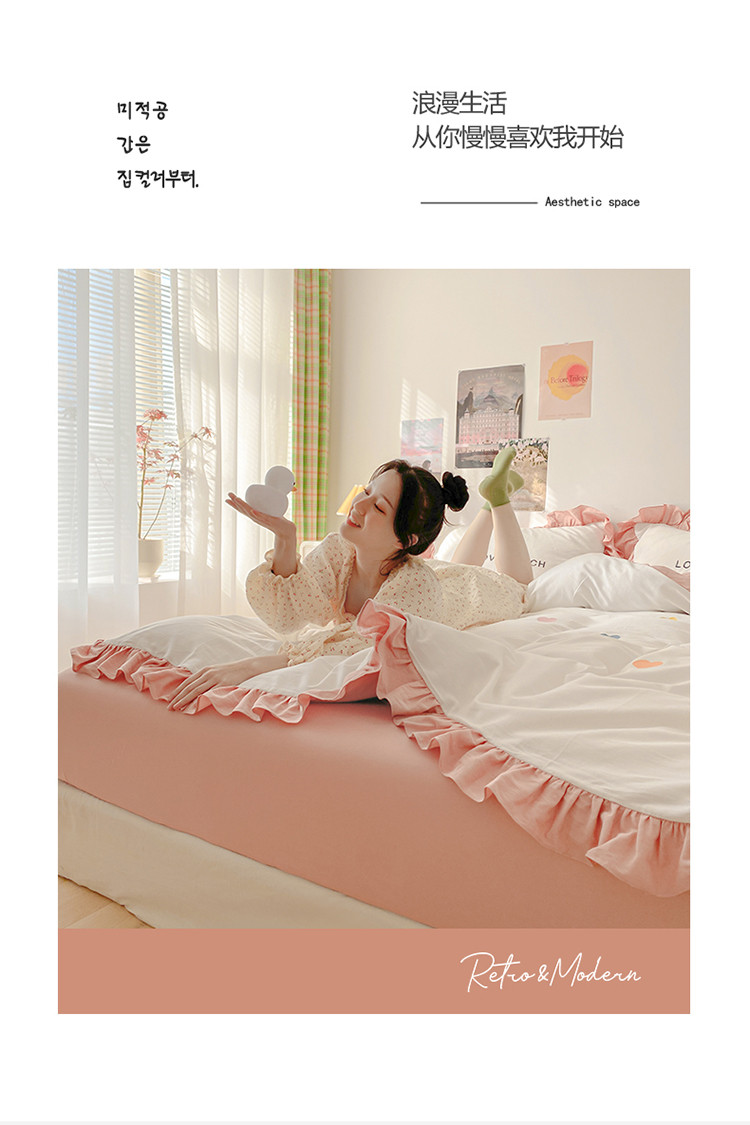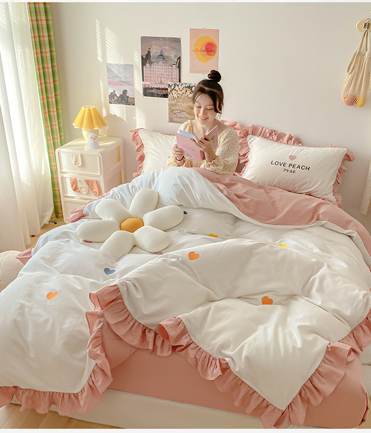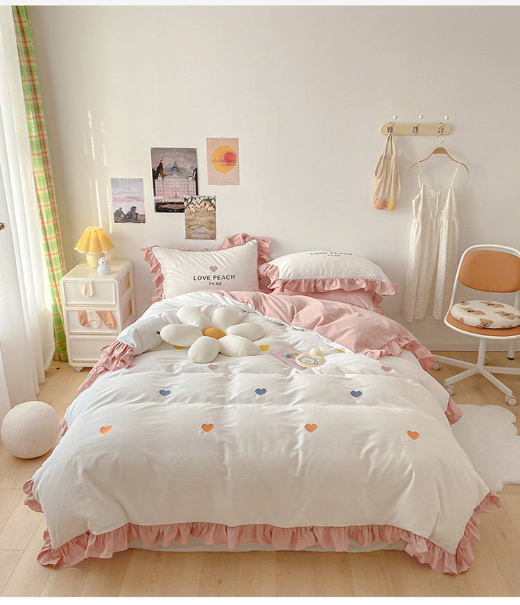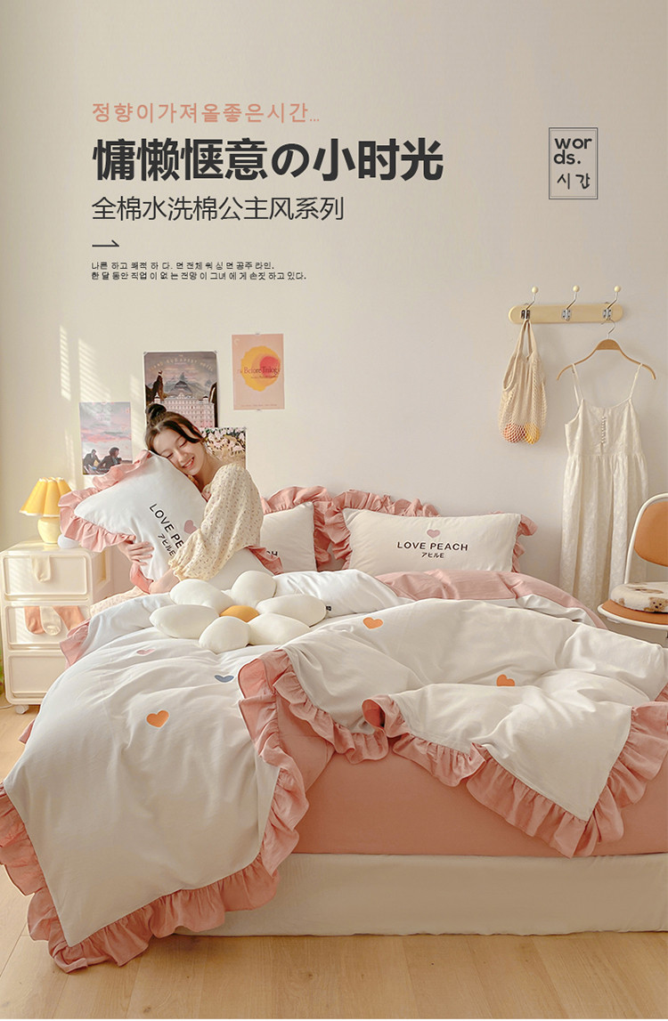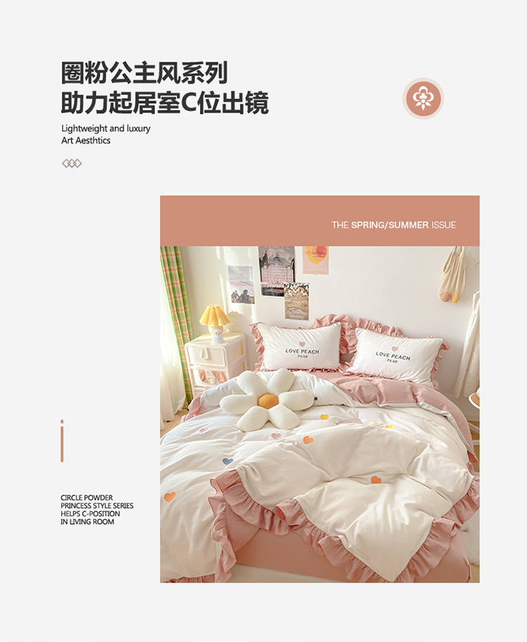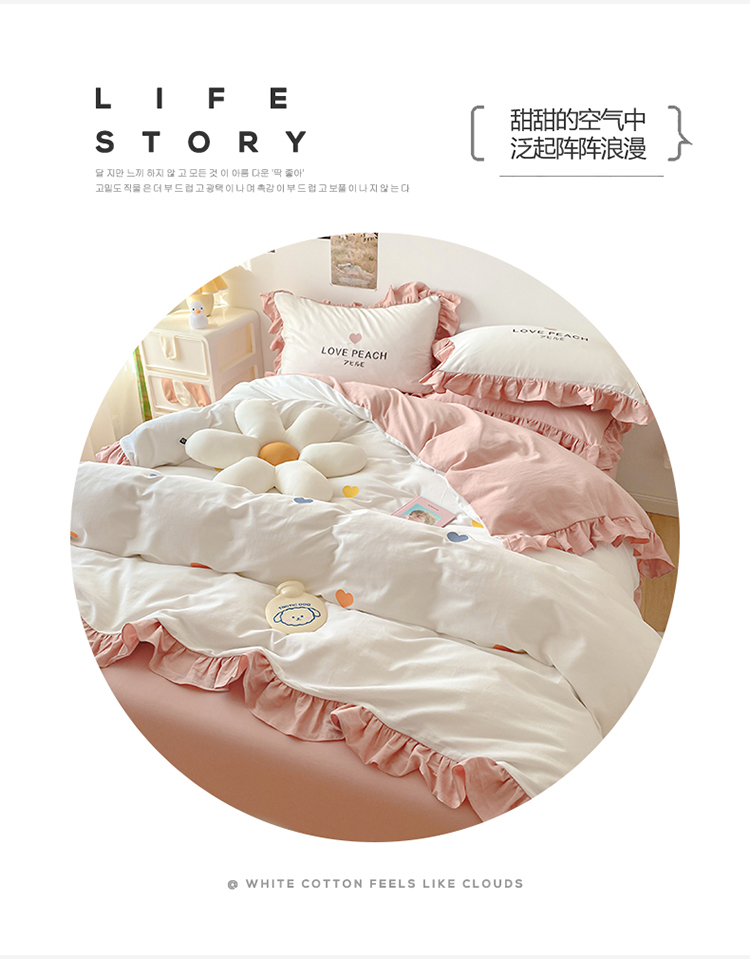 蓝巢2021新款全棉水洗棉刺绣四件套公主风系列漫天心