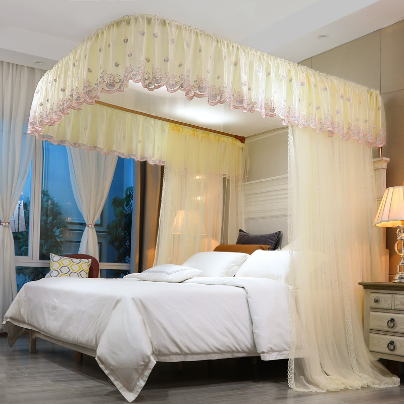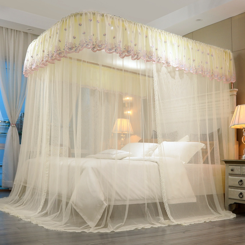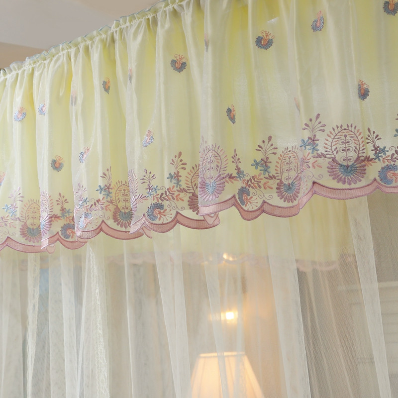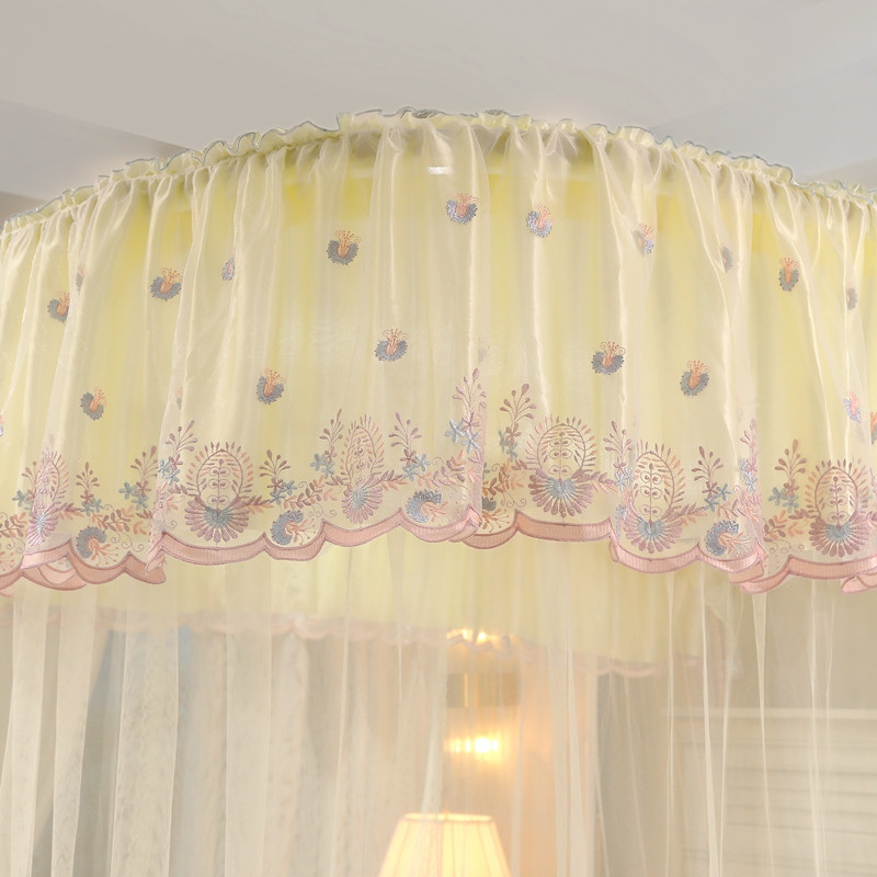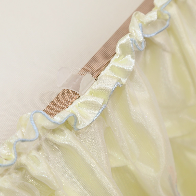 (总)2025新款双层花边全包围床笠款三开门蚊帐-幽梦星辰,奶黄,藕玉,颜淡蓝