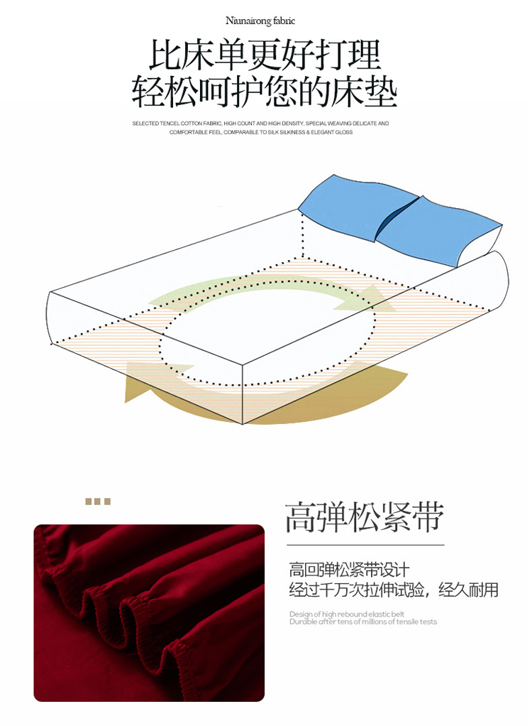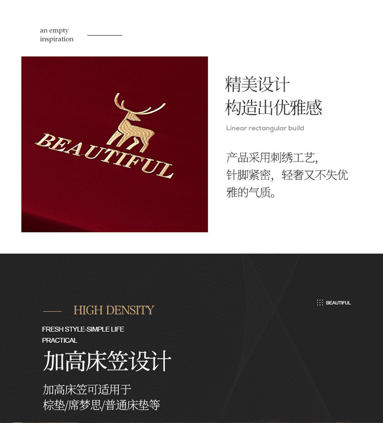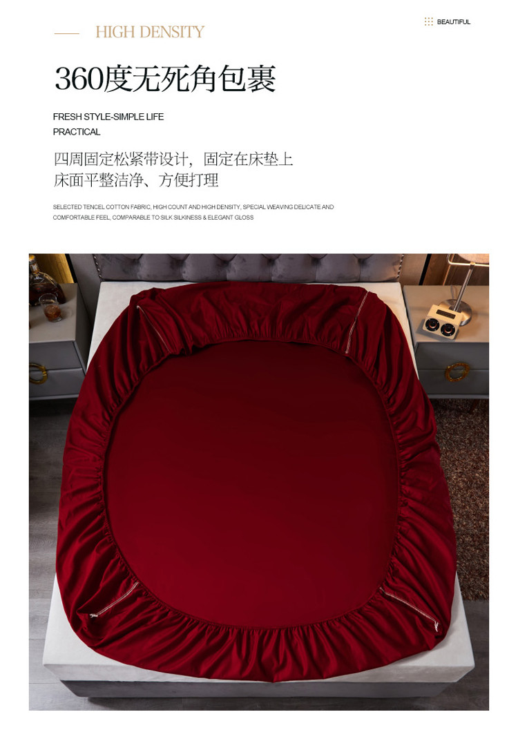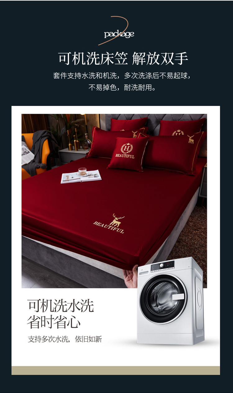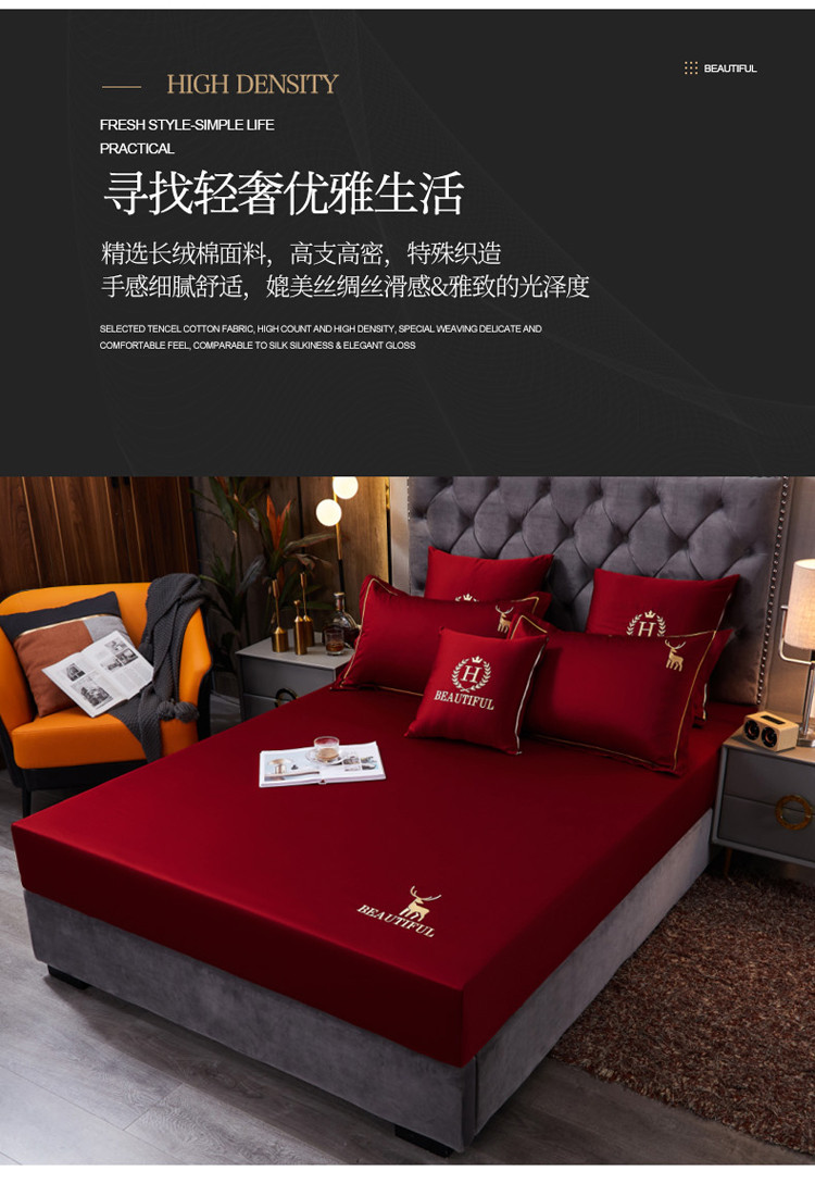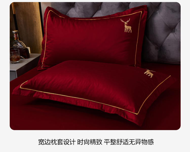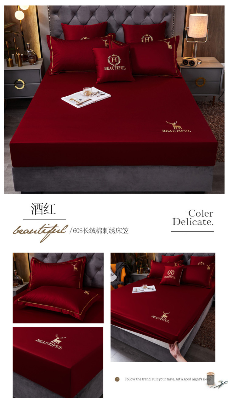 商品名称:菊上 2021新款60长绒棉-单品床笠(幸福鹿系列)酒红