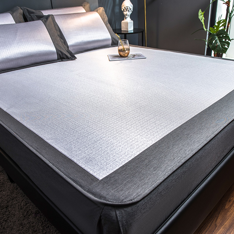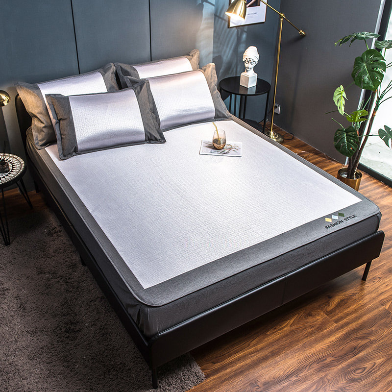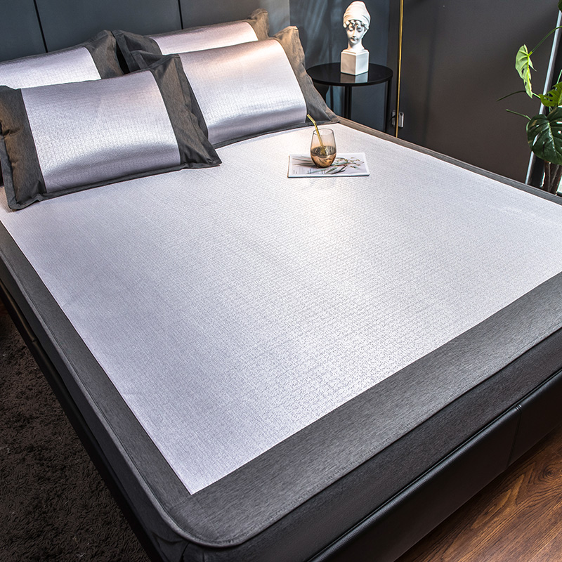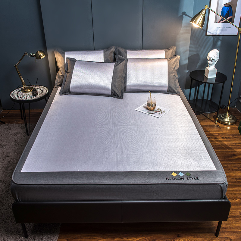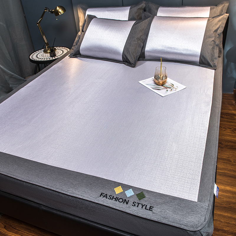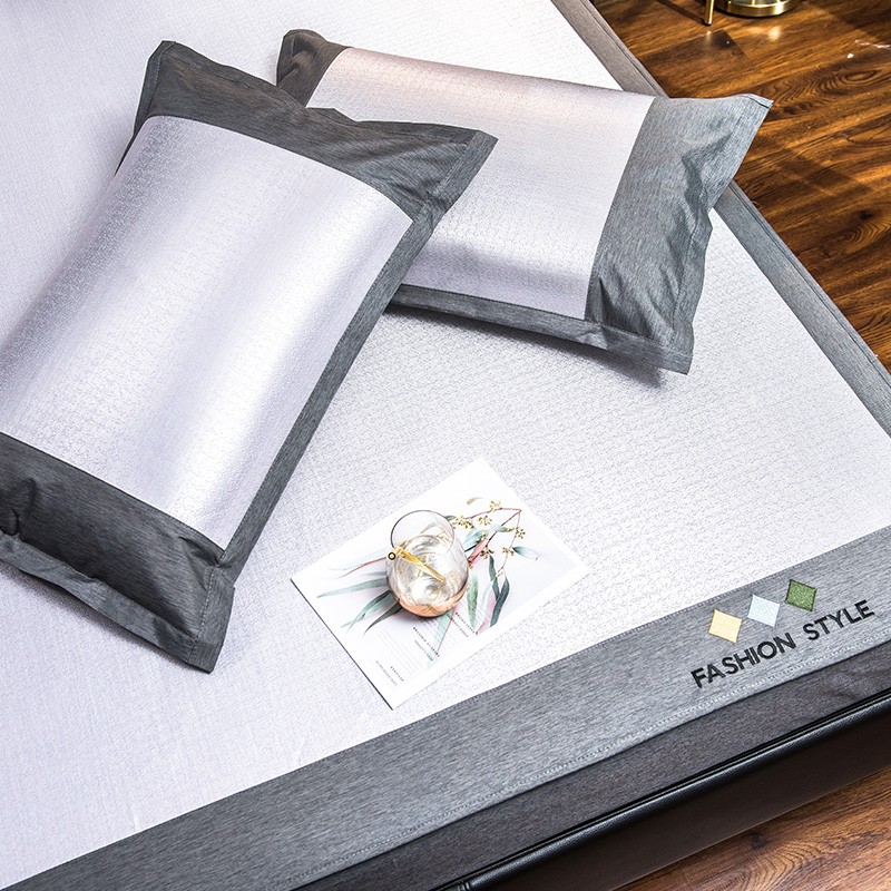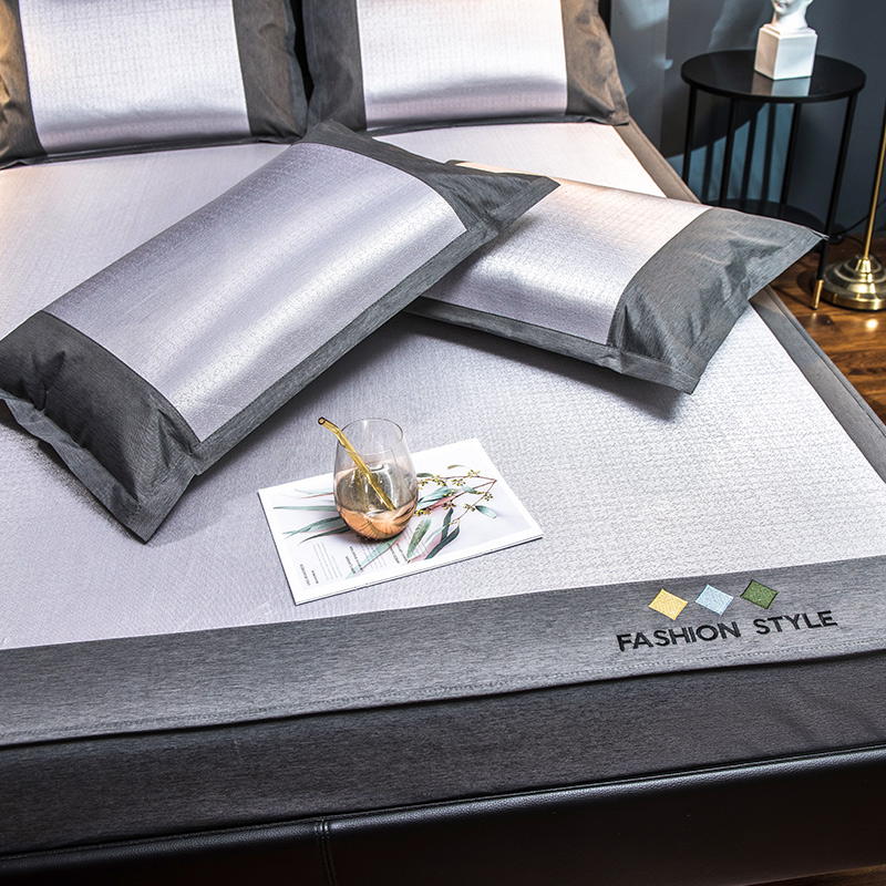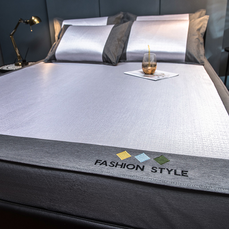 (总)全季家居 2023新款纯色凉感丝刺绣凉席,天蓝,灰色,粉色,绿色,草绿