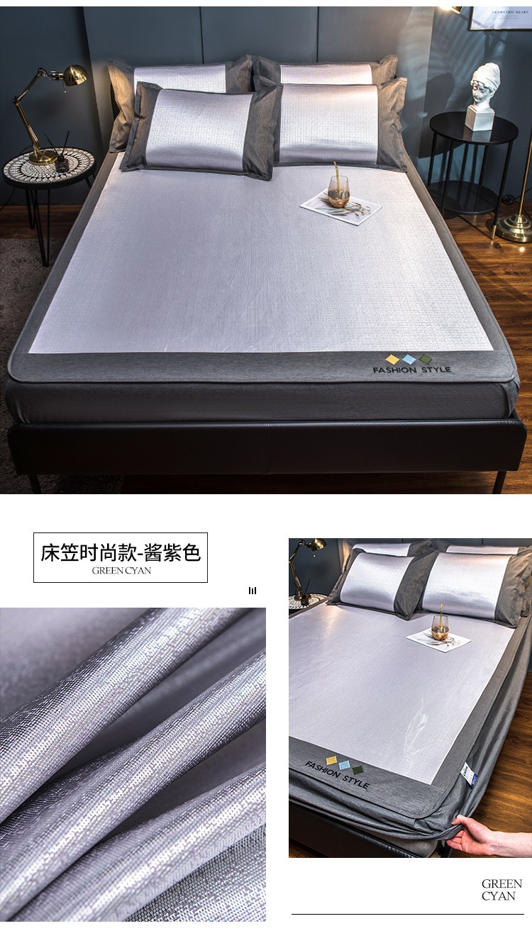 商品名称:全季家居 2021时尚款肌理纹床笠款冰丝凉席 酱紫色
