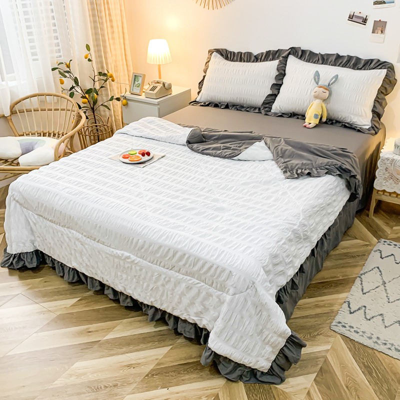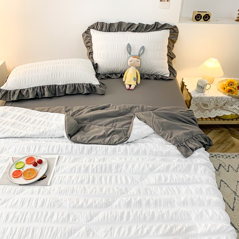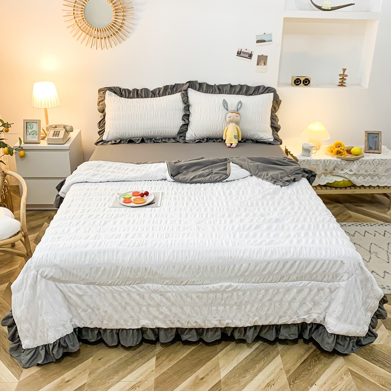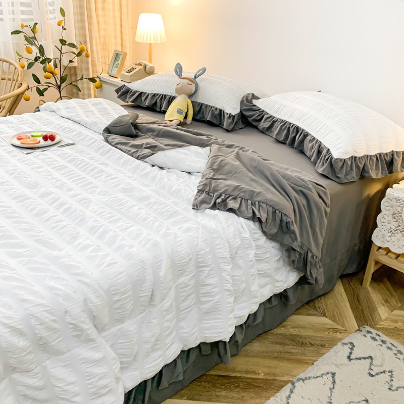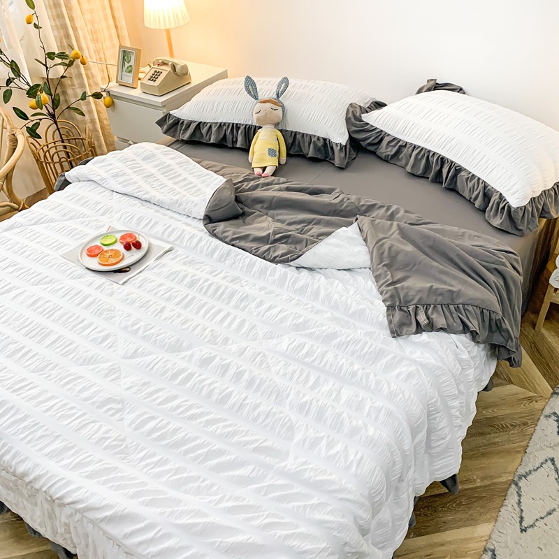 商品名称:仟网汇2021新款泡泡纱夏被四件套 泡芙小姐-梨花白灰