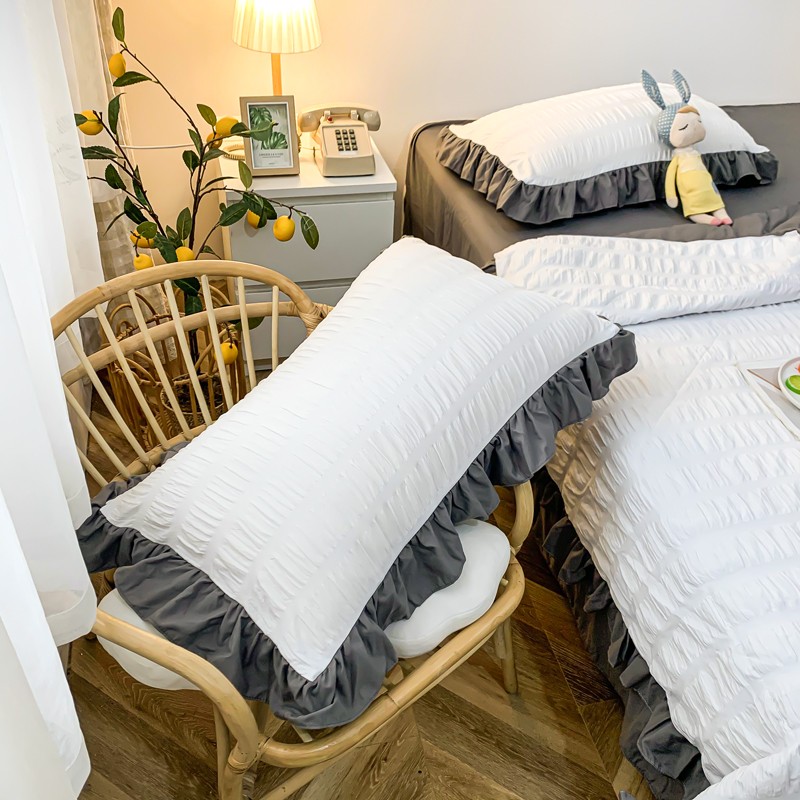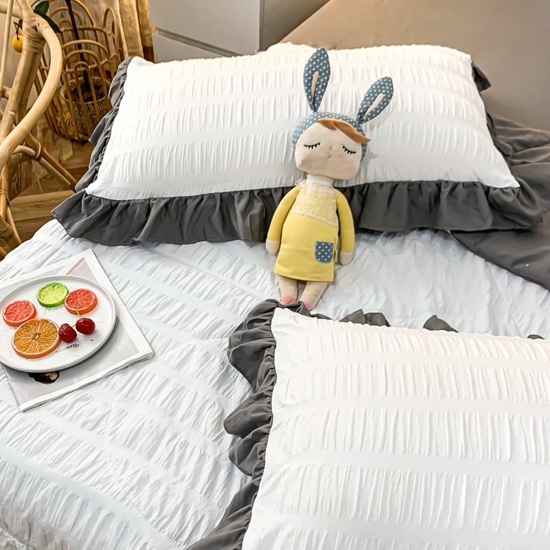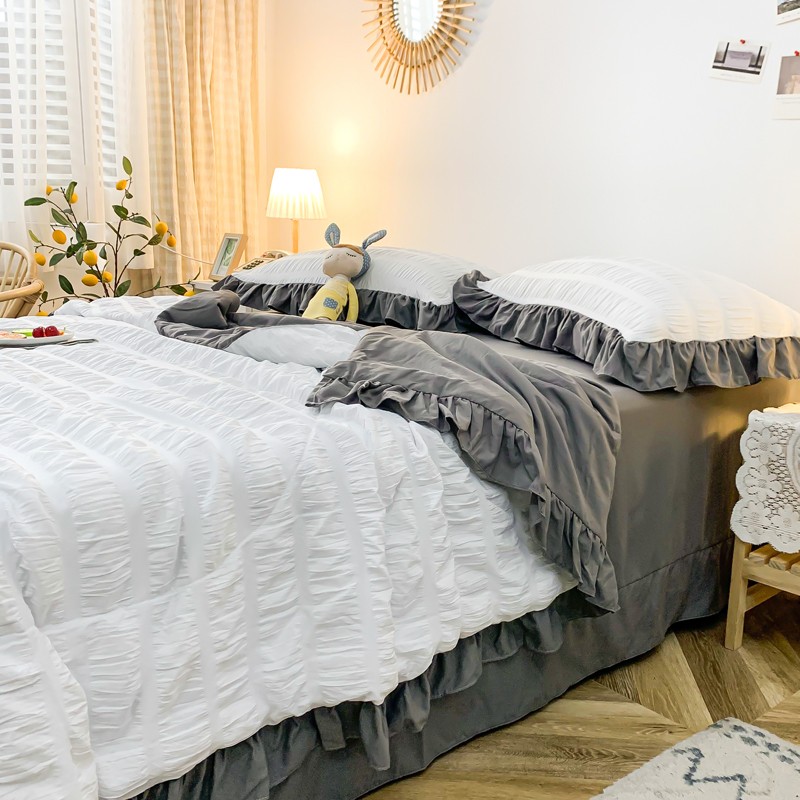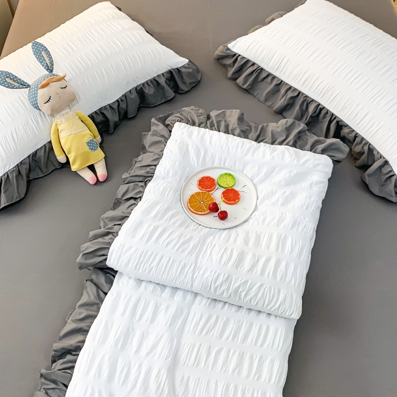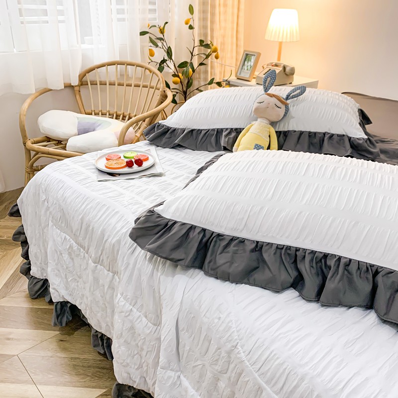 商品名称:仟网汇2021新款泡泡纱夏被四件套 泡芙小姐-梨花白灰