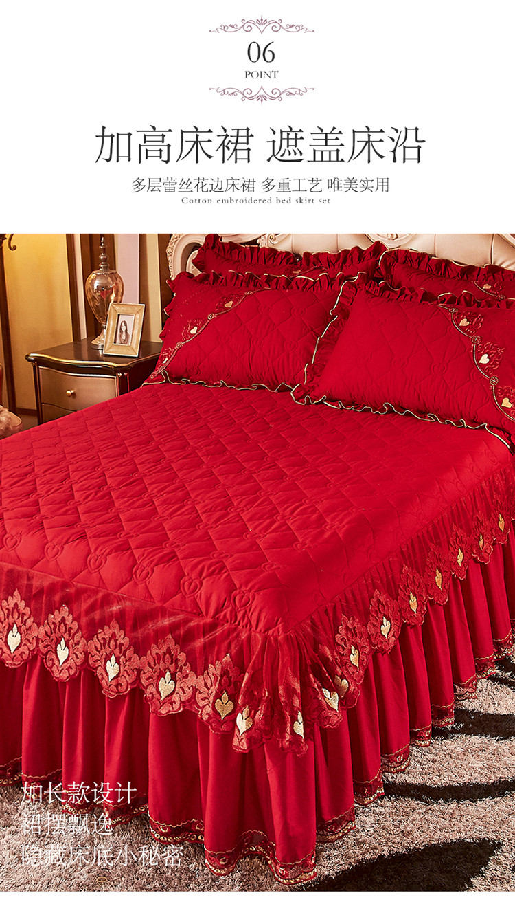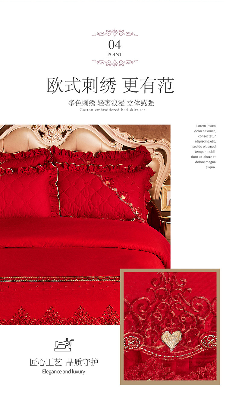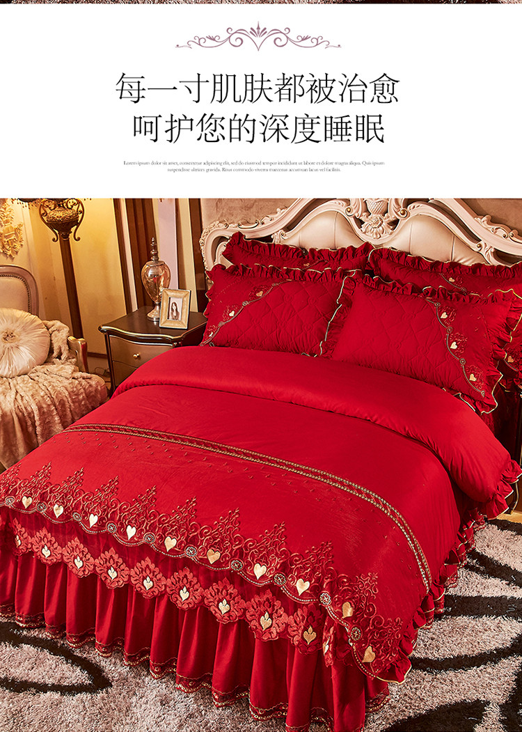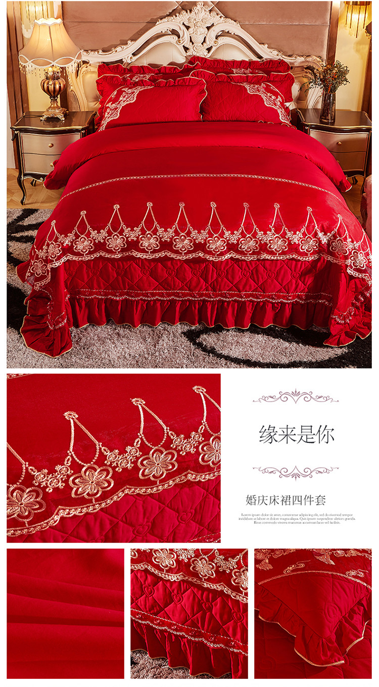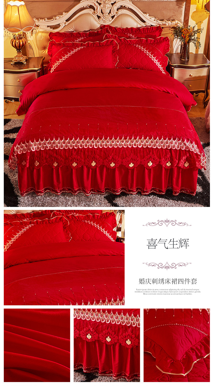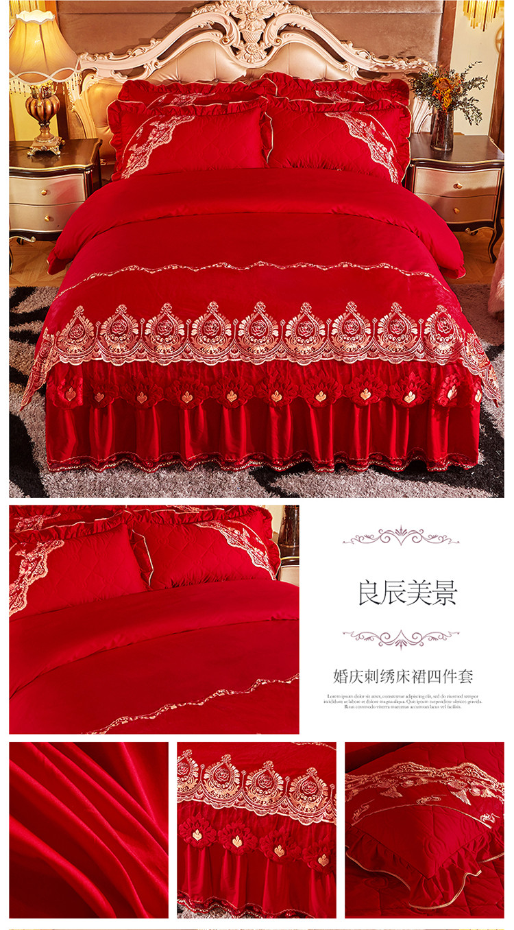 (总)宜凡家纺 2025新款婴儿绒压花全夹棉床裙四件套,韵雅-中国红,韵雅-黑天鹅