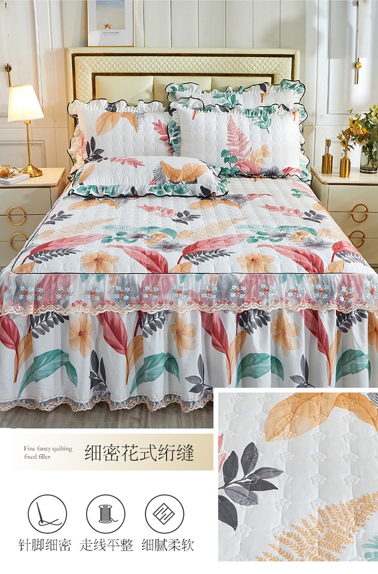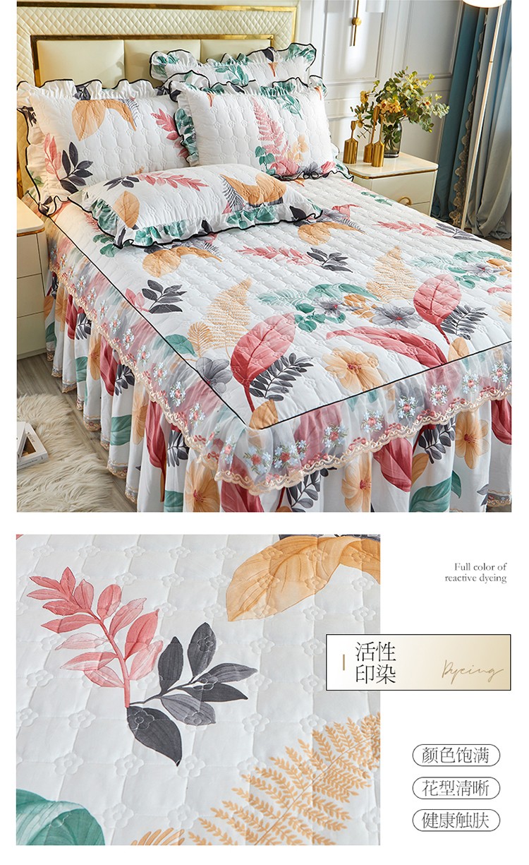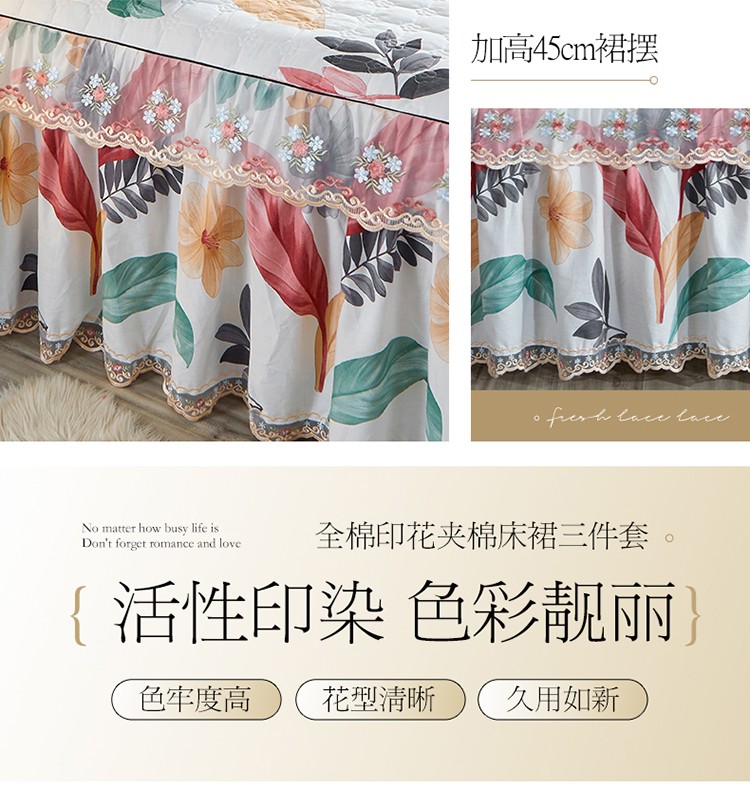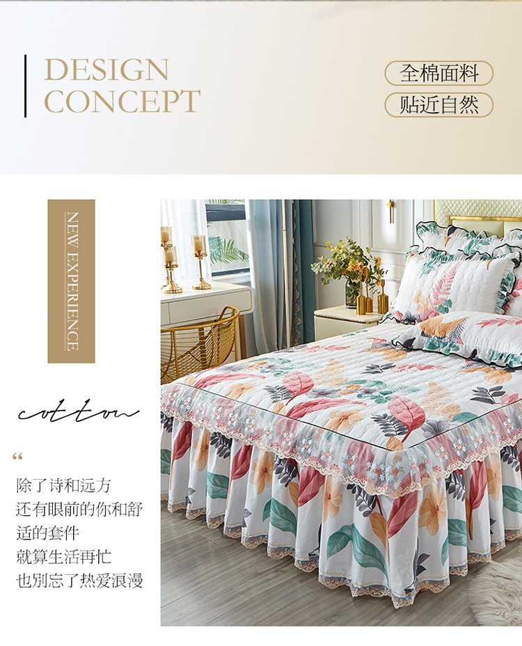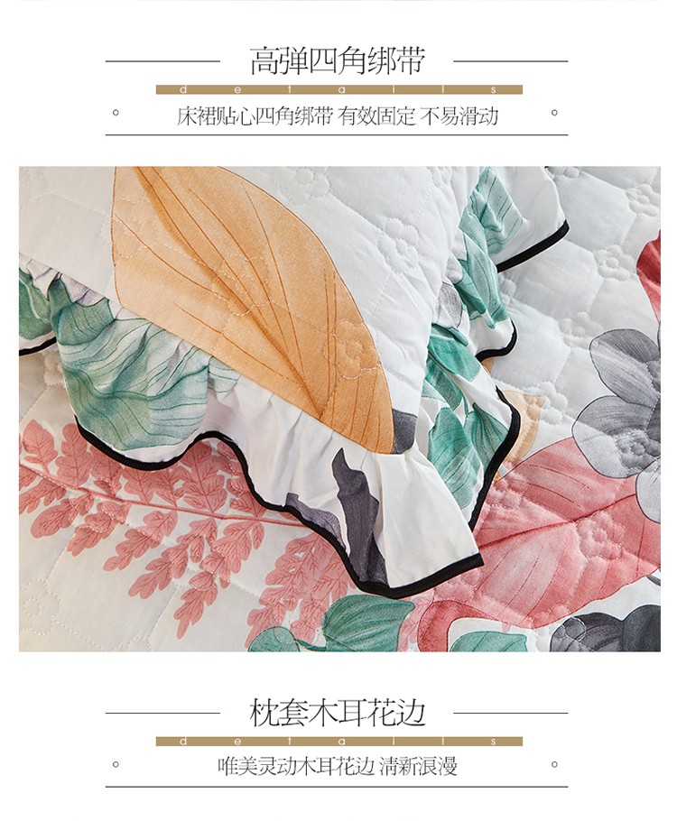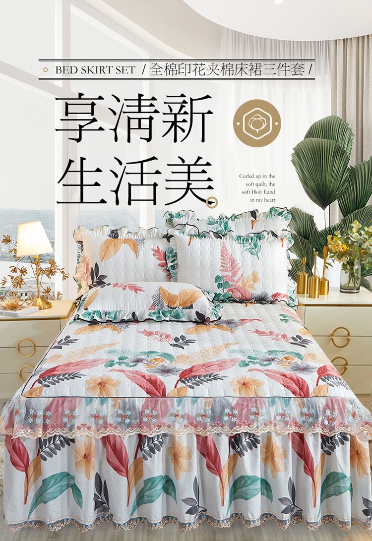 宜凡 2021新款全棉印花夹棉床裙-床裙三件套 羽梦