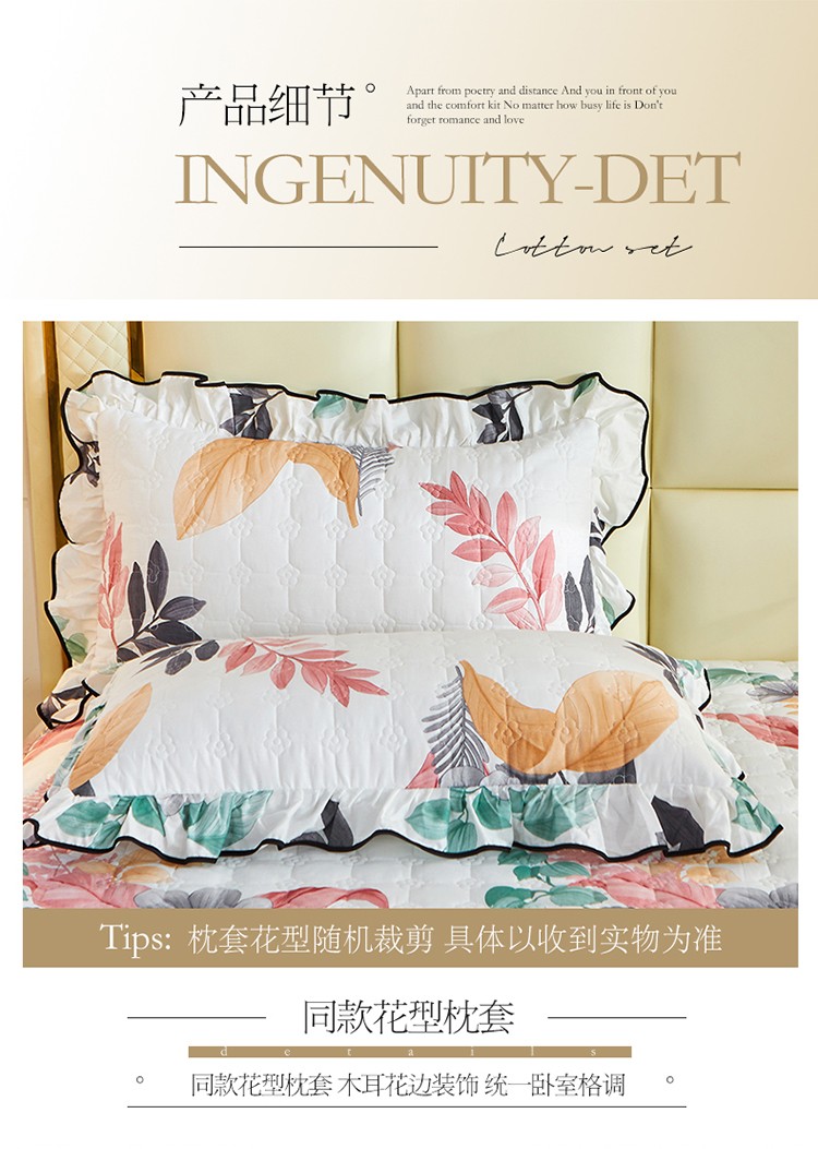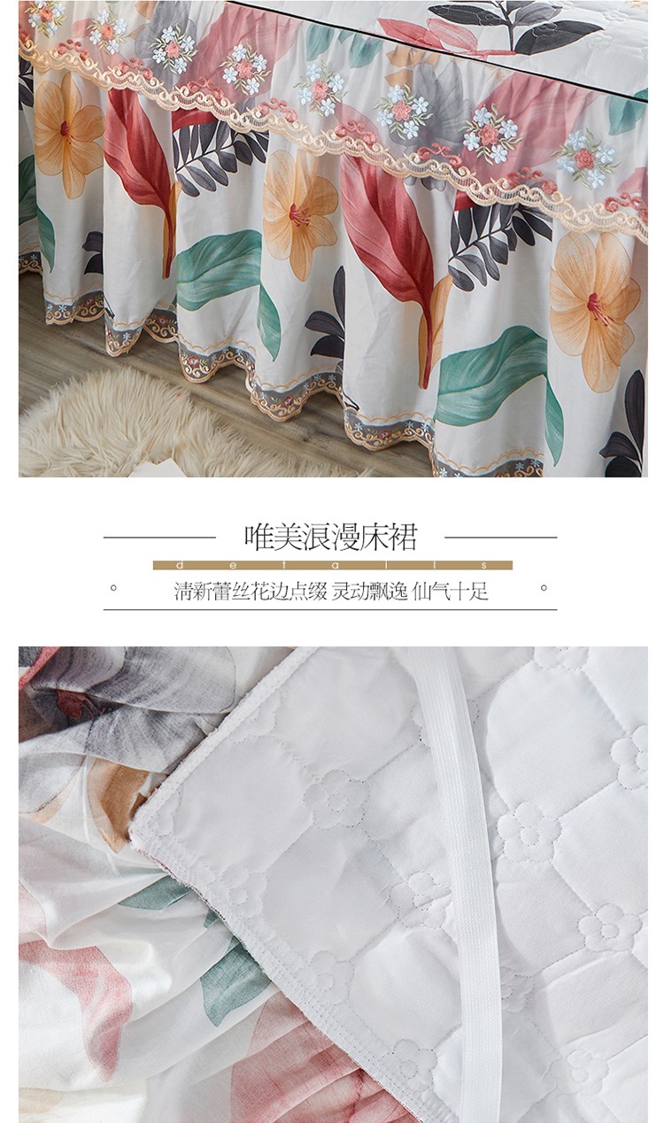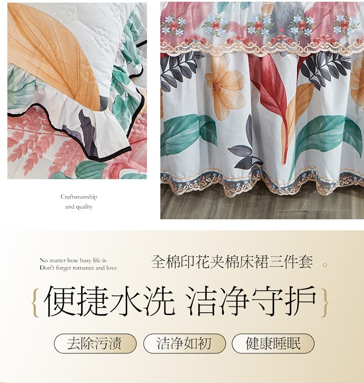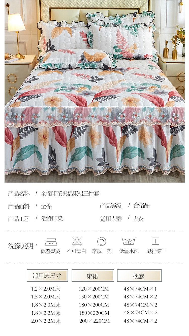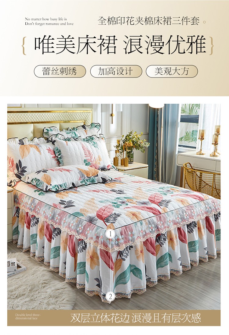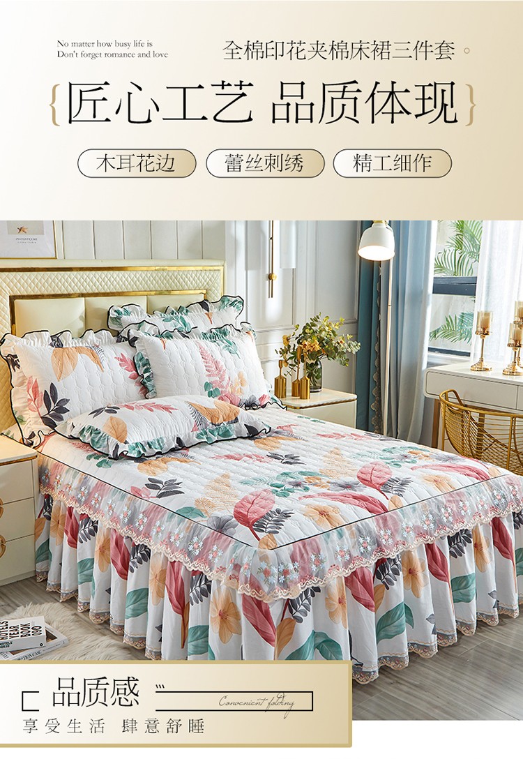 商品名称:宜凡 2021新款全棉印花夹棉床裙-床裙三件套 羽梦