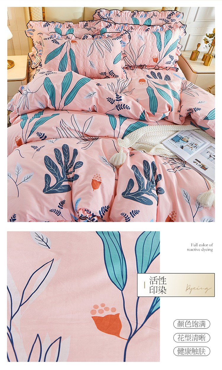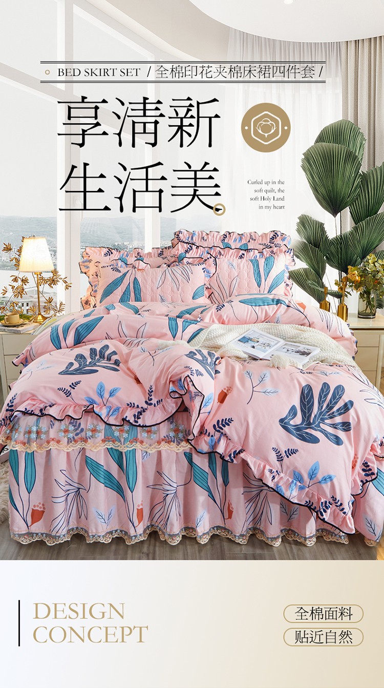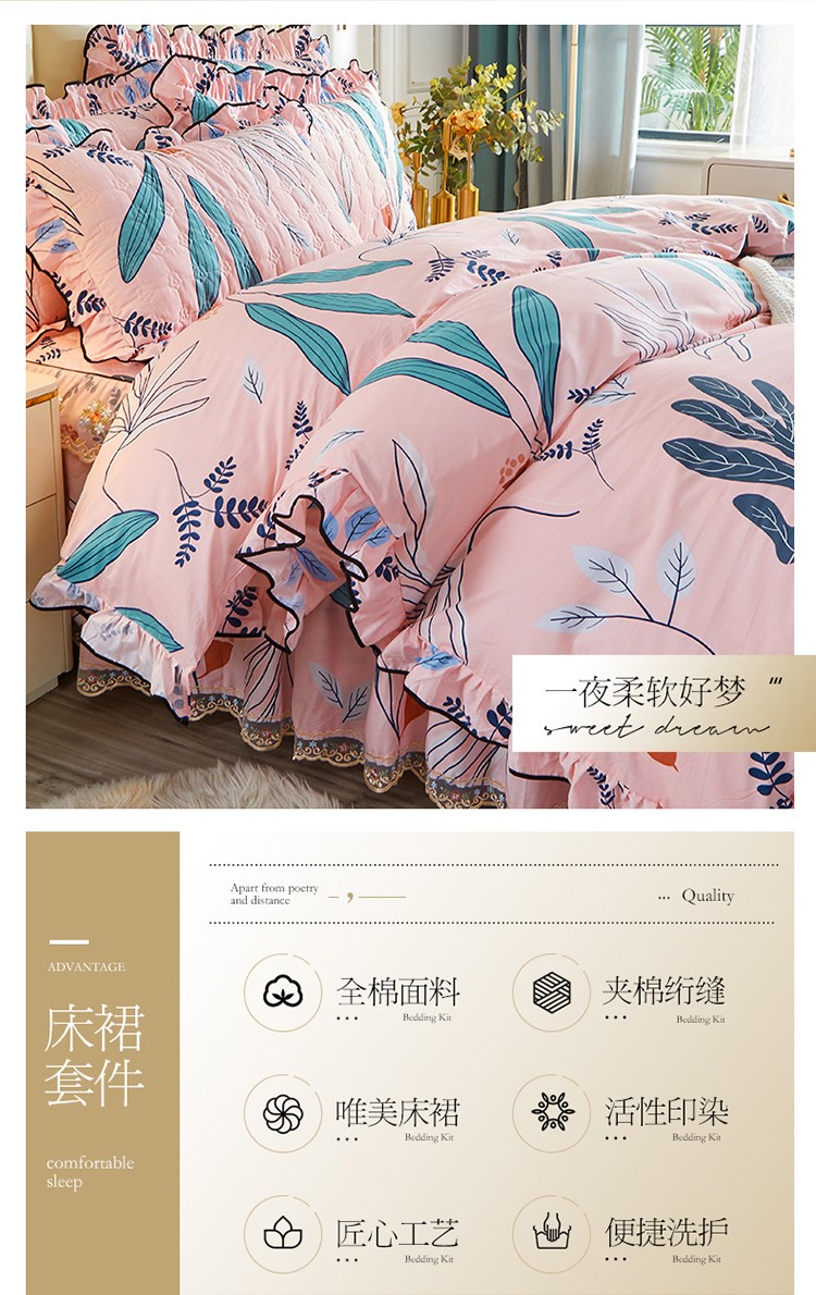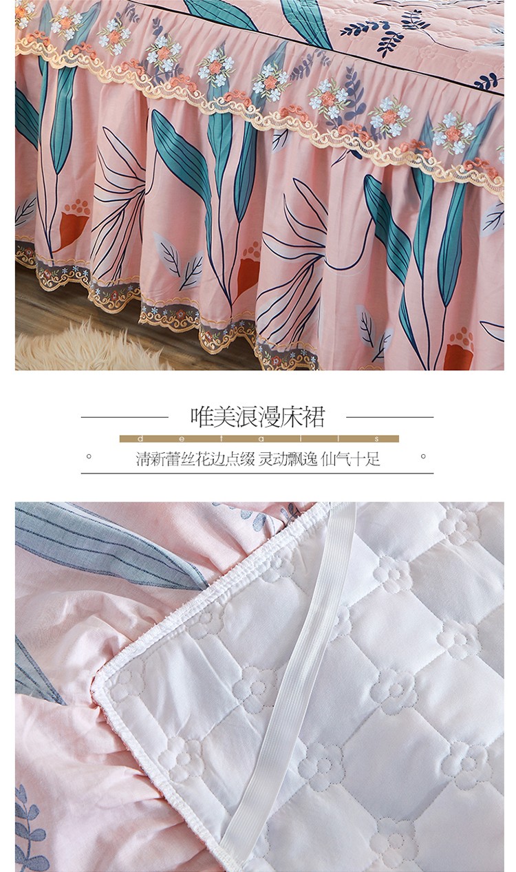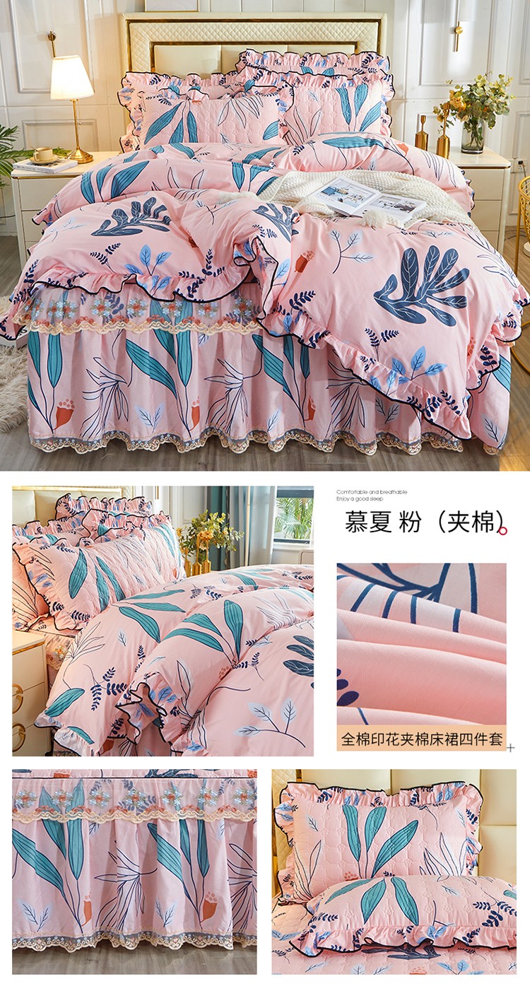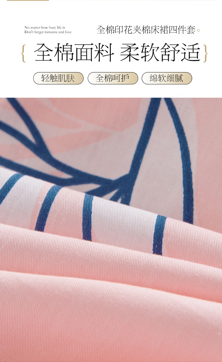 当前位置: 91家纺网 > 商品网购 > 床品套件 > 四件套 > 全棉普通四件套 > 宜凡 2021新款全棉印花夹棉床裙-床裙四件套 慕夏 粉
