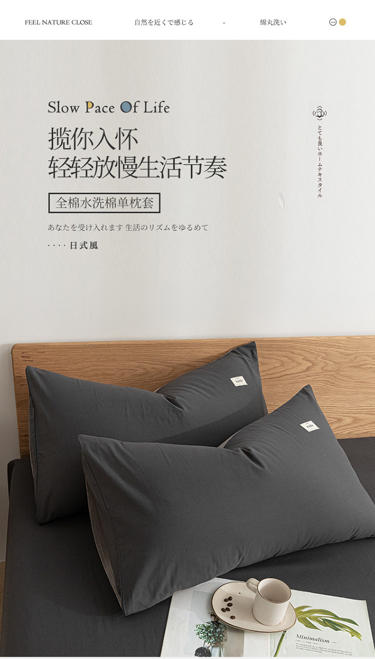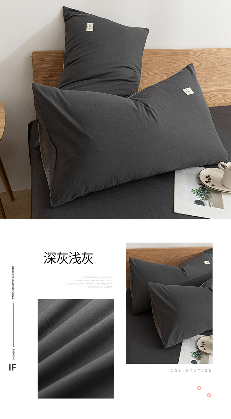 • 91家纺网 家纺一手货源 找家纺 蓝巢家纺 2021新款全棉水洗棉枕套一对 深灰浅灰