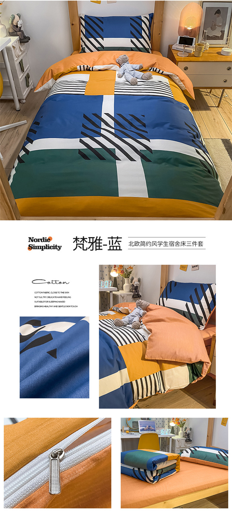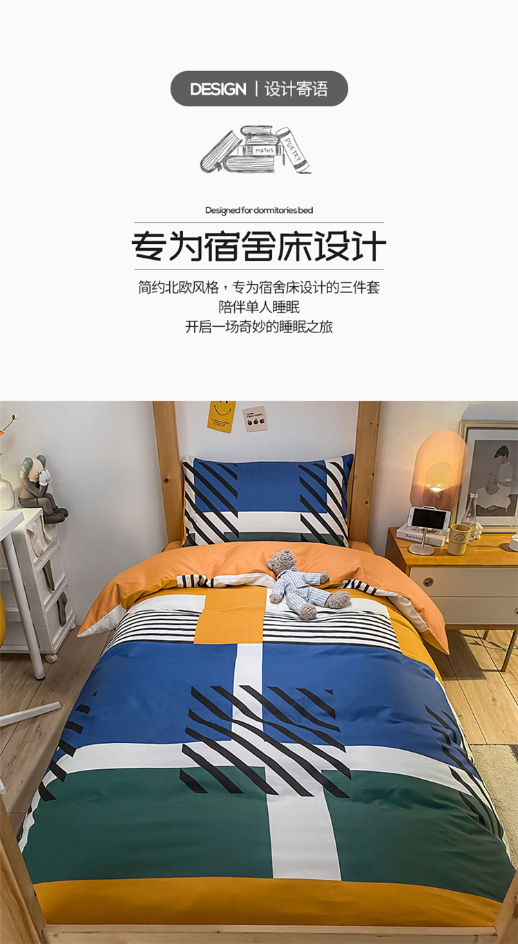 当前位置: 91家纺网 > 商品网购 > 床品套件 > 三件套 > 金爱家2021新款纯棉时尚简约北欧学生床三件套 梵雅-蓝
