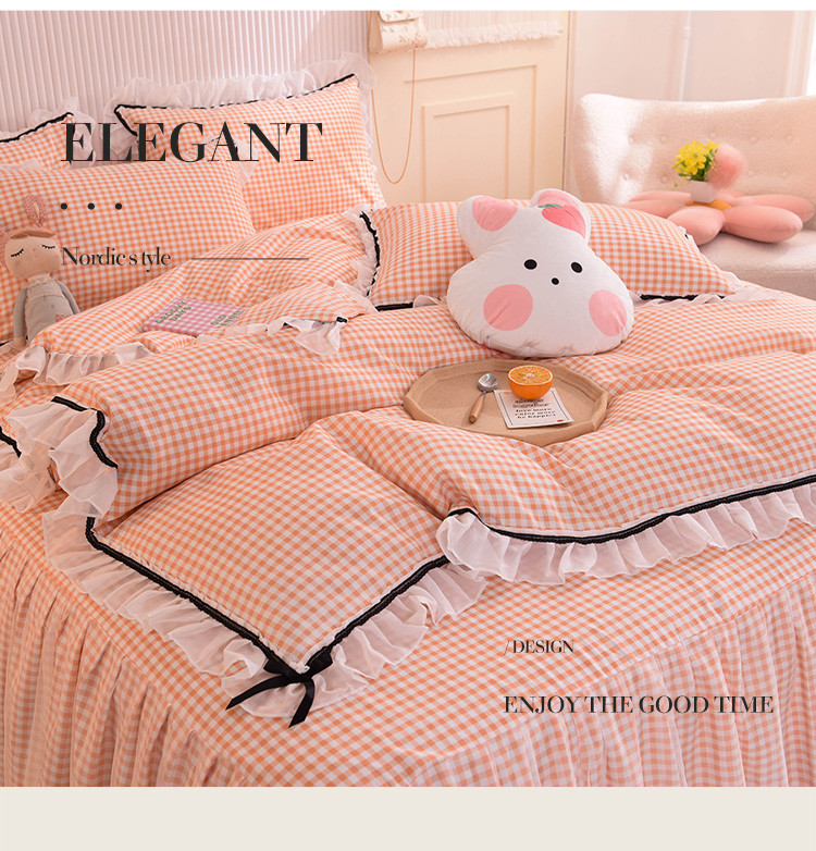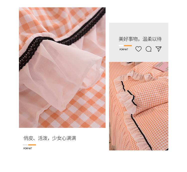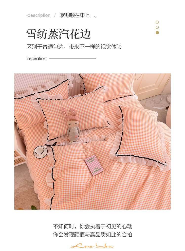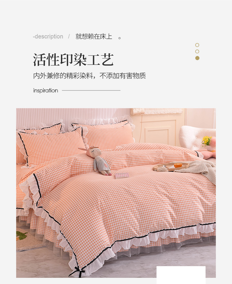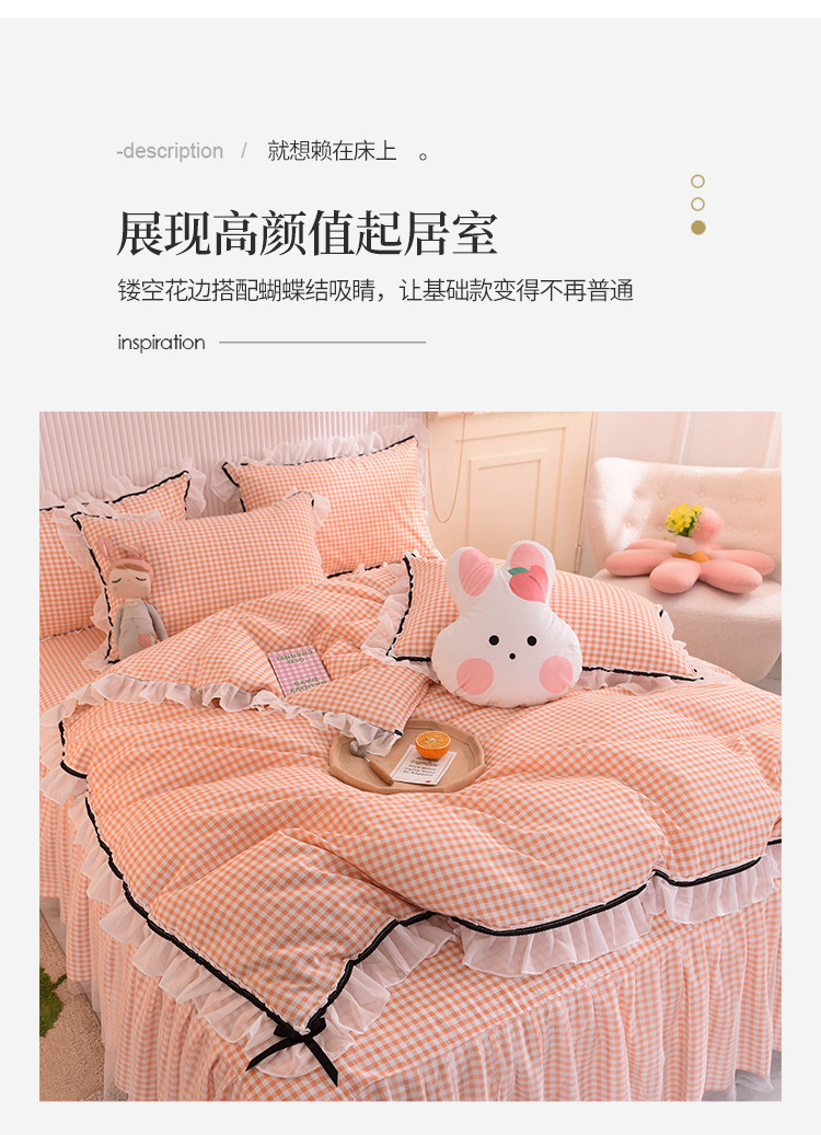 当前位置: 91家纺网 > 商品网购 > 床品套件 > 四件套 > 普通磨毛四件套 > 芭比蔓 2024新款蕾丝公主风加厚款四件套 清新小格玉
