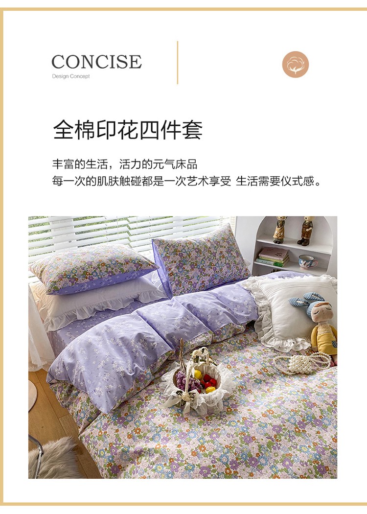 商品名称:珺柔2021新款13070全棉印花四件套系列六 紫色花海