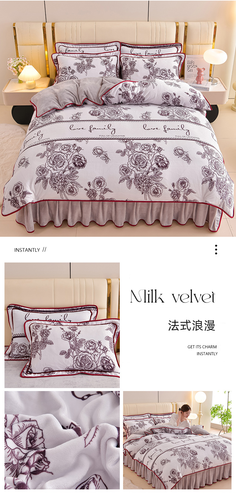 (总)梦之星 2025新款雕花绒赫本风牛奶绒花边四件套 加厚8.5斤,花边蝴蝶-粉,花边蝴蝶-灰,花边蝴蝶-棕,花边玫瑰-粉,花边玫瑰-灰,花边玫瑰-绿