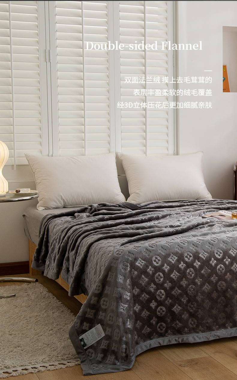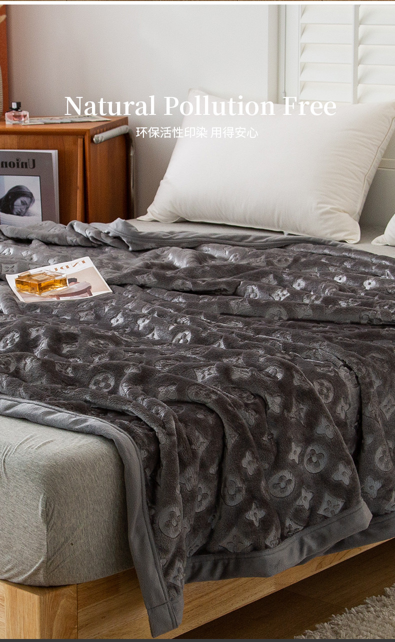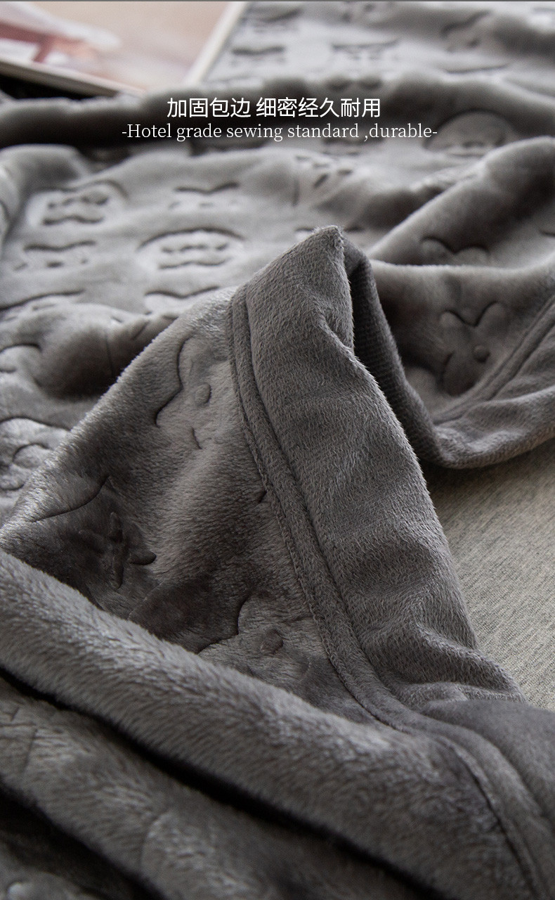 来菲毛毯 25新款400克3D压花立体毛毯3D豆沙加厚压花绒毯外贸超厚灰