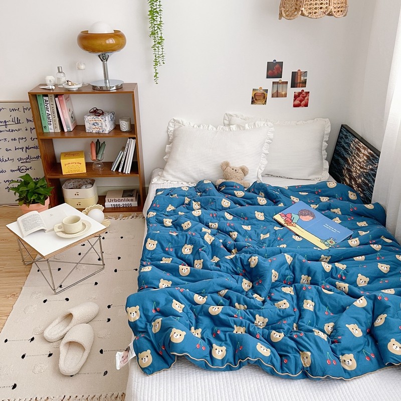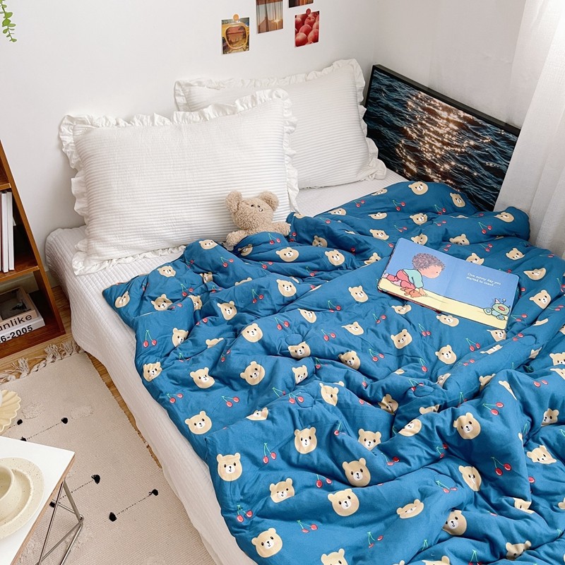 星期八 2021新款大豆针织春秋被冬被樱桃熊深蓝