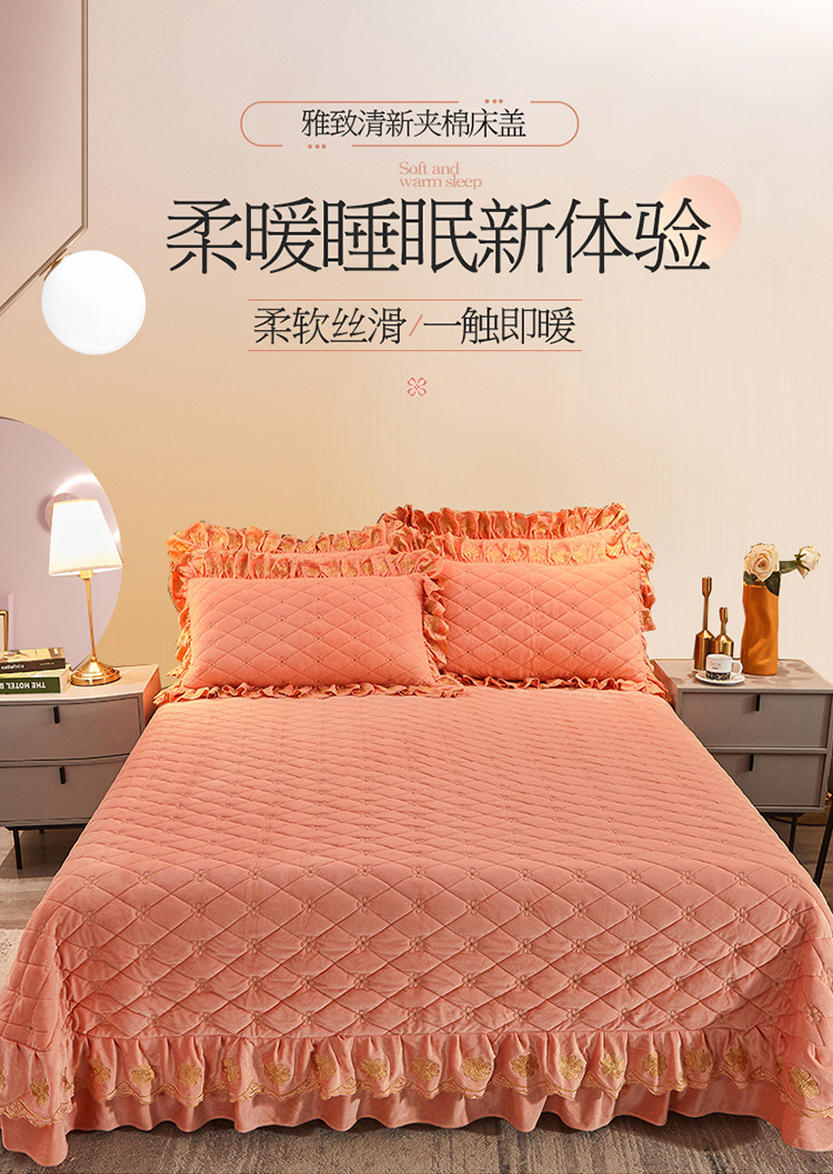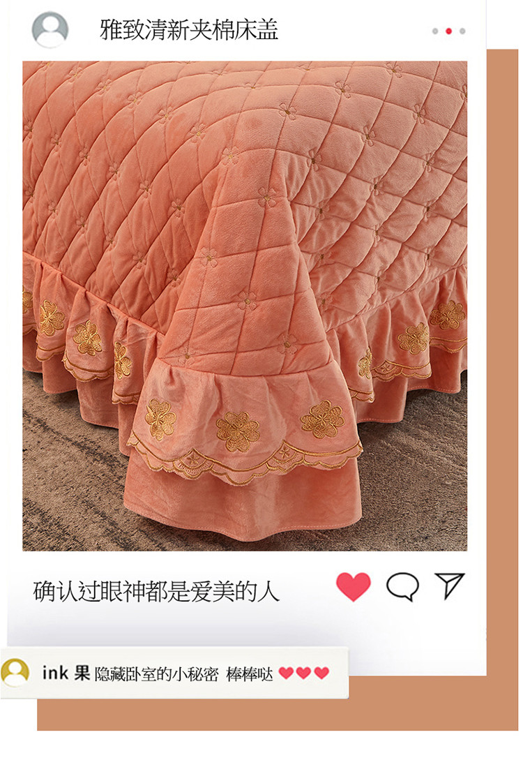 (总)恒爱 2022秋冬水晶绒翩翩花舞夹棉单床裙,大红色,豆沙红,橄榄绿,公主粉,桔色,咖啡色,孔雀绿,拉菲红,罗兰紫,玫红色,美人玉,米白色,米驼色,抹茶绿,浅灰色,紫色