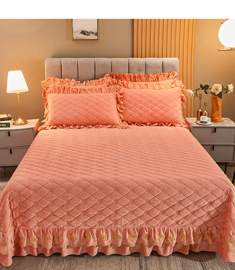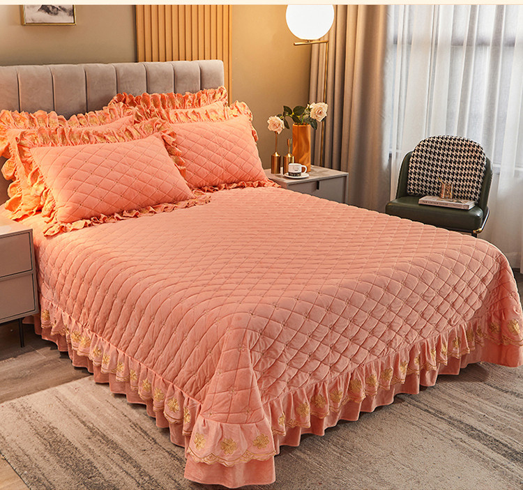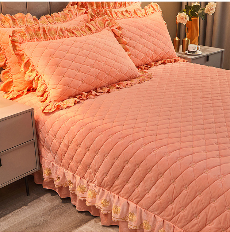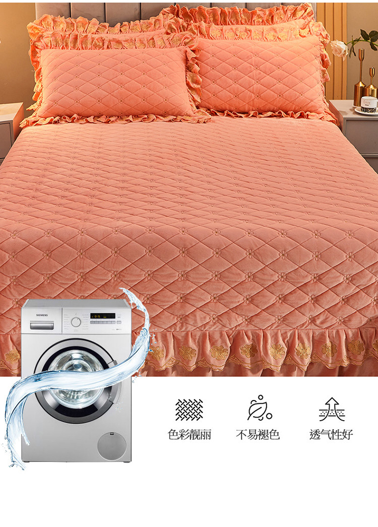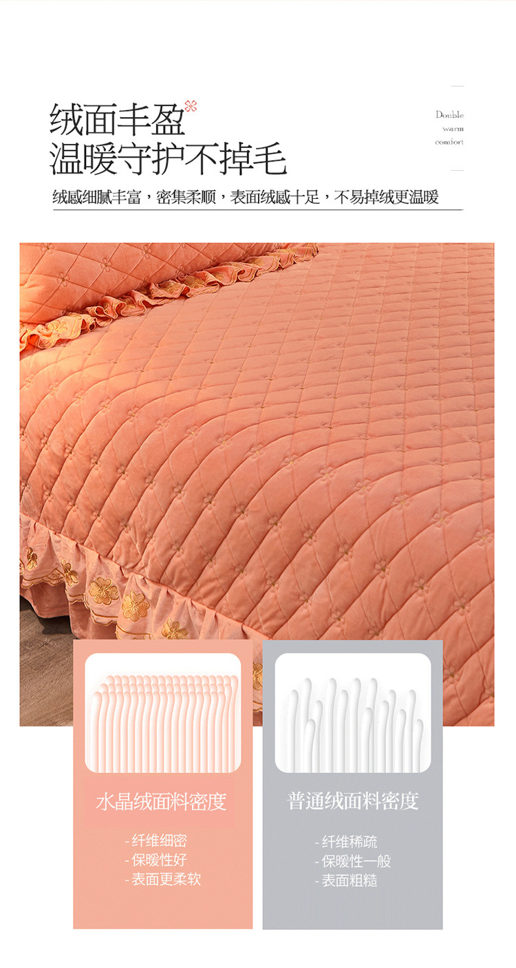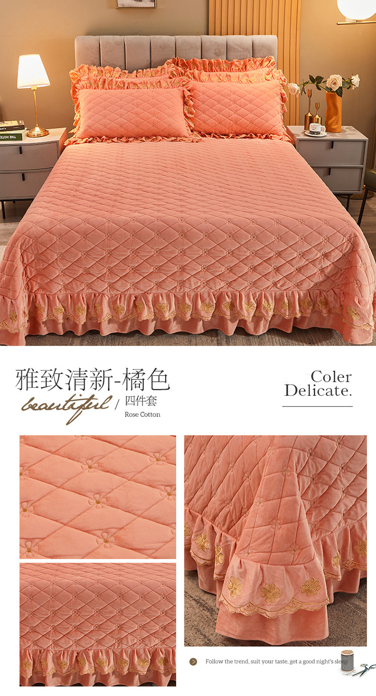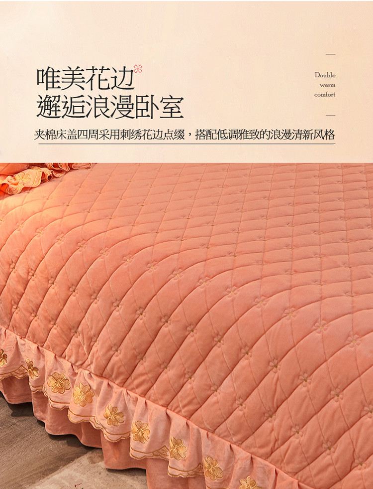 (总)恒爱 2022秋冬水晶绒翩翩花舞夹棉床裙四件套,大红色,豆沙红,橄榄绿,公主粉,桔色,咖啡色,孔雀绿,拉菲红,罗兰紫,玫红色,美人玉,米白色,米驼色,抹茶绿,浅灰色,紫色