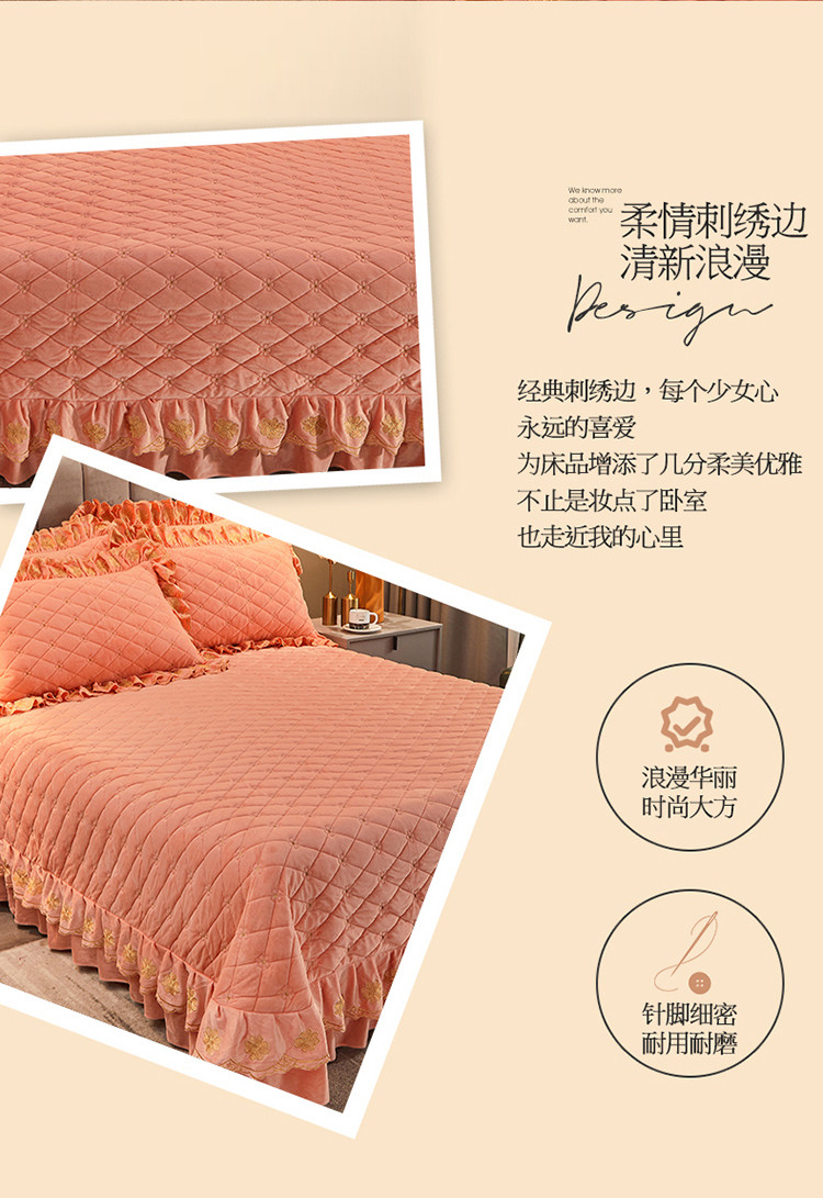 (总)恒爱 2022新款秋冬轻奢宝宝绒刺绣单床裙,爱玛橙,宾利蓝,豆沙红,橄榄绿,高级灰,酒红,梦想粉,浅灰蓝,温馨粉,喜庆红,香妃粉,香芋紫