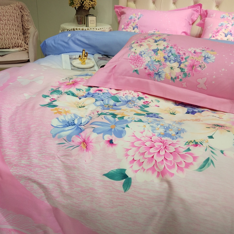 馨蕊2021秋冬新品50支贡缎全棉印花四件套 花开月圆