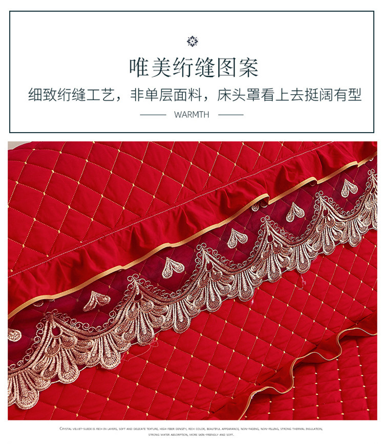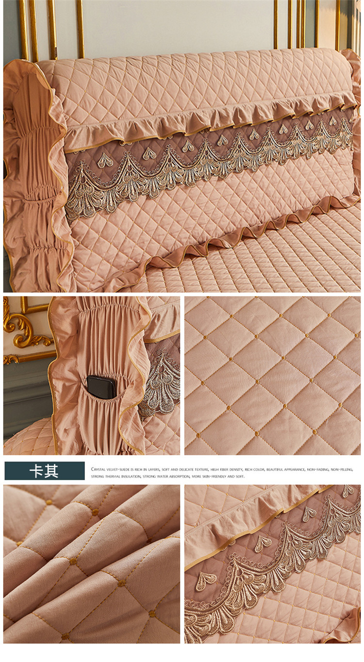 (总)屹成家纺2025新款水晶绒夹棉绗缝蕾丝床裙三件套(塞纳河畔)床裙单件起售价不低于105元,大红,豆沙,翡翠绿,粉玉,橄榄绿,蔚蓝,银灰