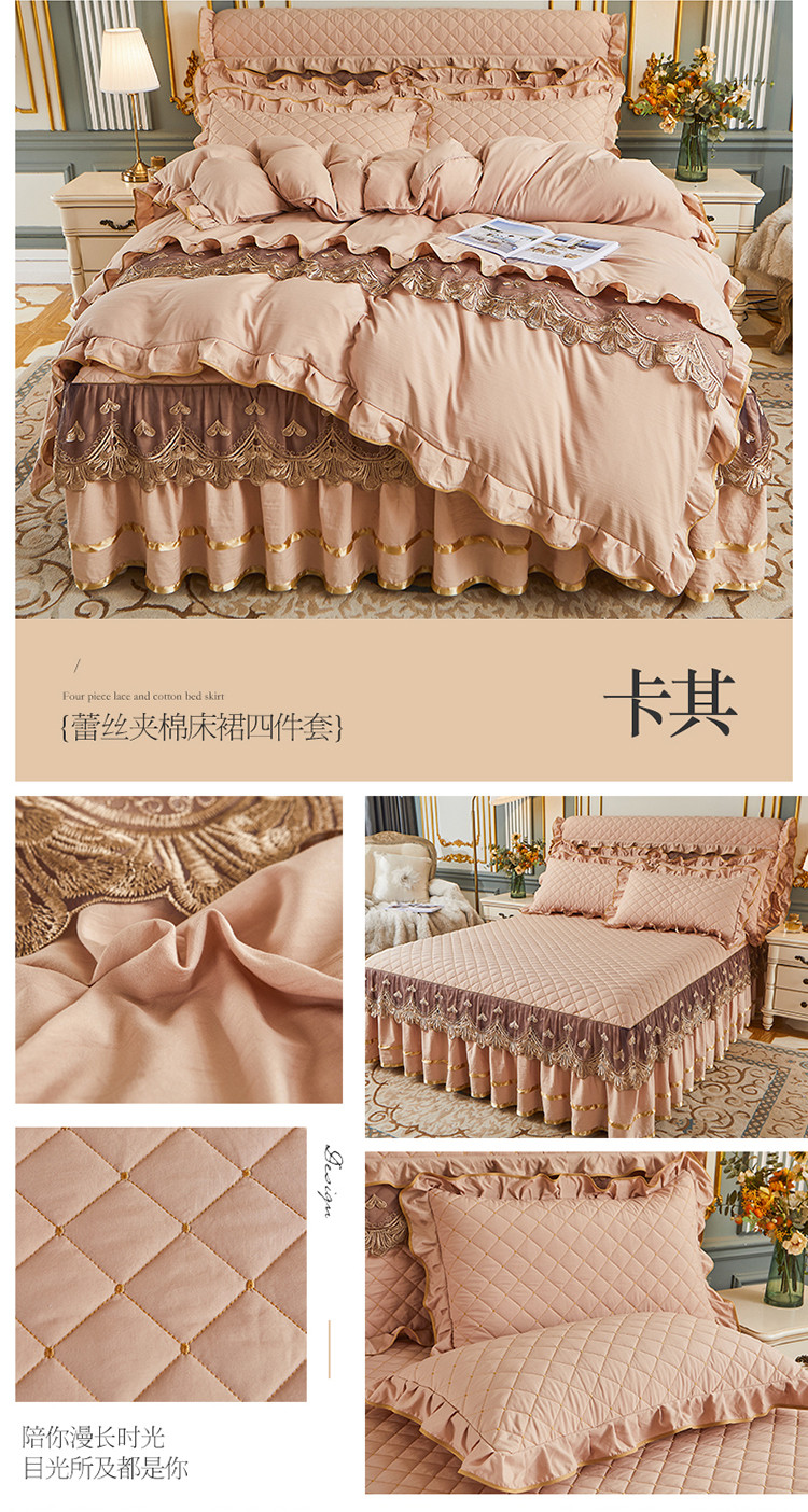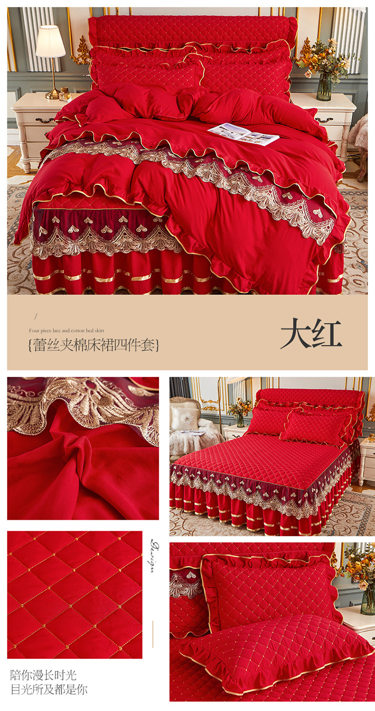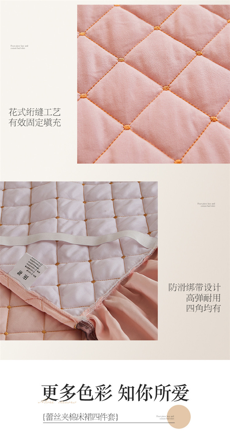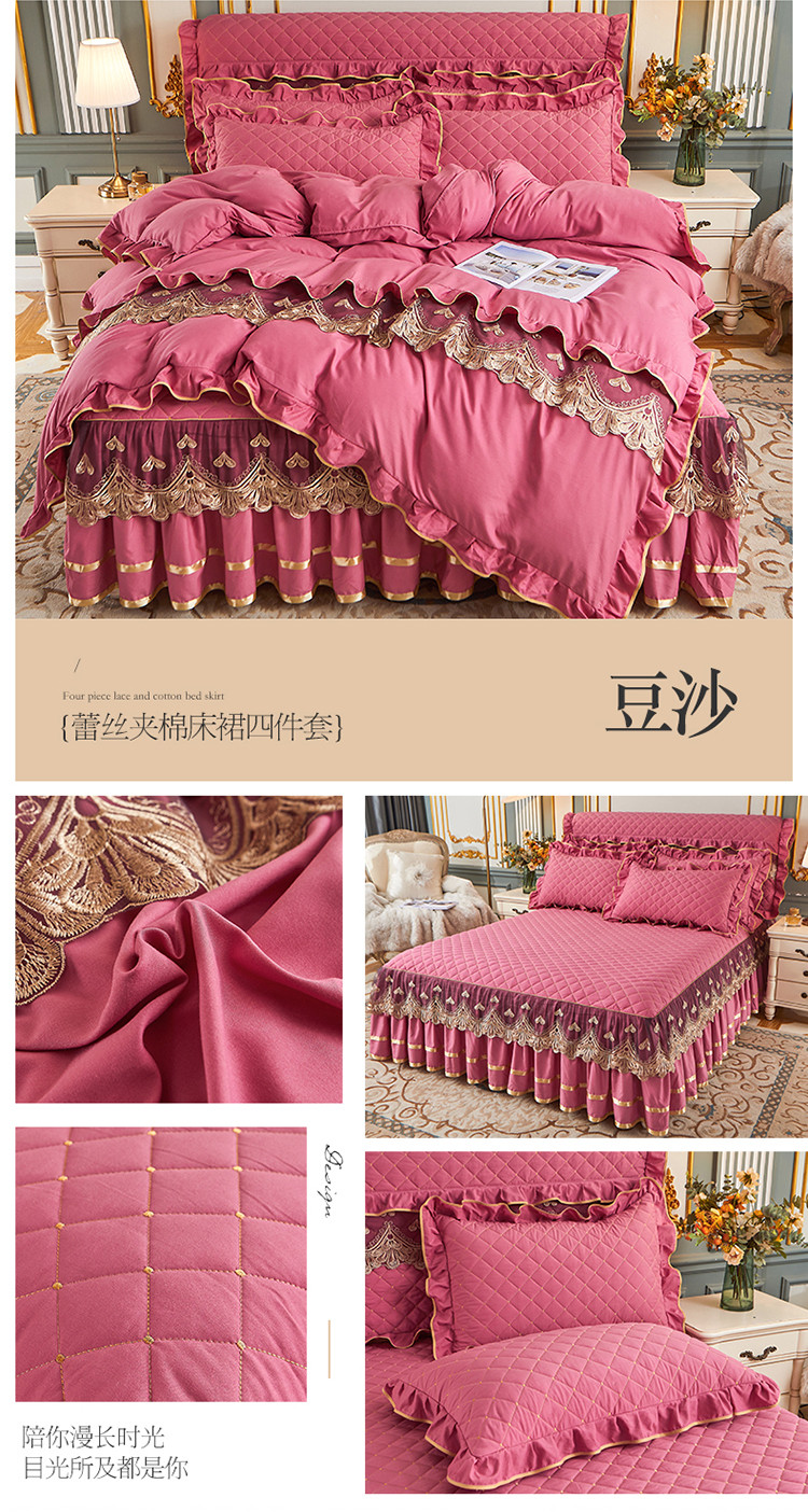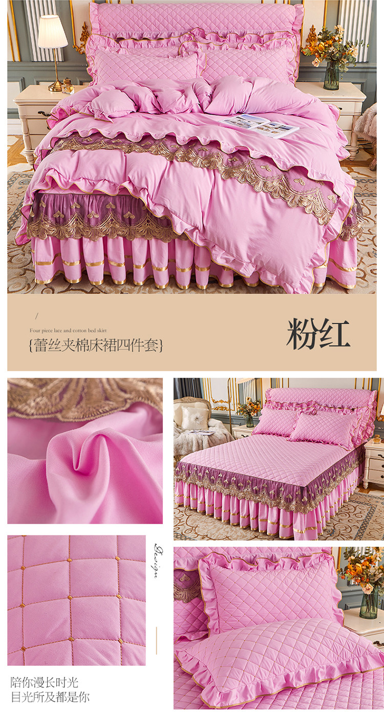 (总)屹成家纺2025新款水晶绒夹棉绗缝蕾丝床裙三件套(塞纳河畔)床裙单件起售价不低于105元,大红,豆沙,翡翠绿,粉玉,橄榄绿,蔚蓝,银灰