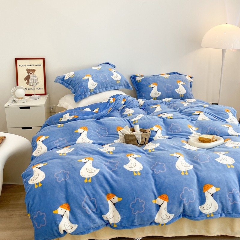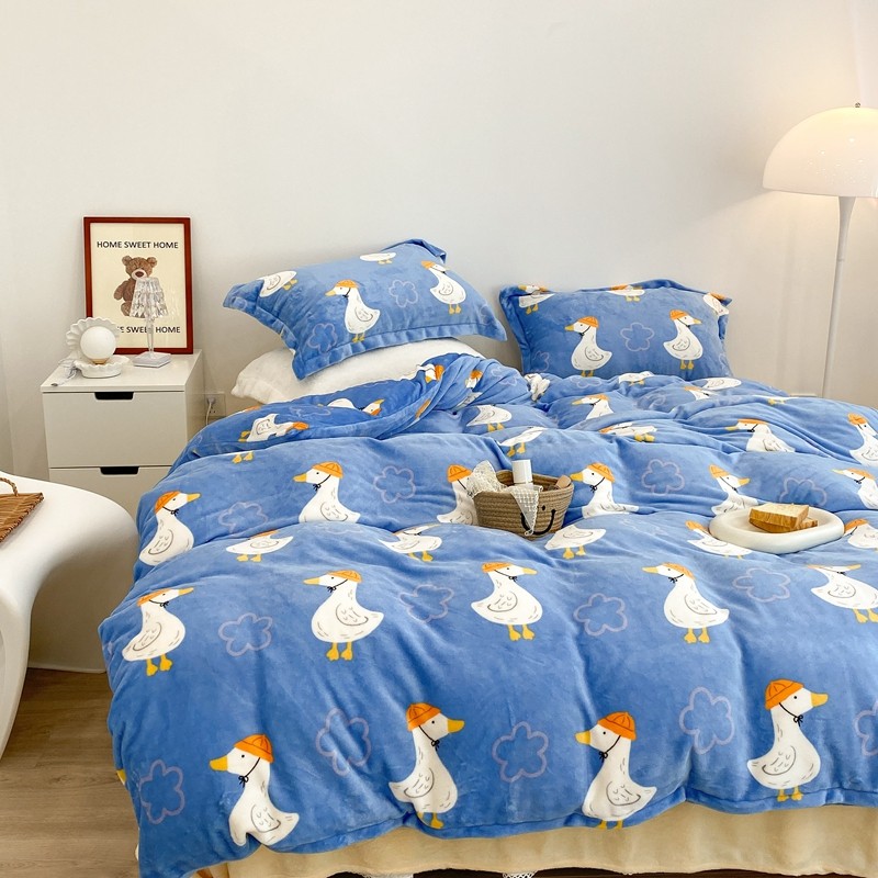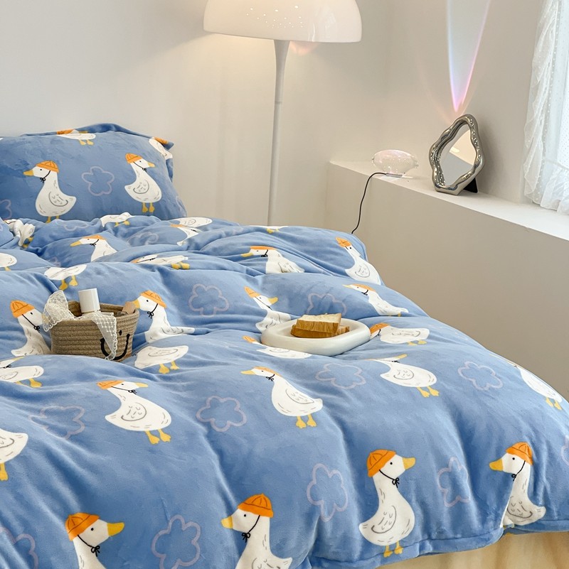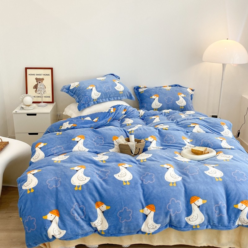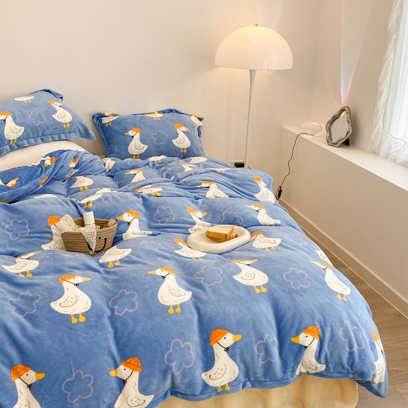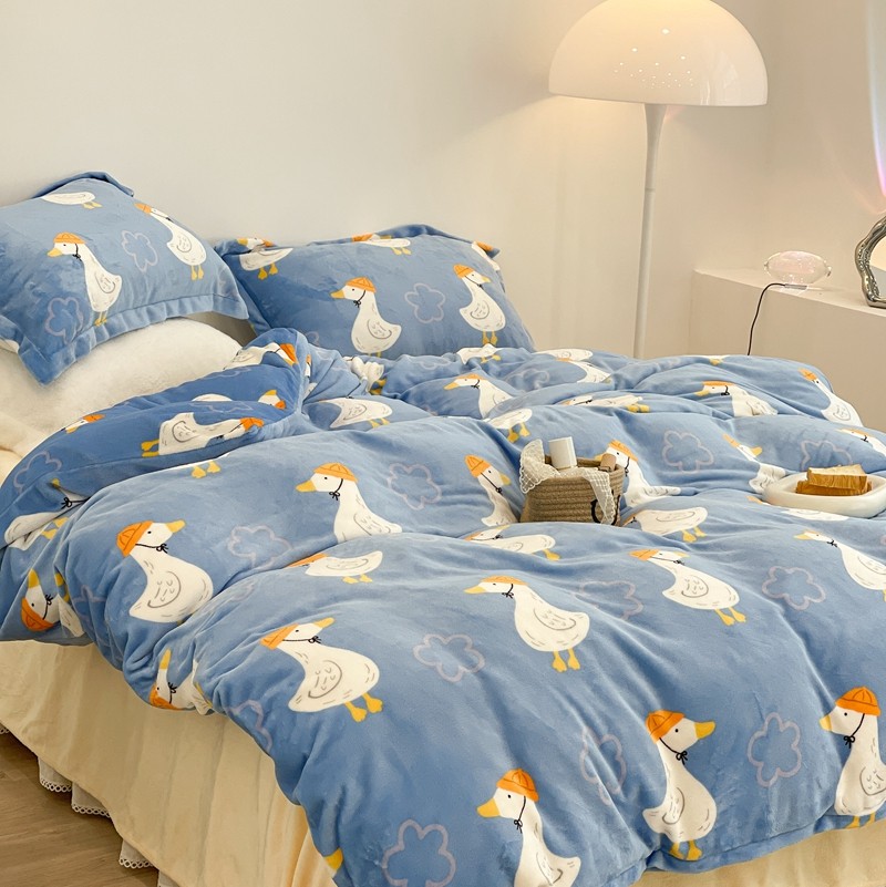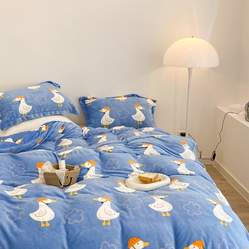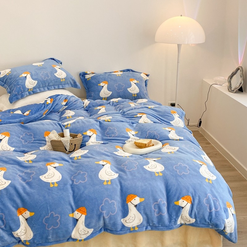 昔可家纺 2021新款牛奶绒四件套-三批 花朵鸭