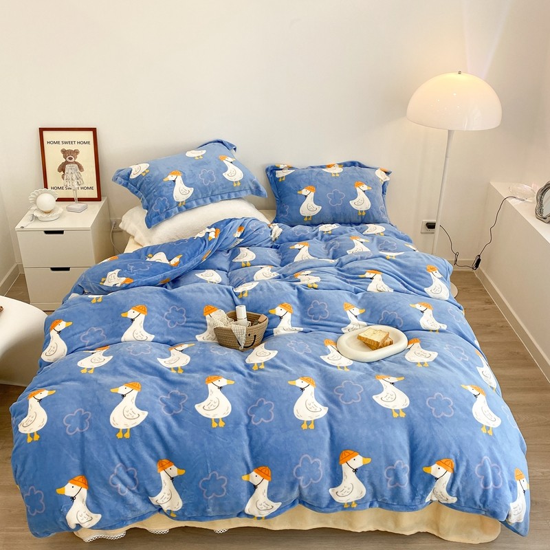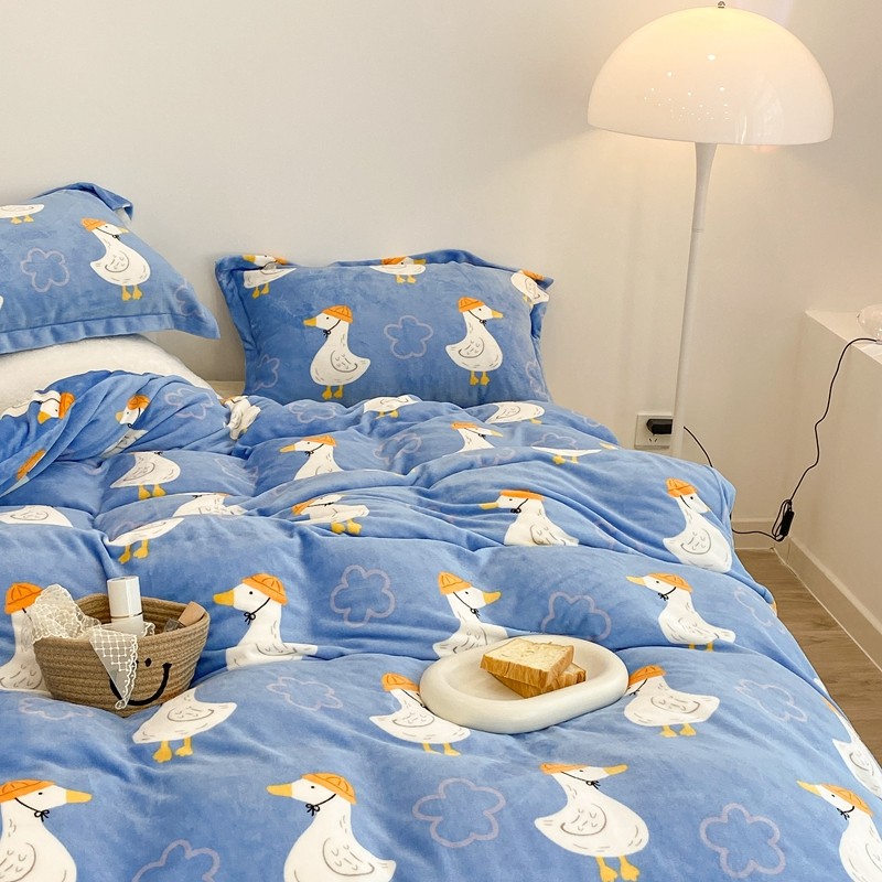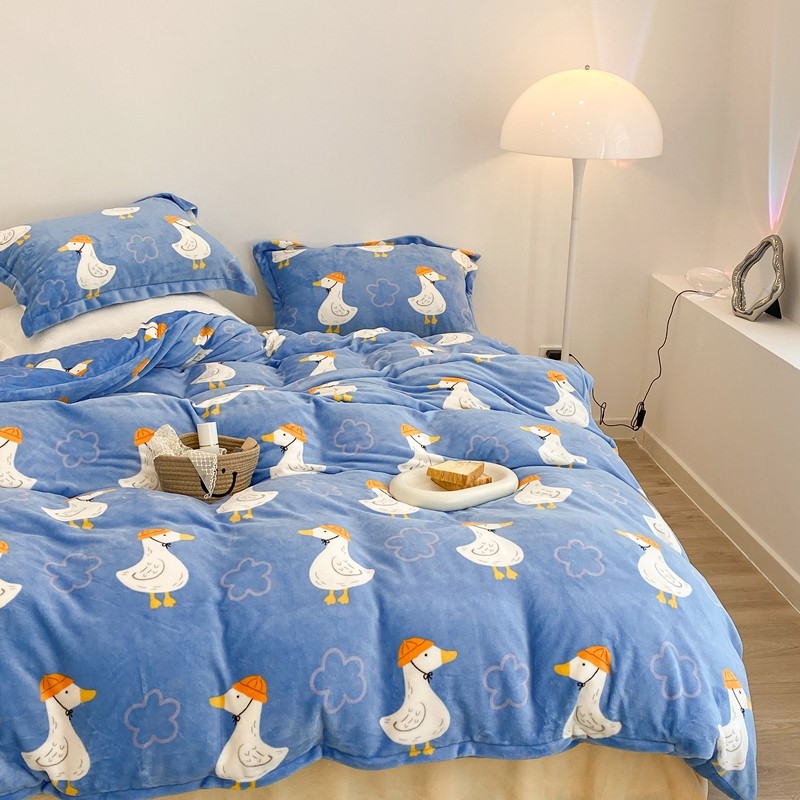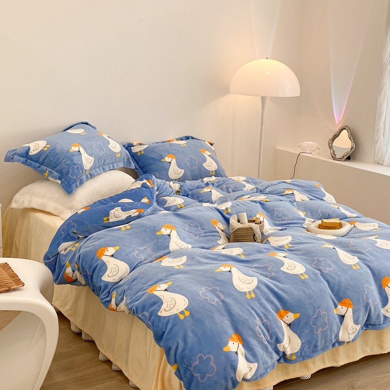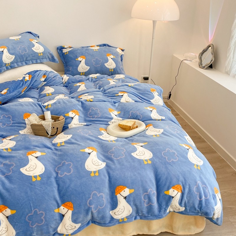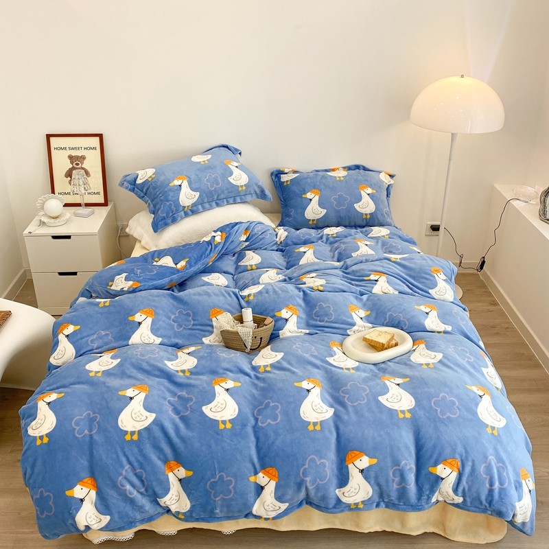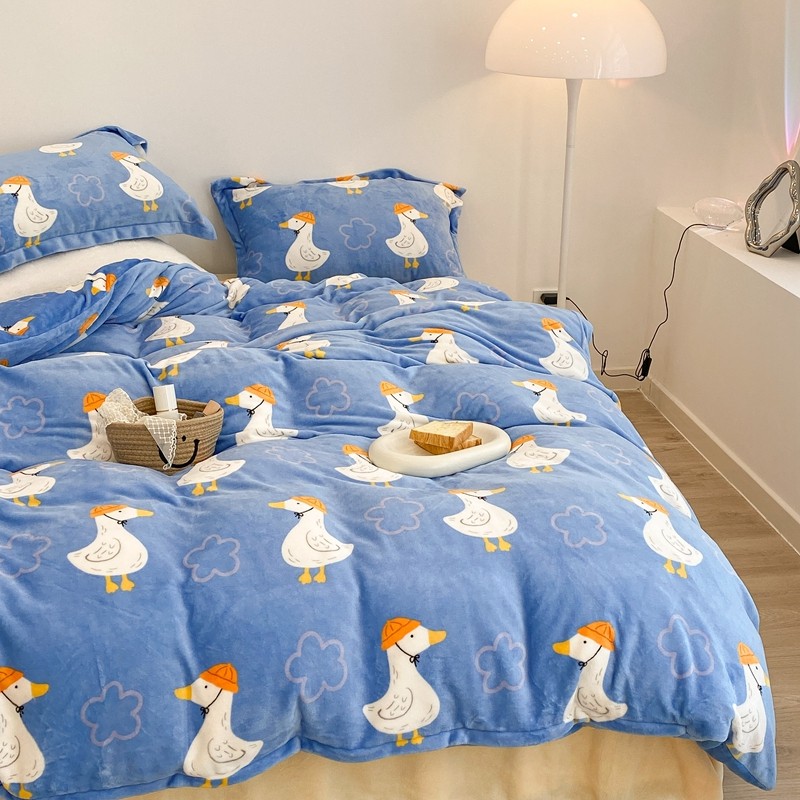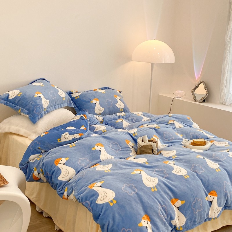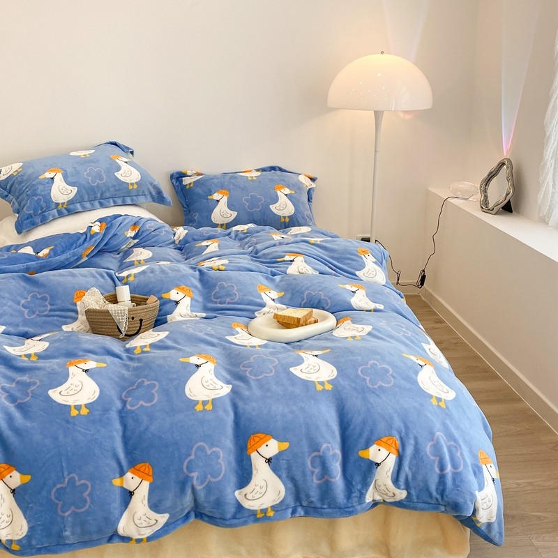 昔可家纺 2021新款牛奶绒四件套-三批 花朵鸭