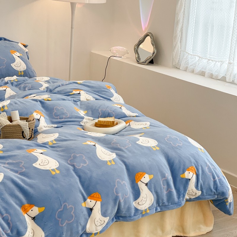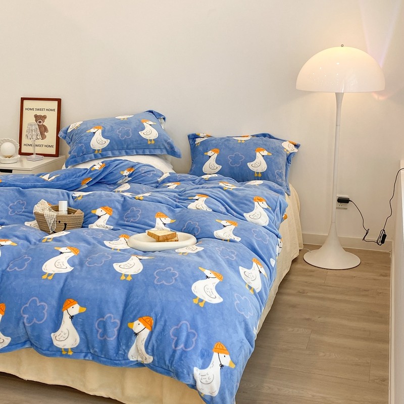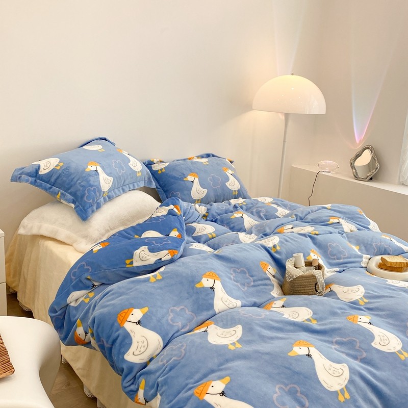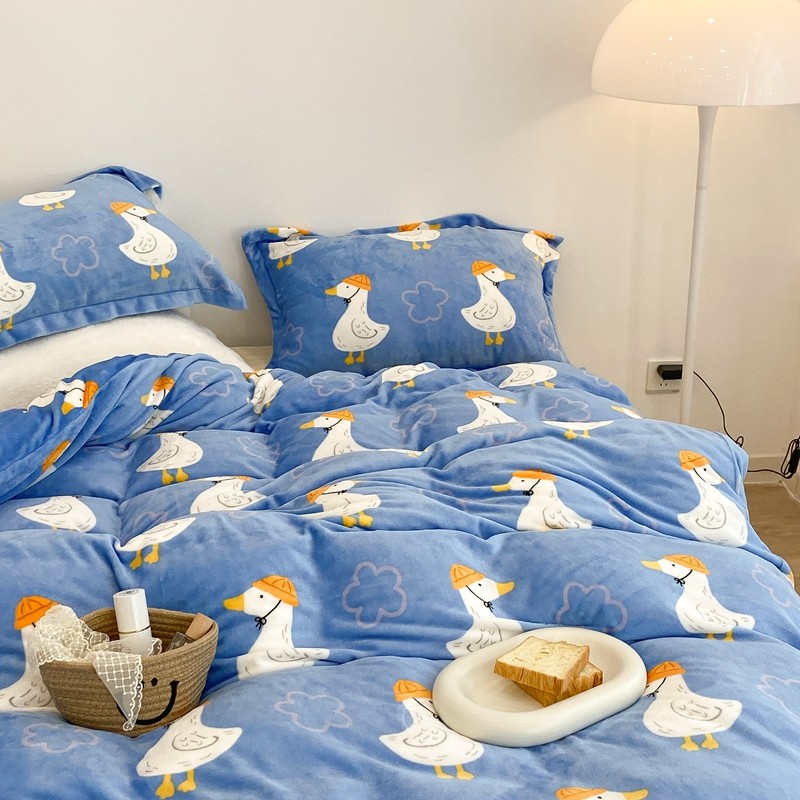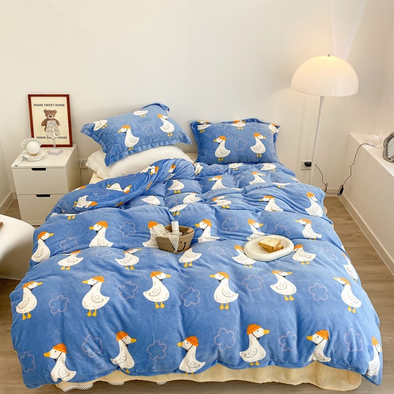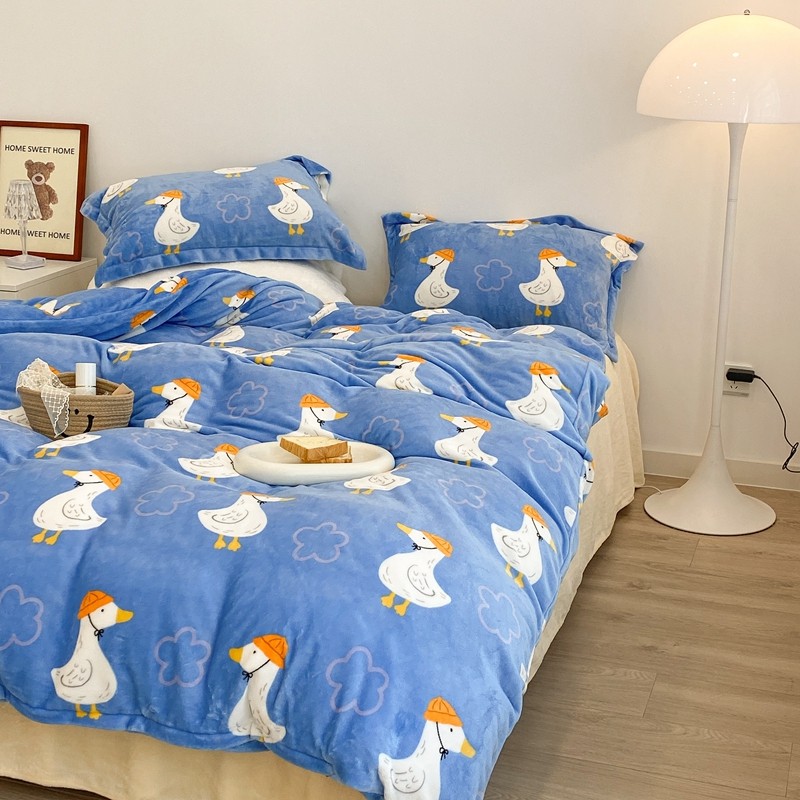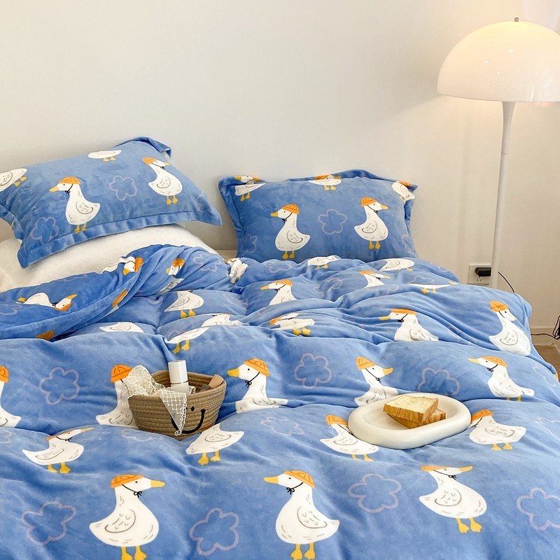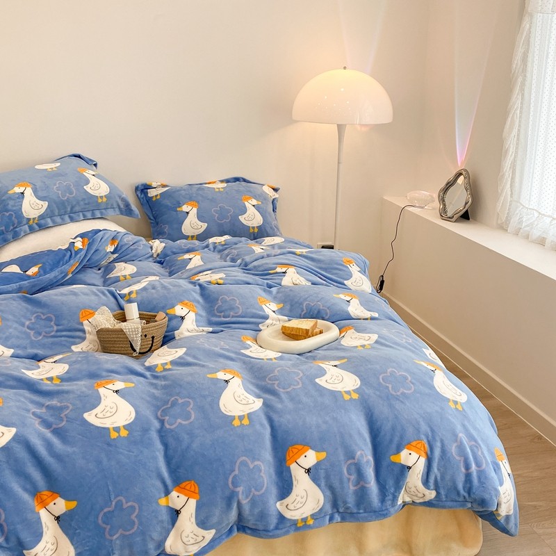 昔可家纺 2021新款牛奶绒四件套-三批 花朵鸭