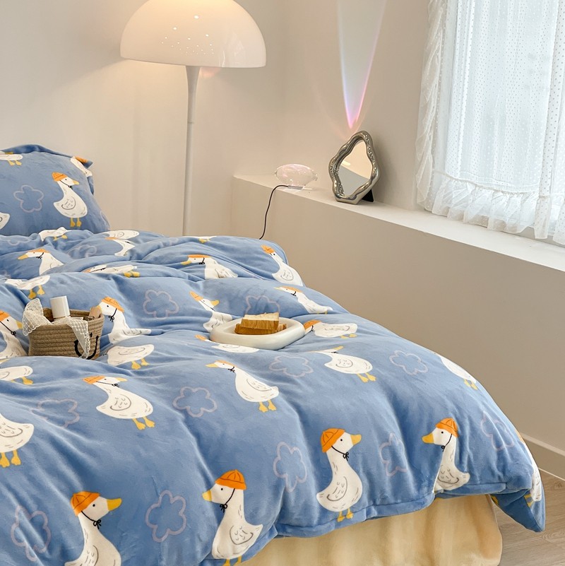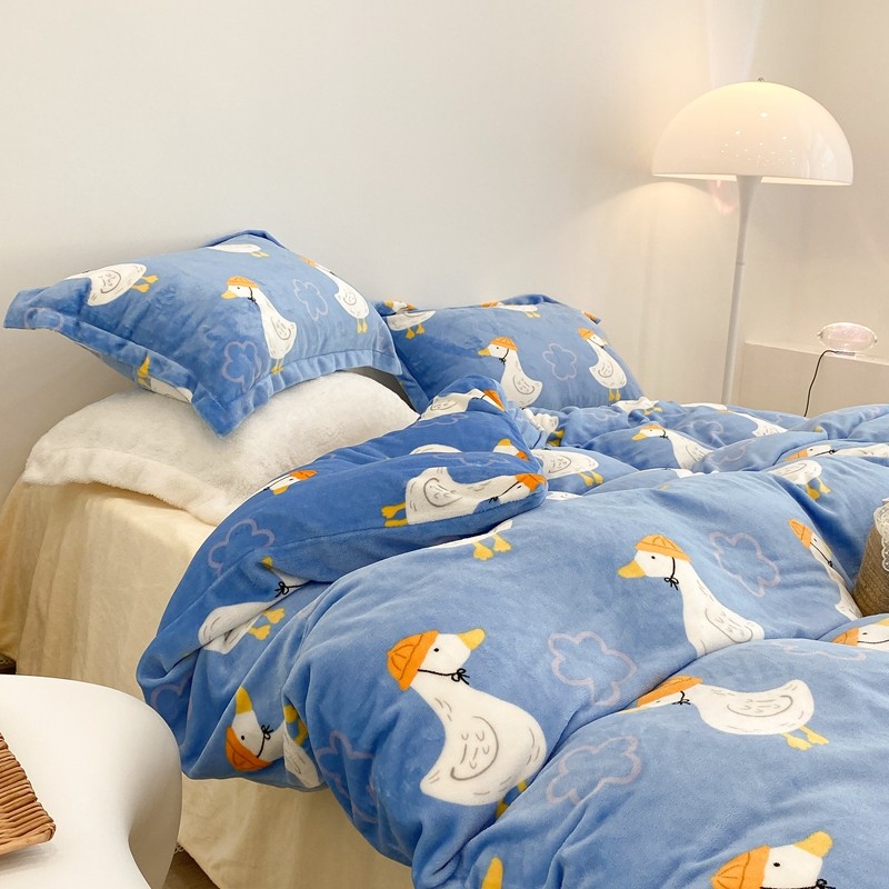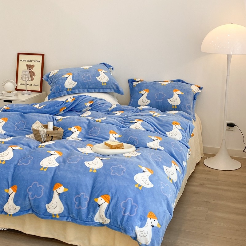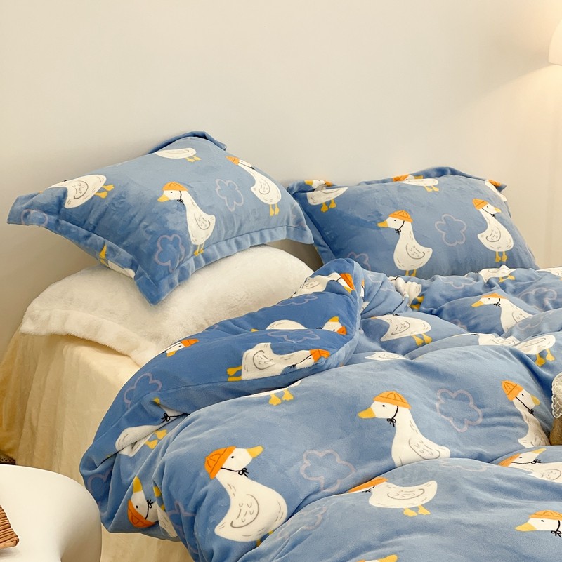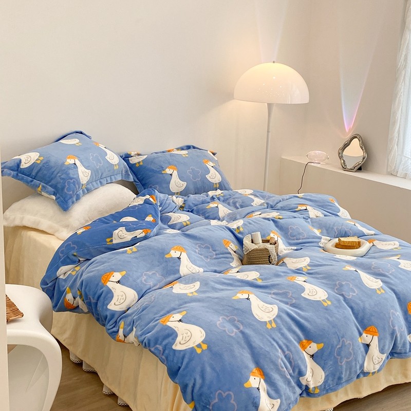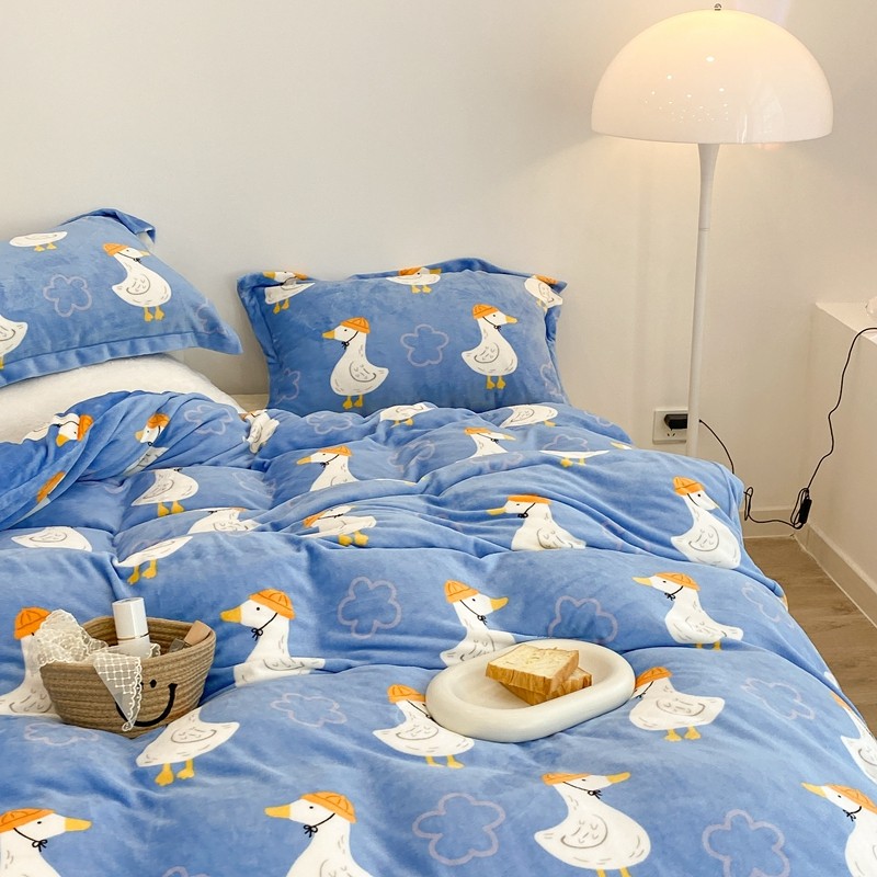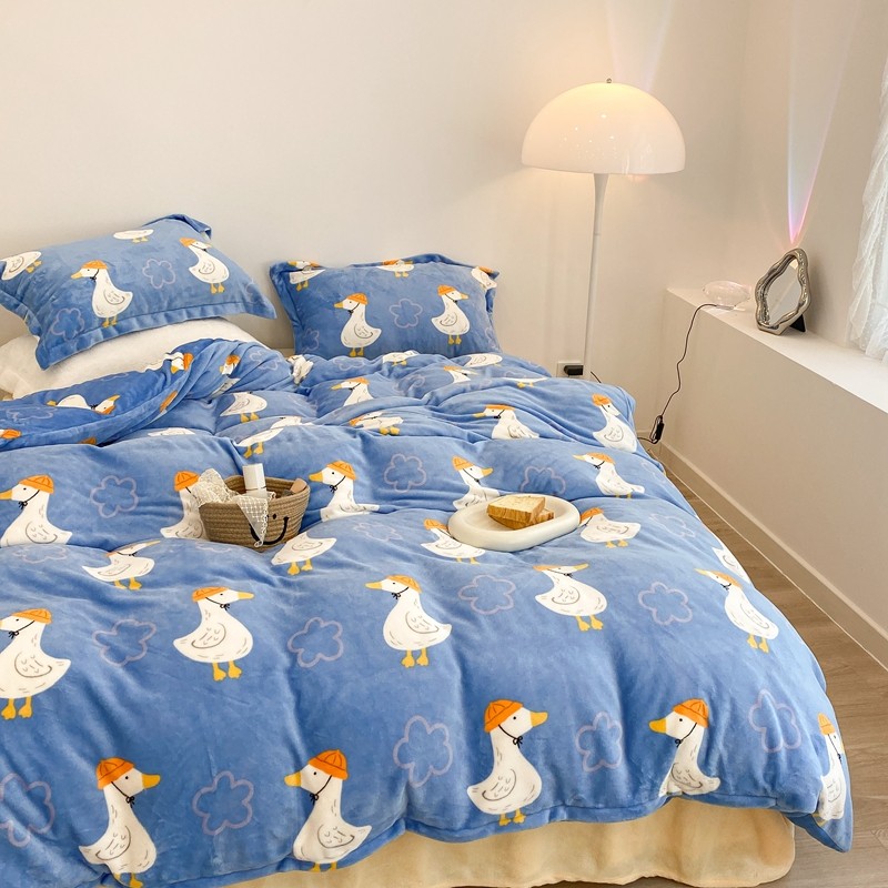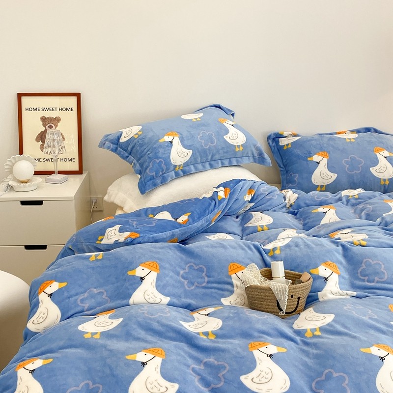 昔可家纺 2021新款牛奶绒四件套-三批 花朵鸭