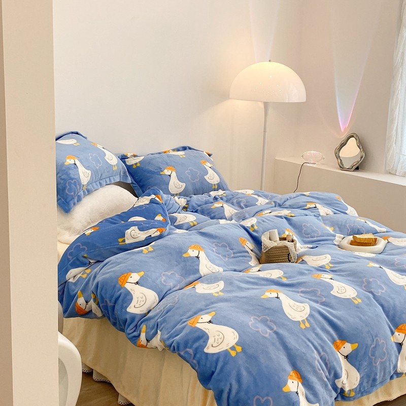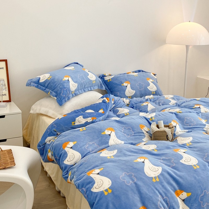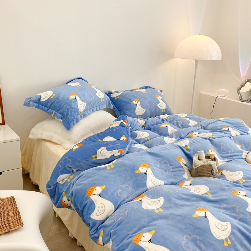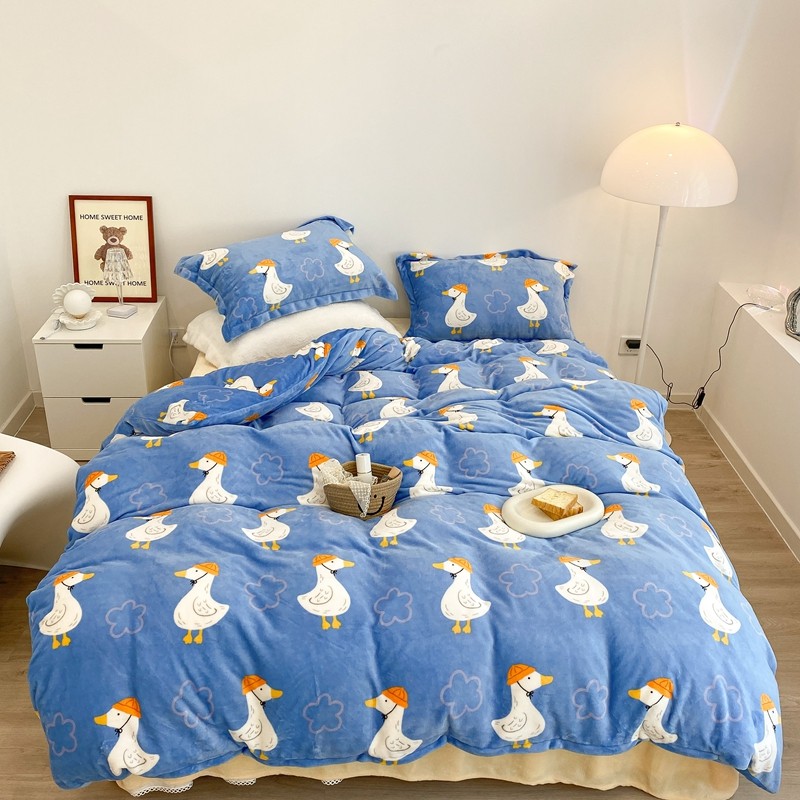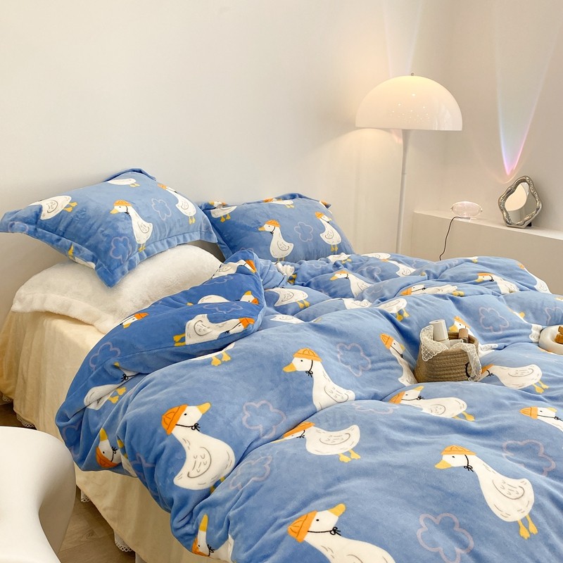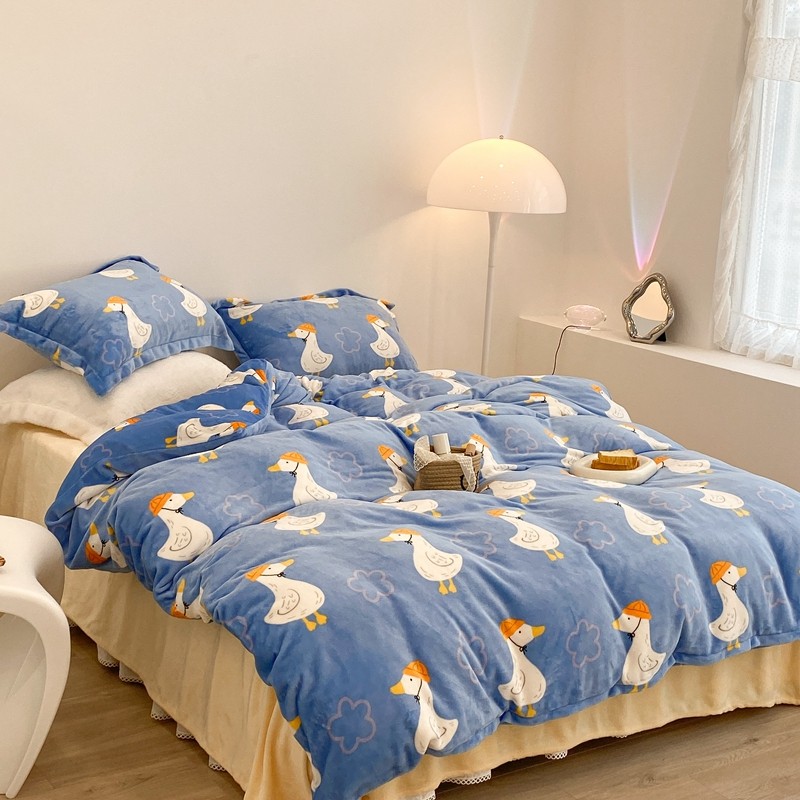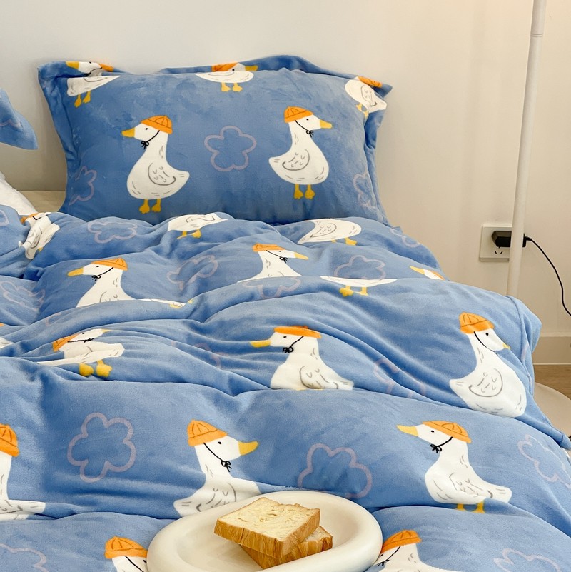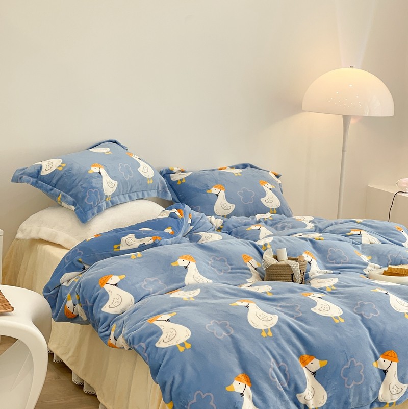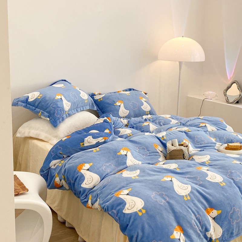 昔可家纺 2021新款牛奶绒四件套-三批 花朵鸭