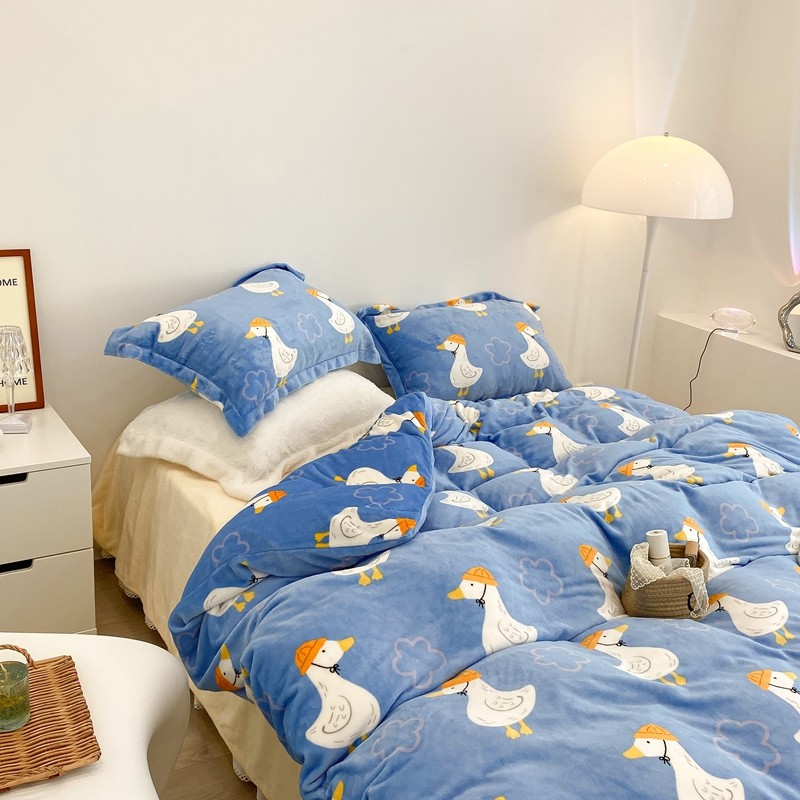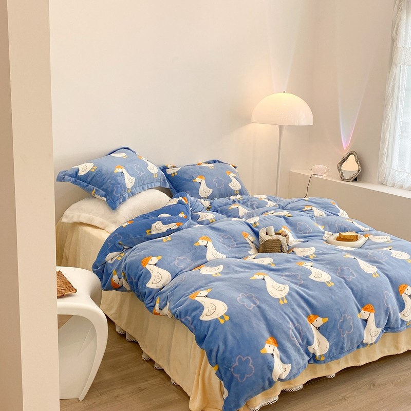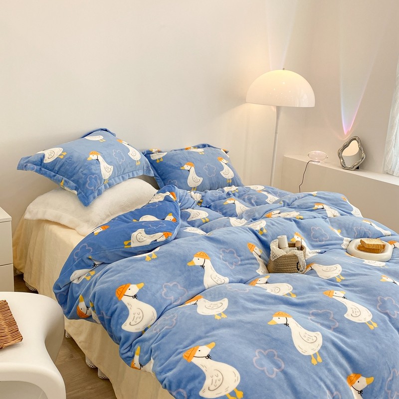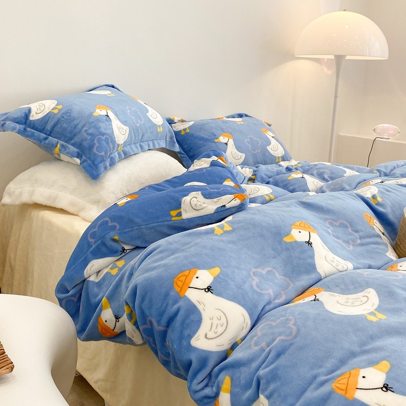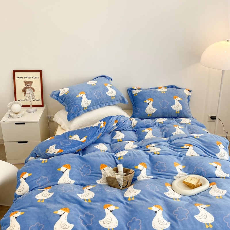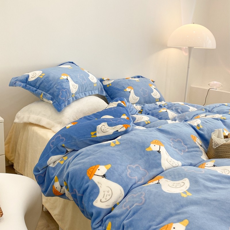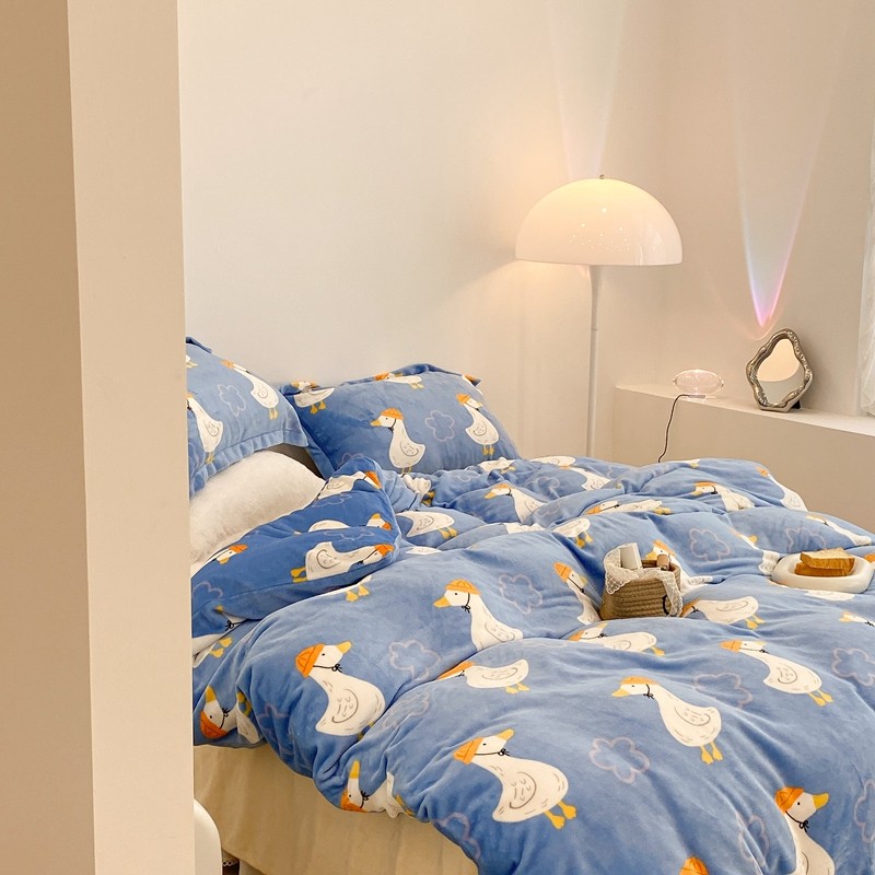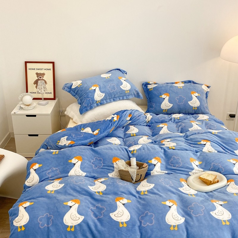 昔可家纺 2021新款牛奶绒四件套-三批 花朵鸭