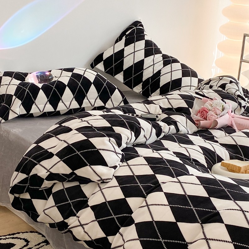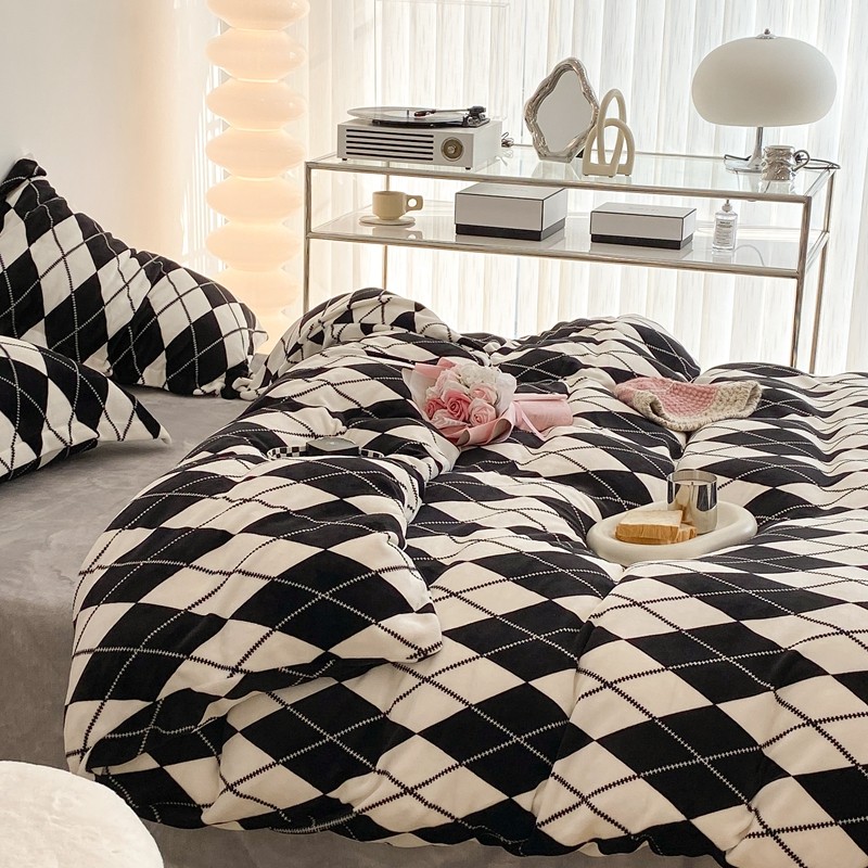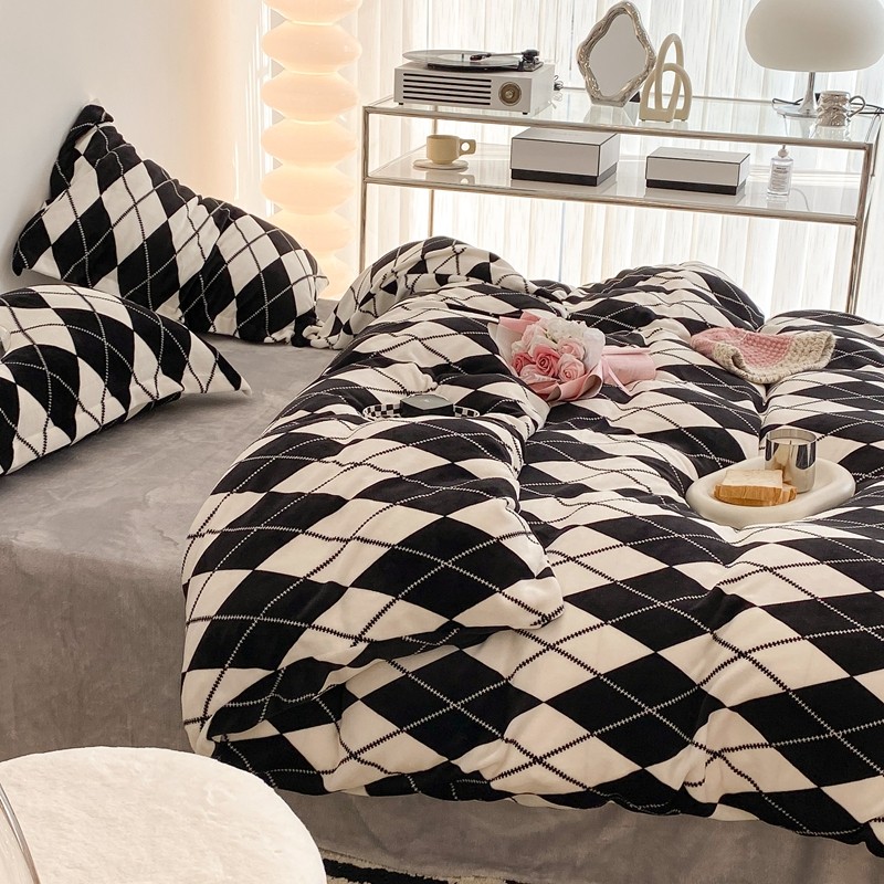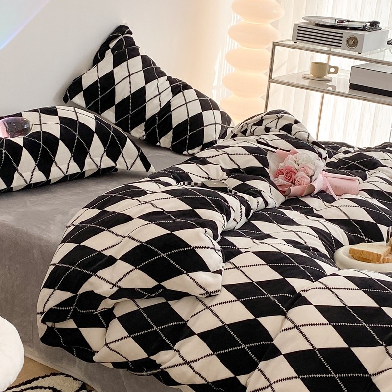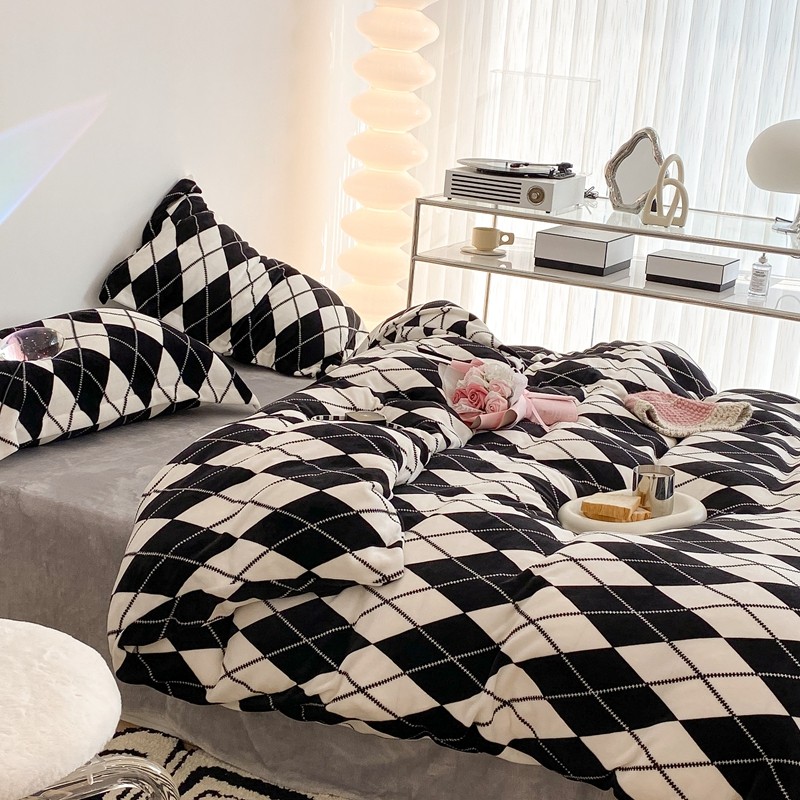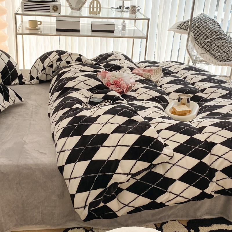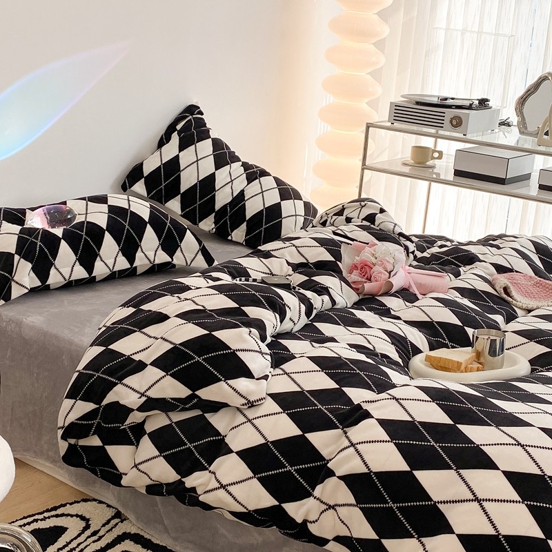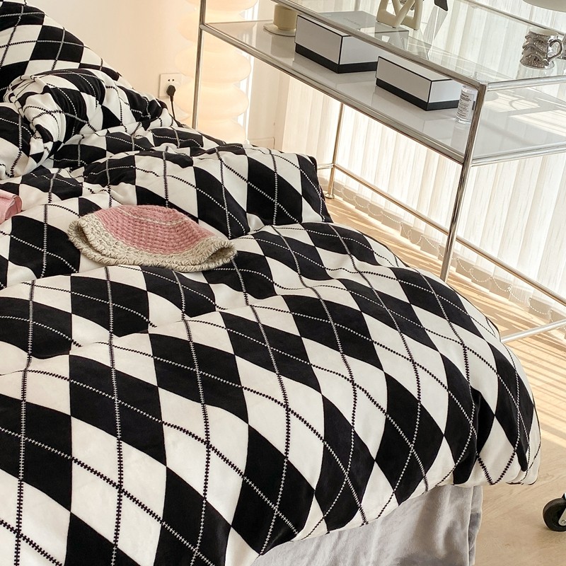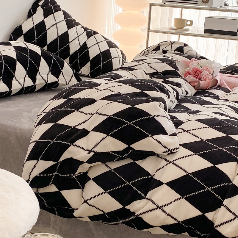 昔可家纺 2021新款牛奶绒四件套-三批 菱格-黑灰