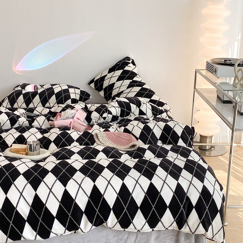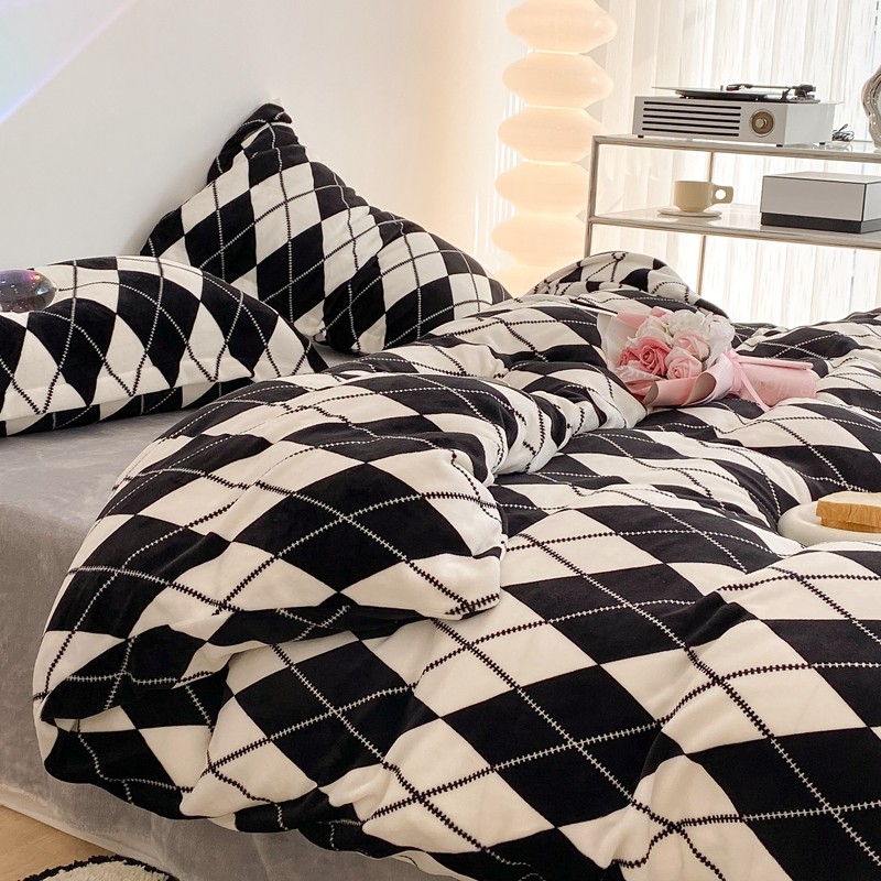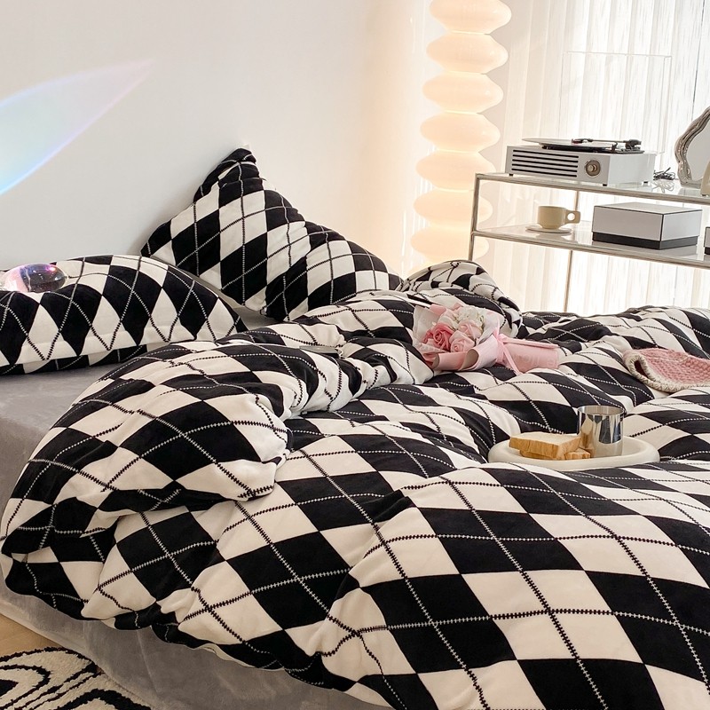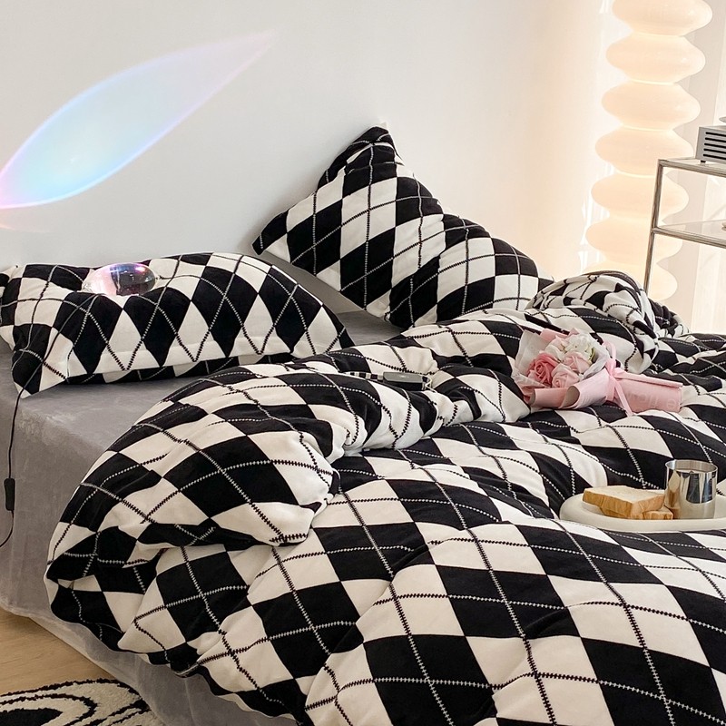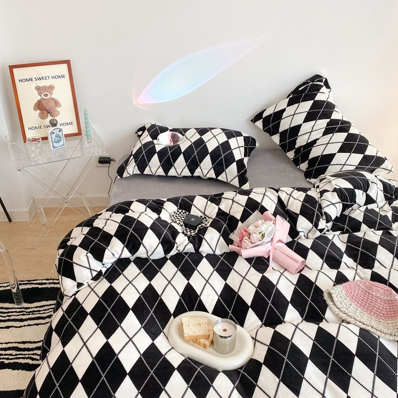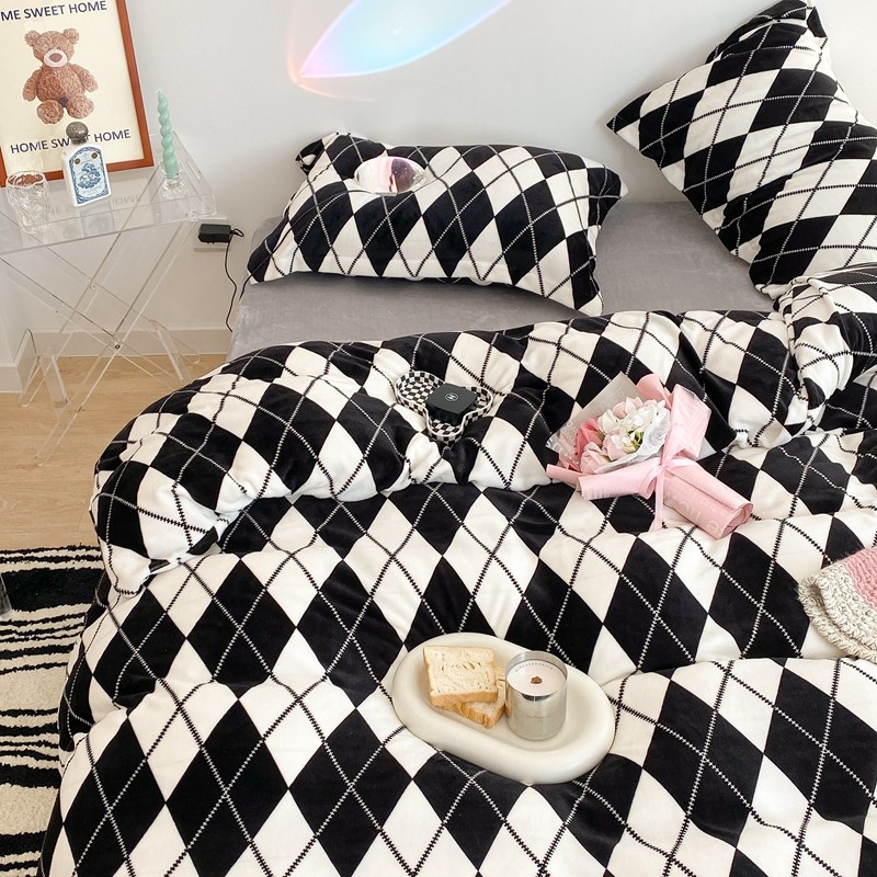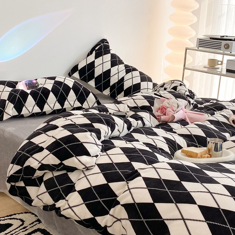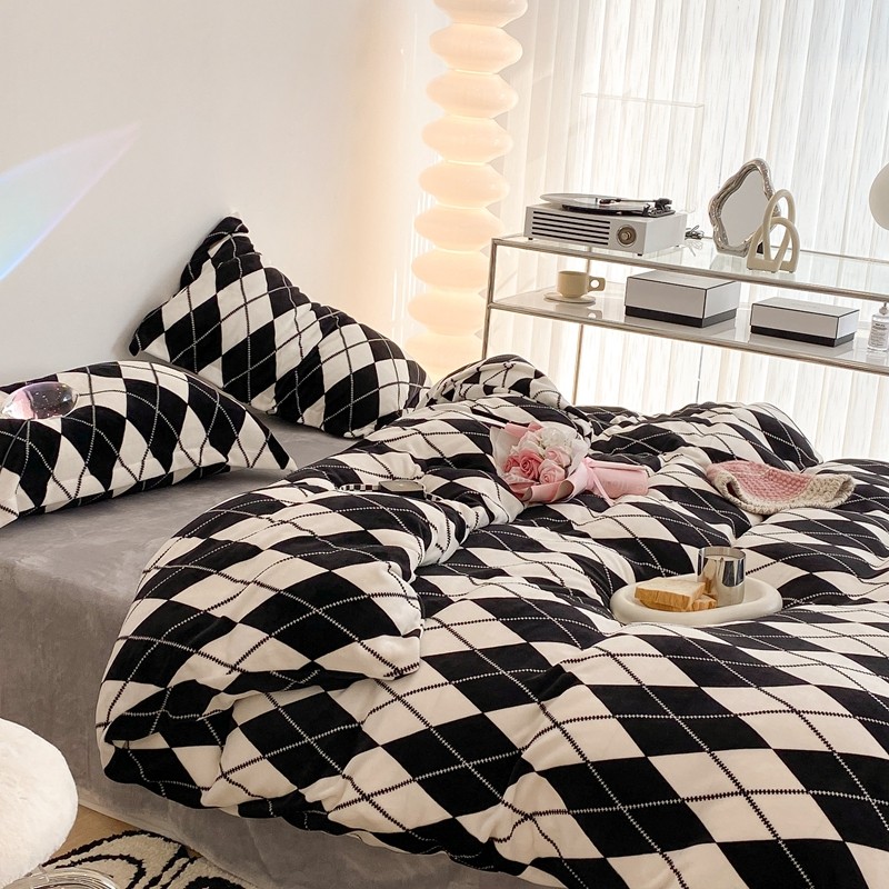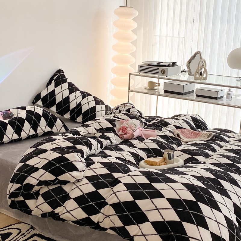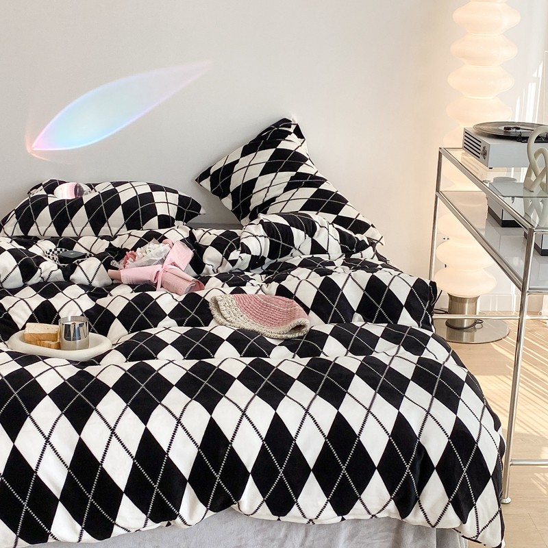 昔可家纺 2021新款牛奶绒四件套-三批 菱格-黑灰