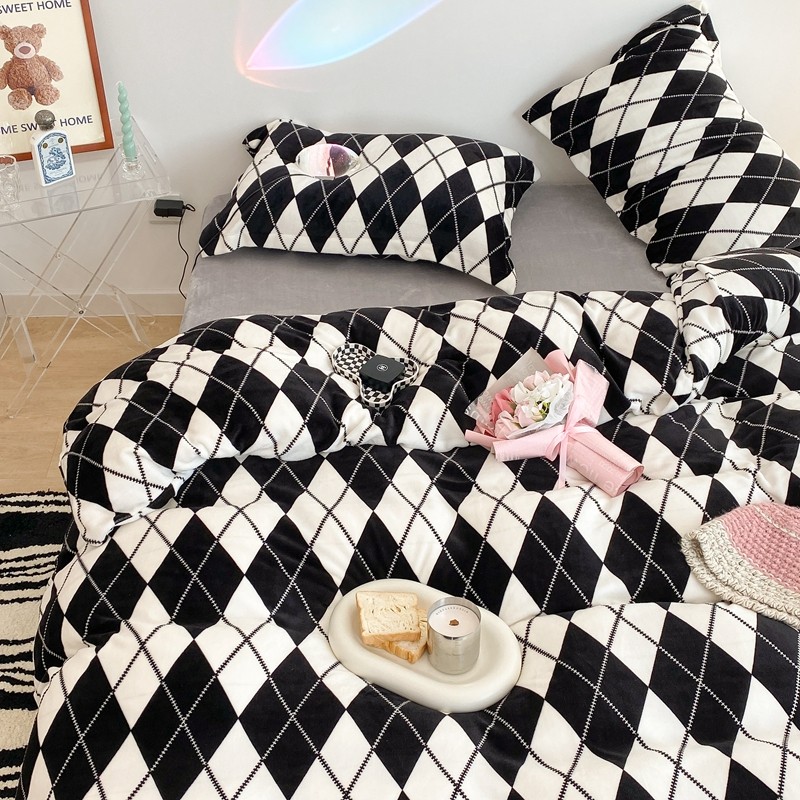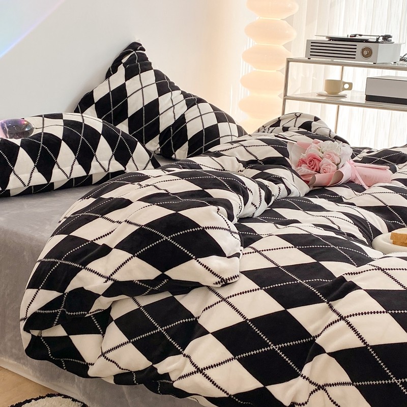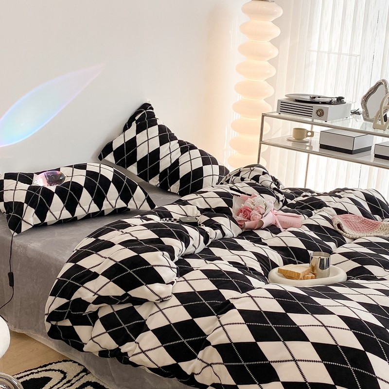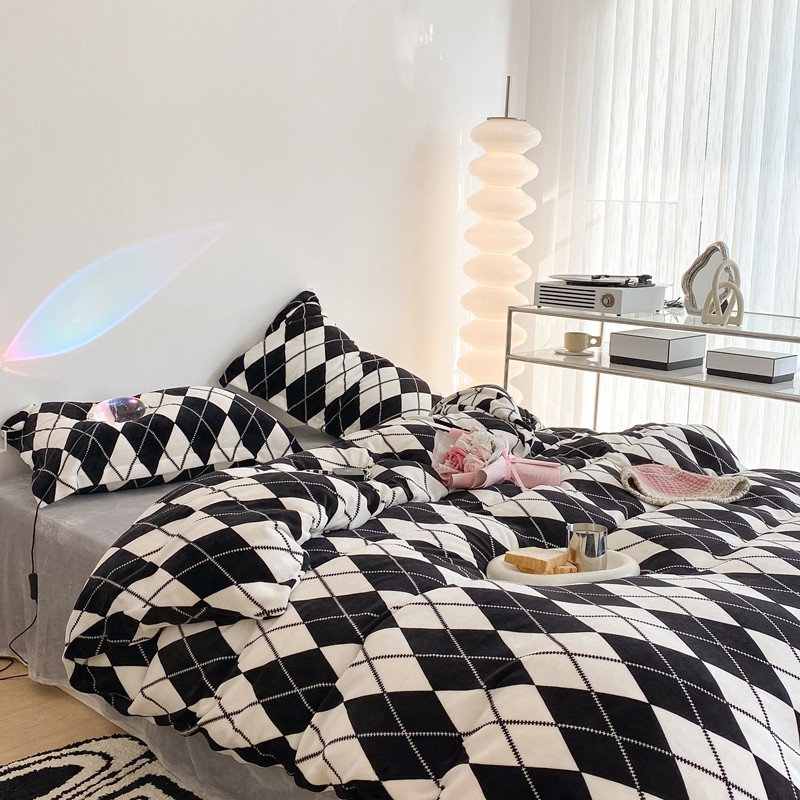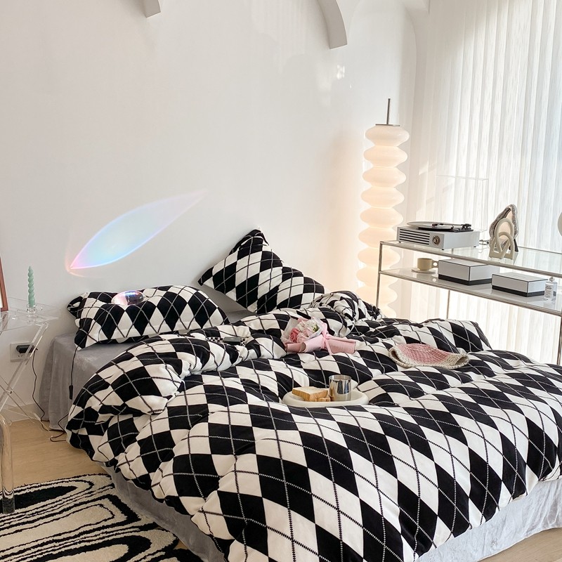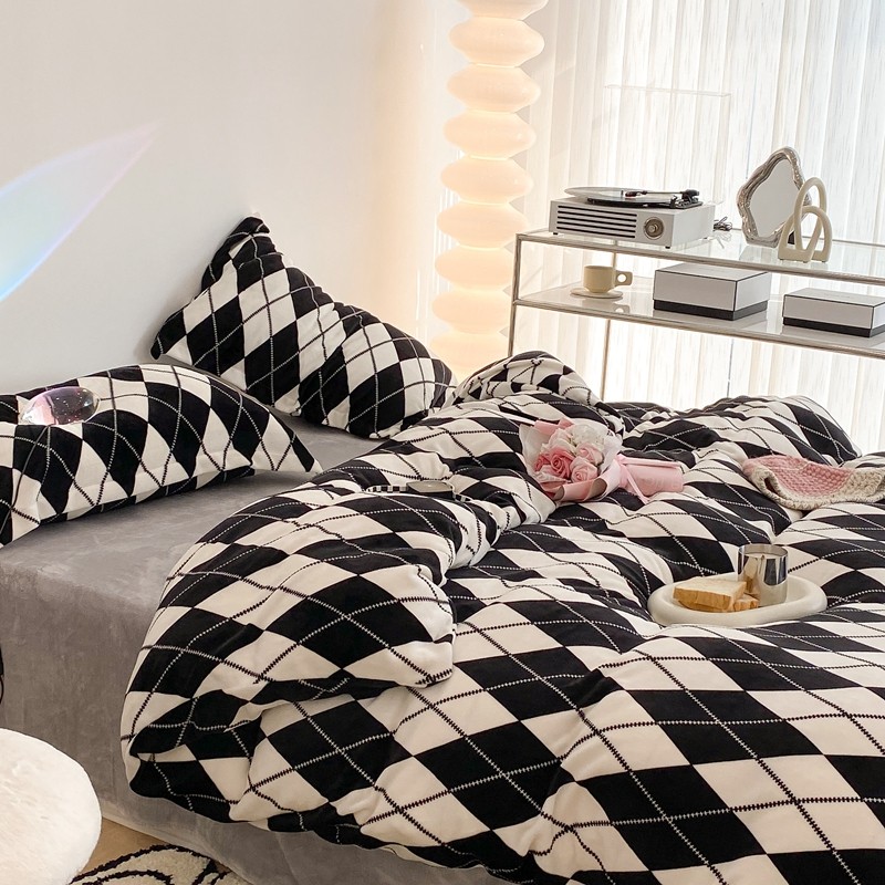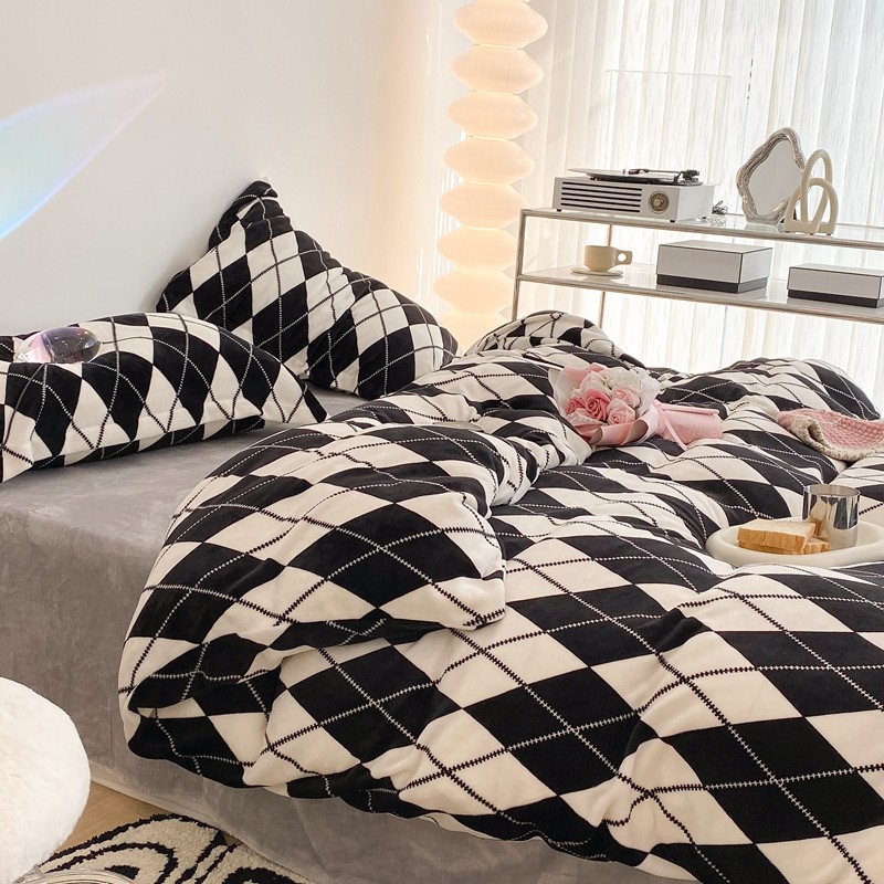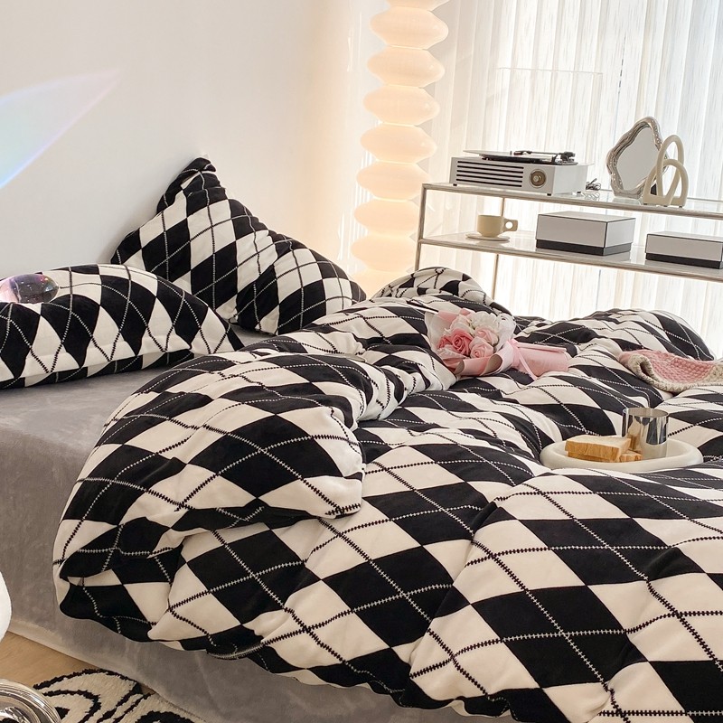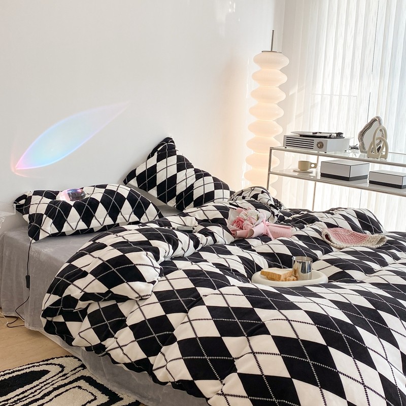 昔可家纺 2021新款牛奶绒四件套-三批 菱格-黑灰