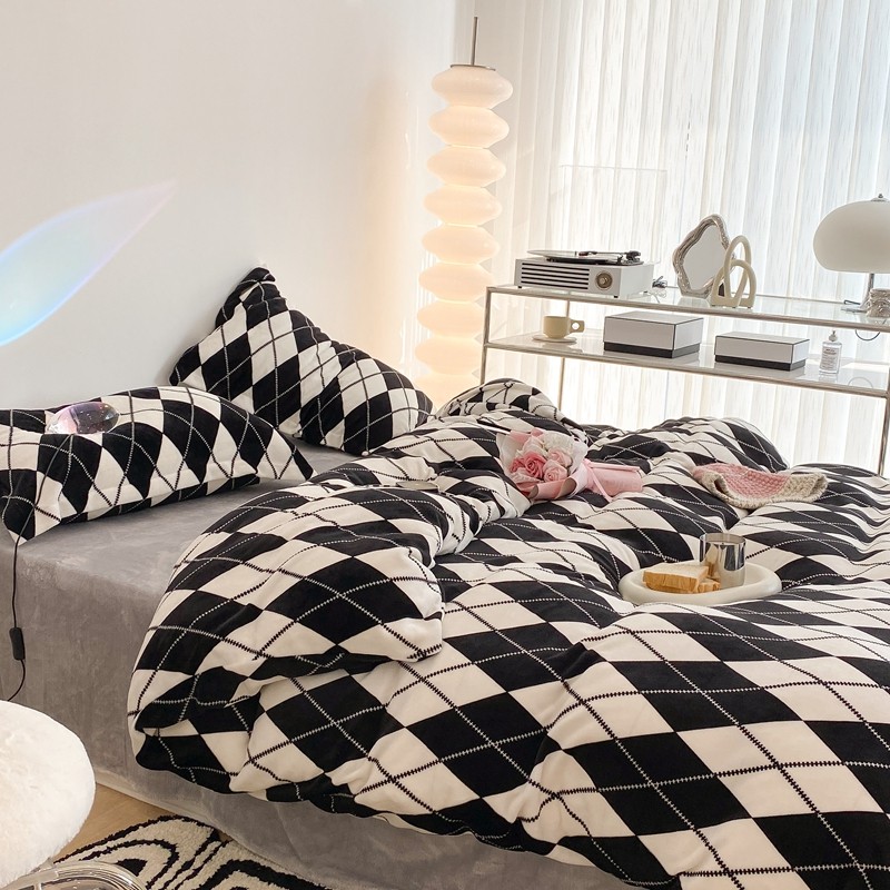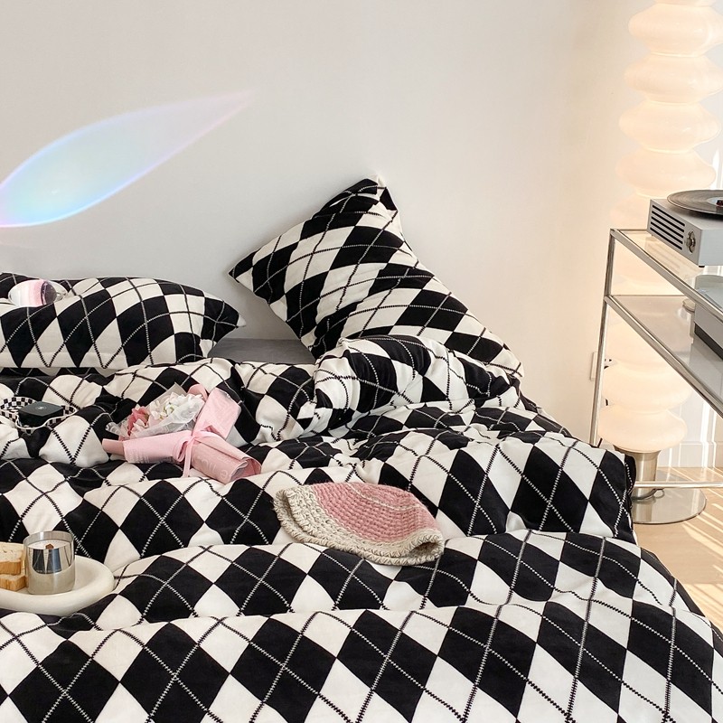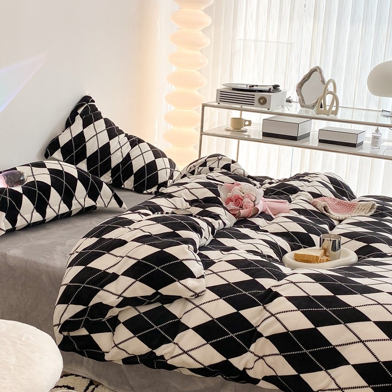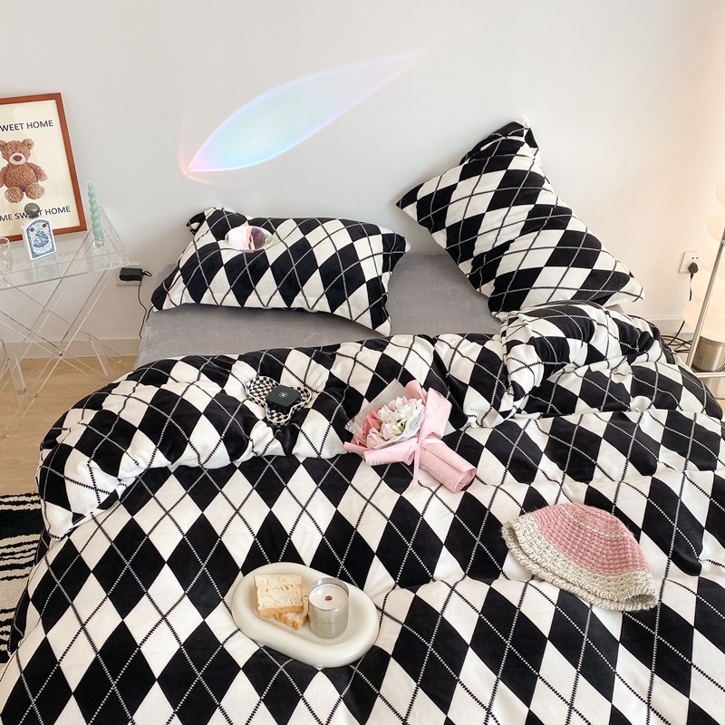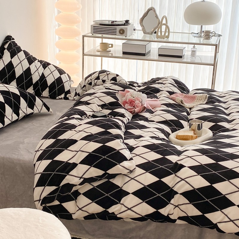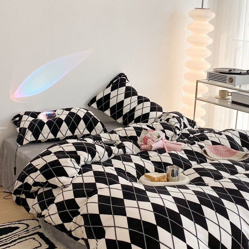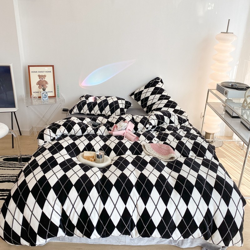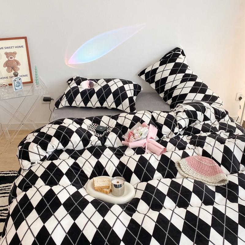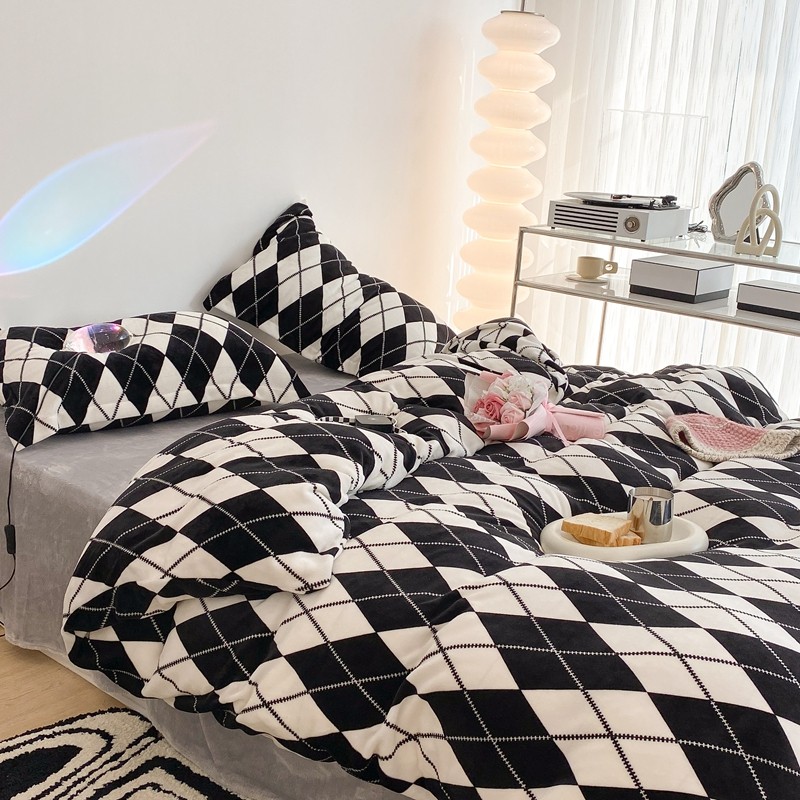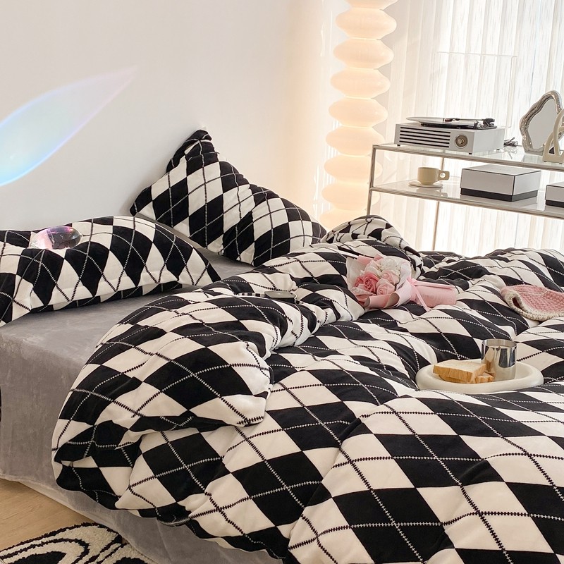 昔可家纺 2021新款牛奶绒四件套-三批 菱格-黑灰