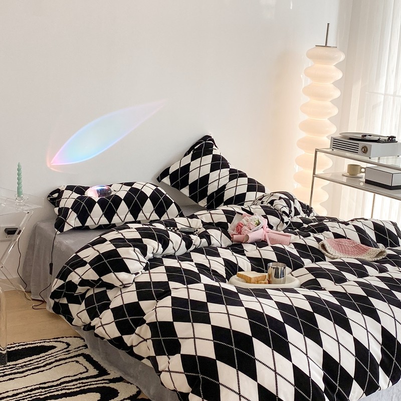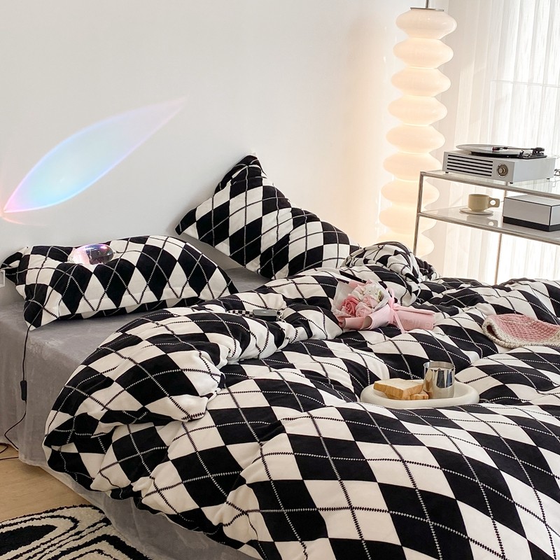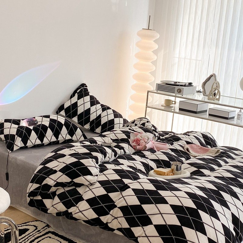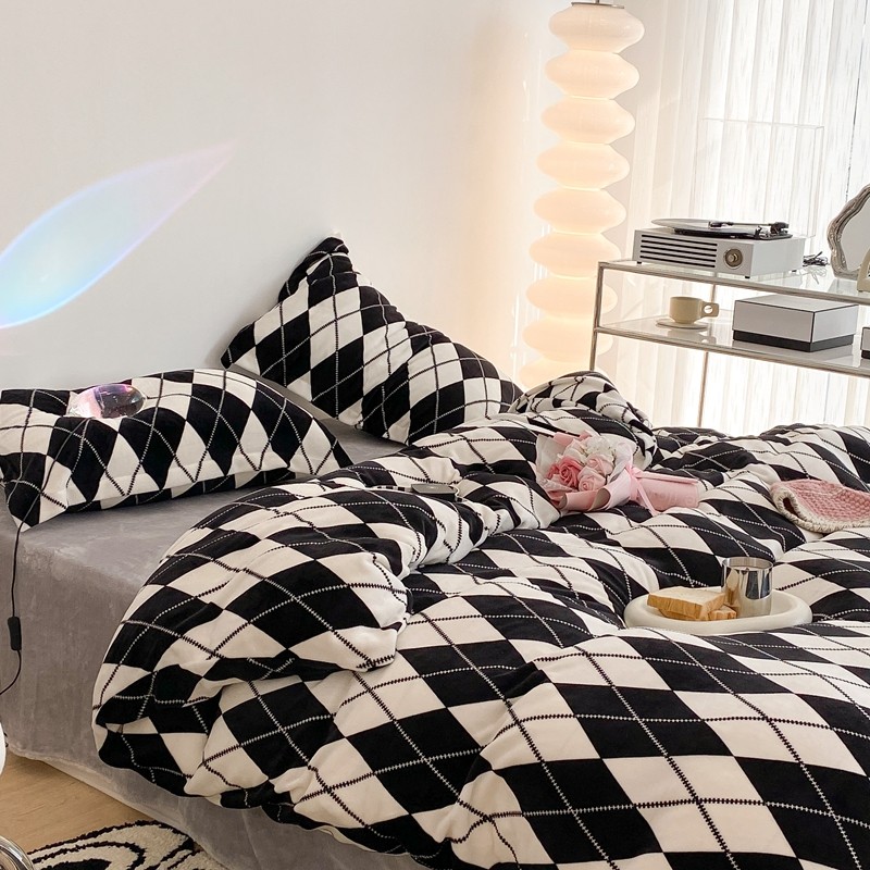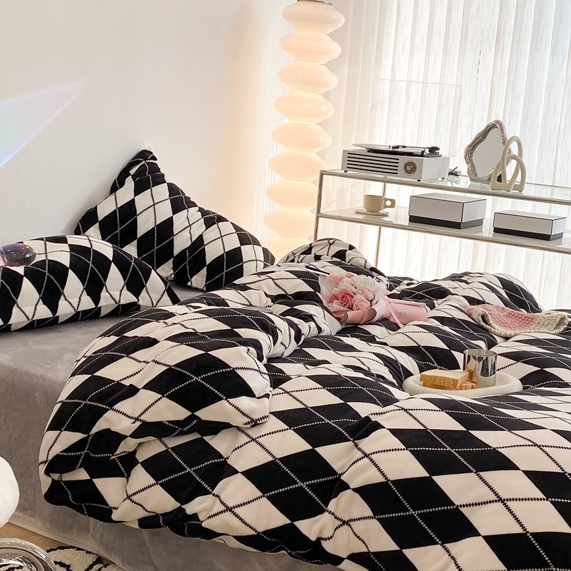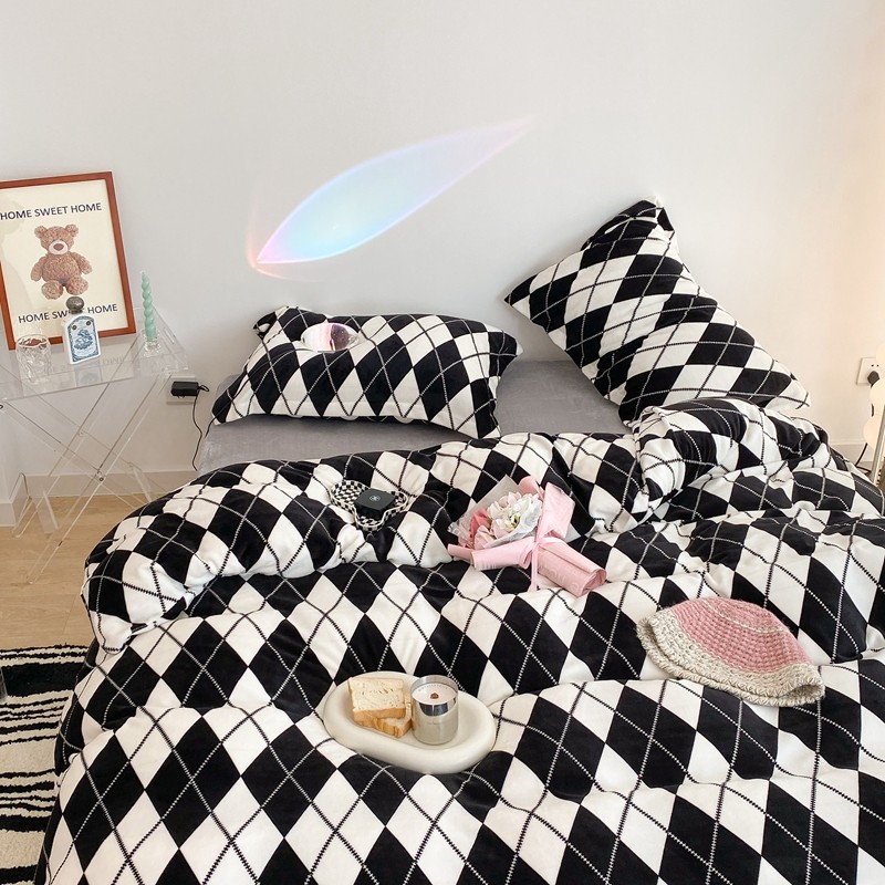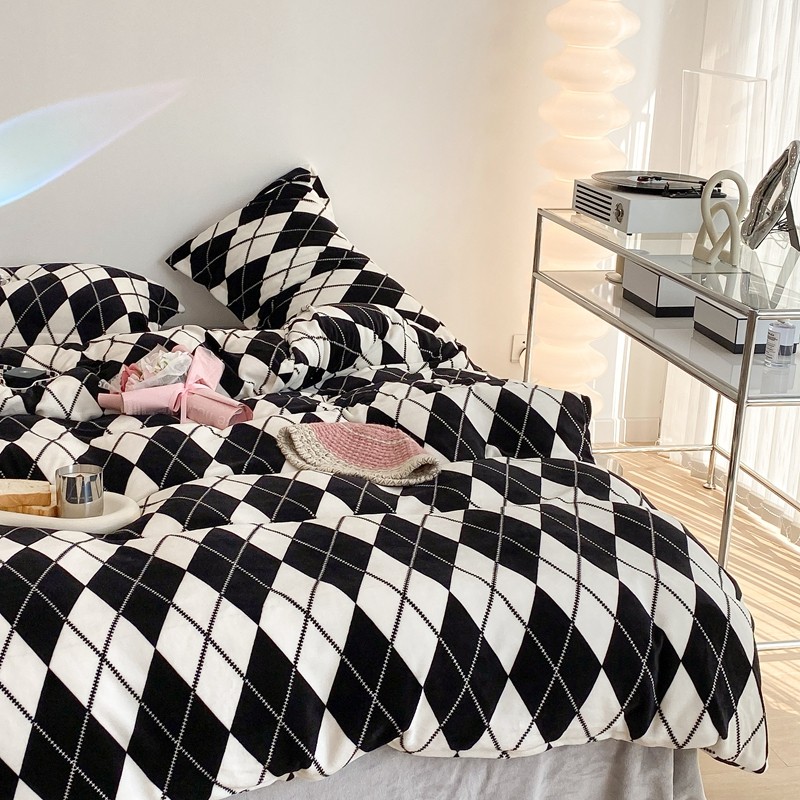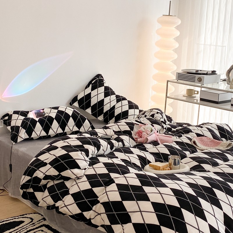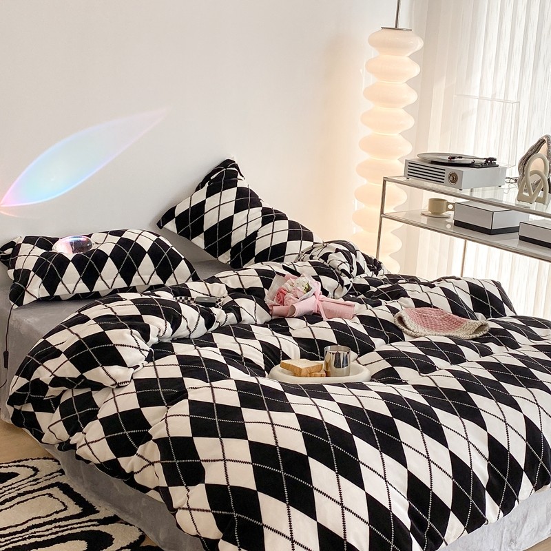 昔可家纺 2021新款牛奶绒四件套-三批 菱格-黑灰