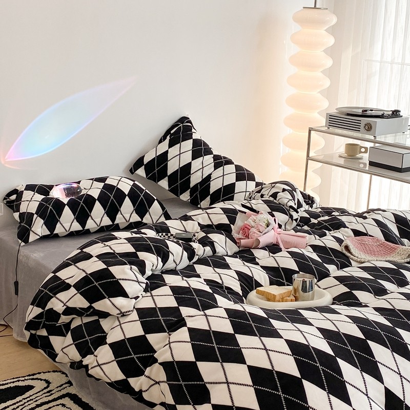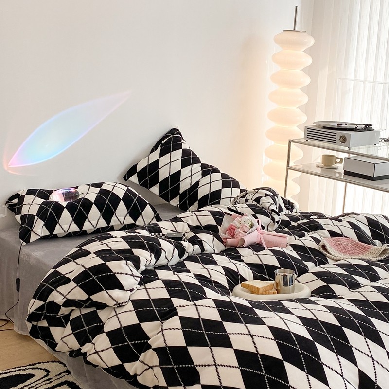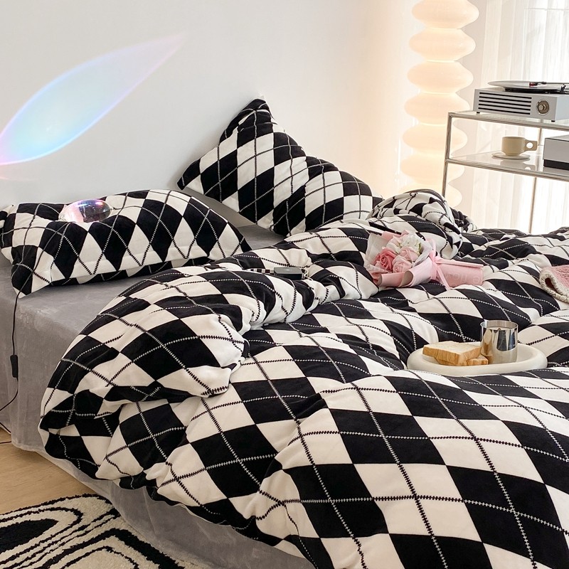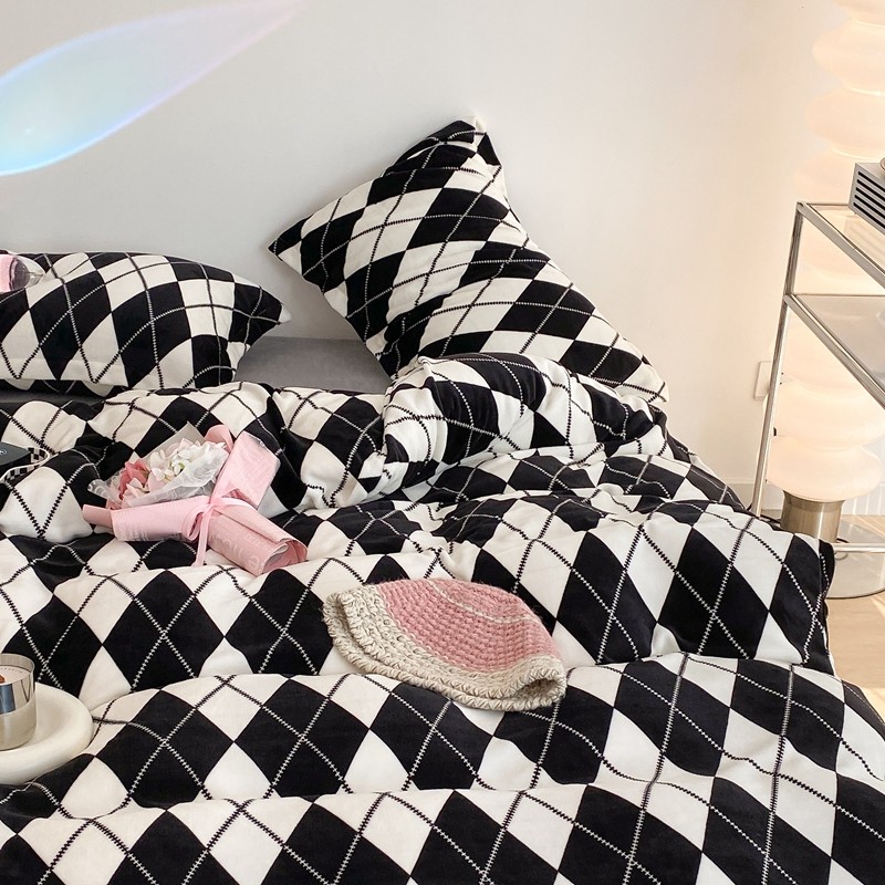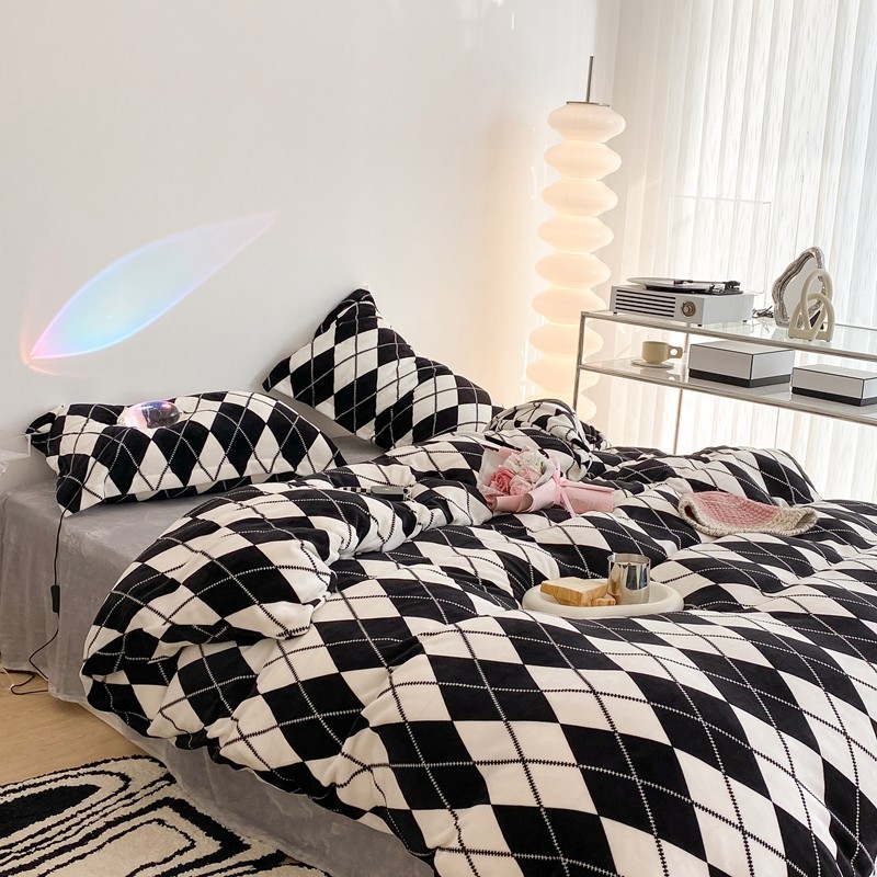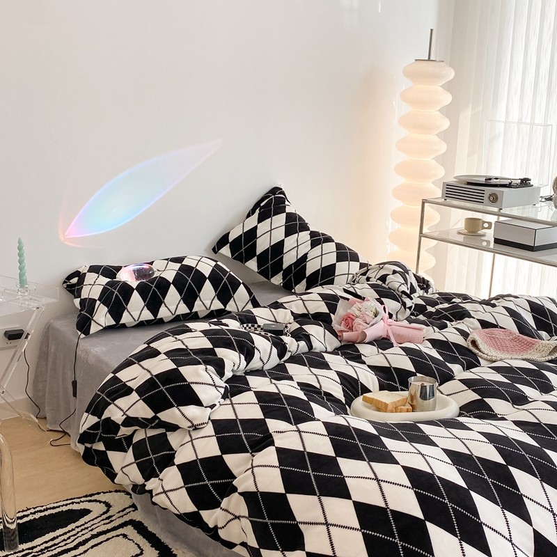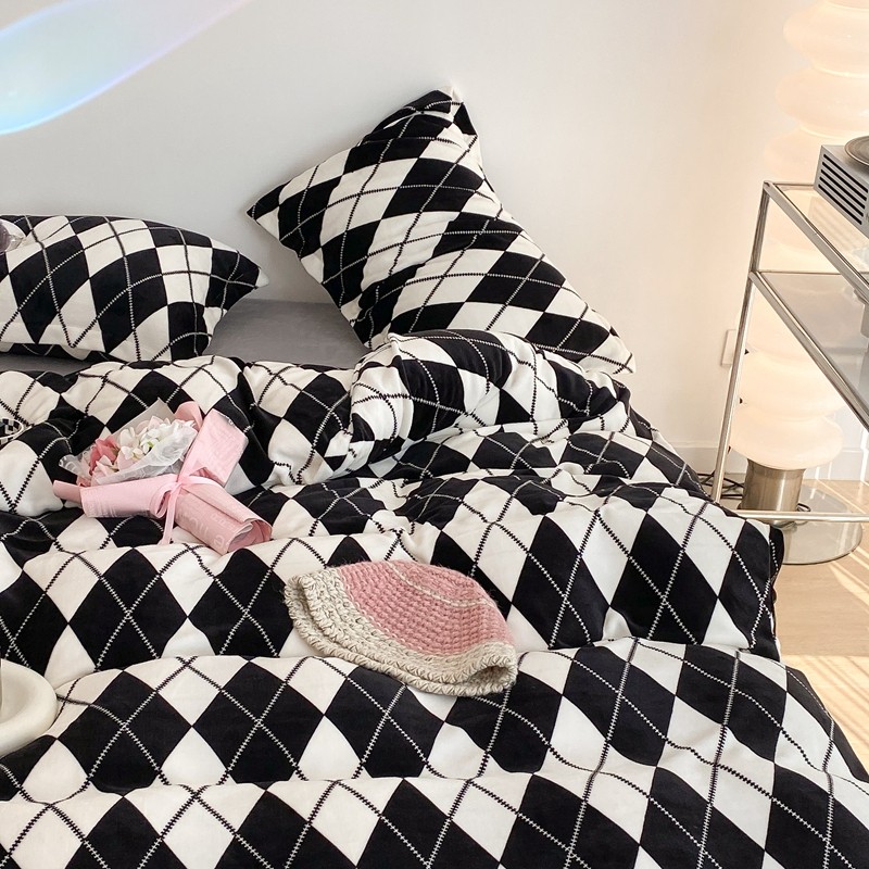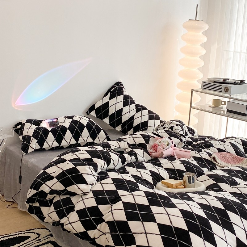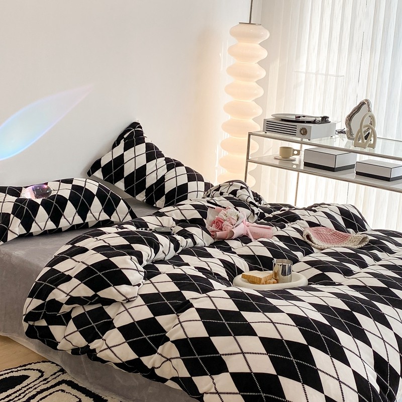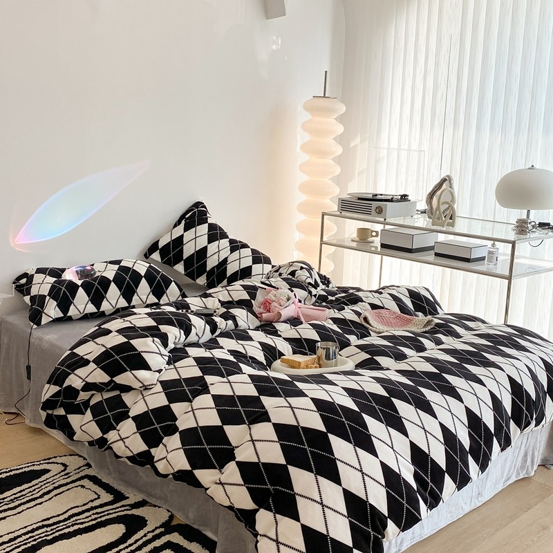 昔可家纺 2021新款牛奶绒四件套-三批 菱格-黑灰