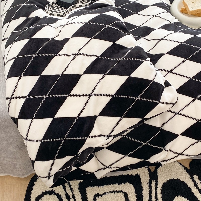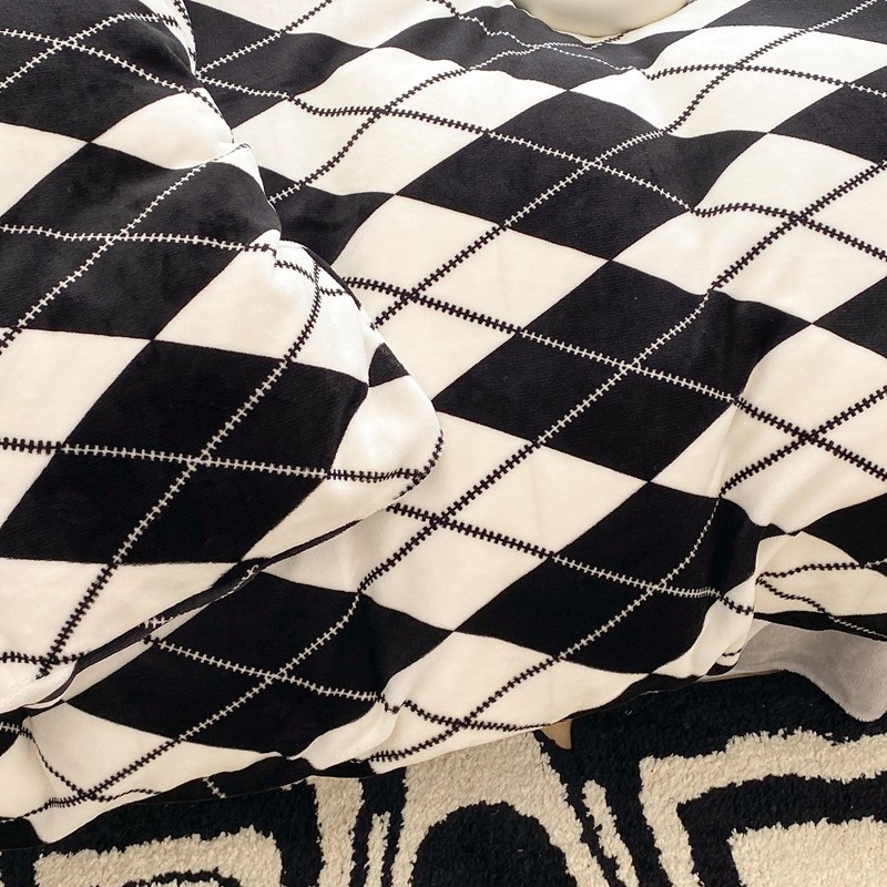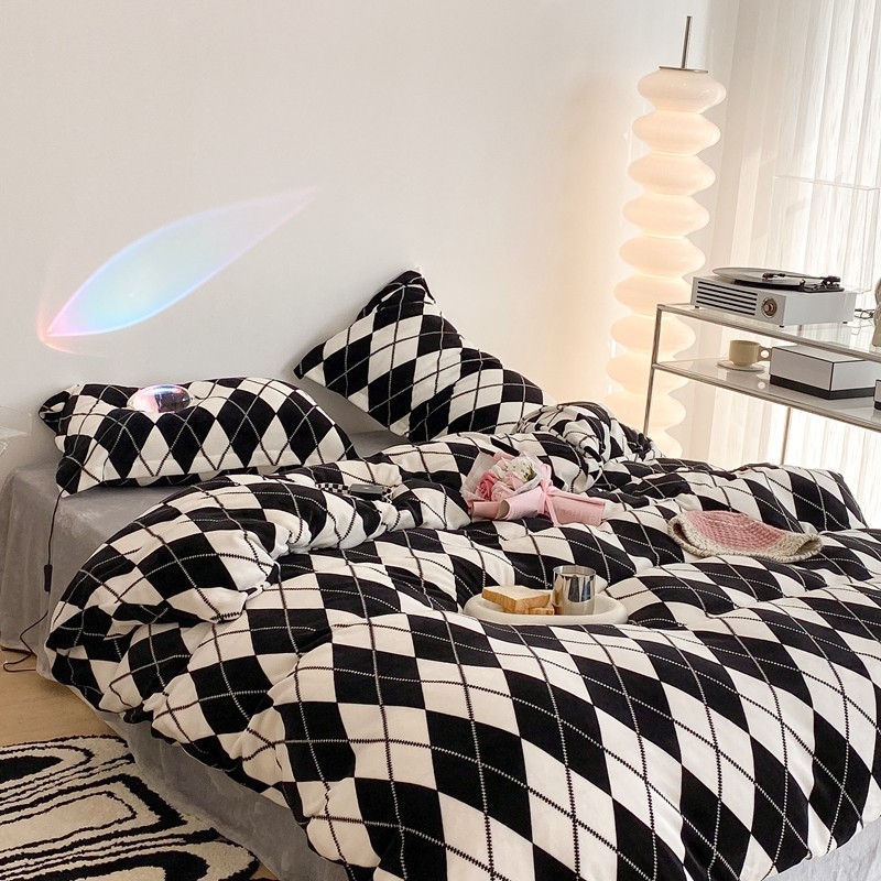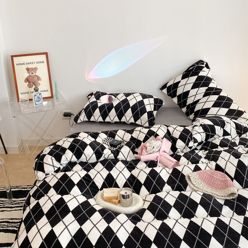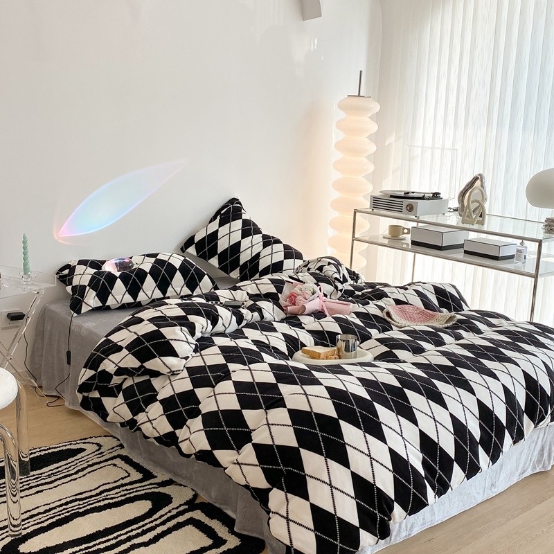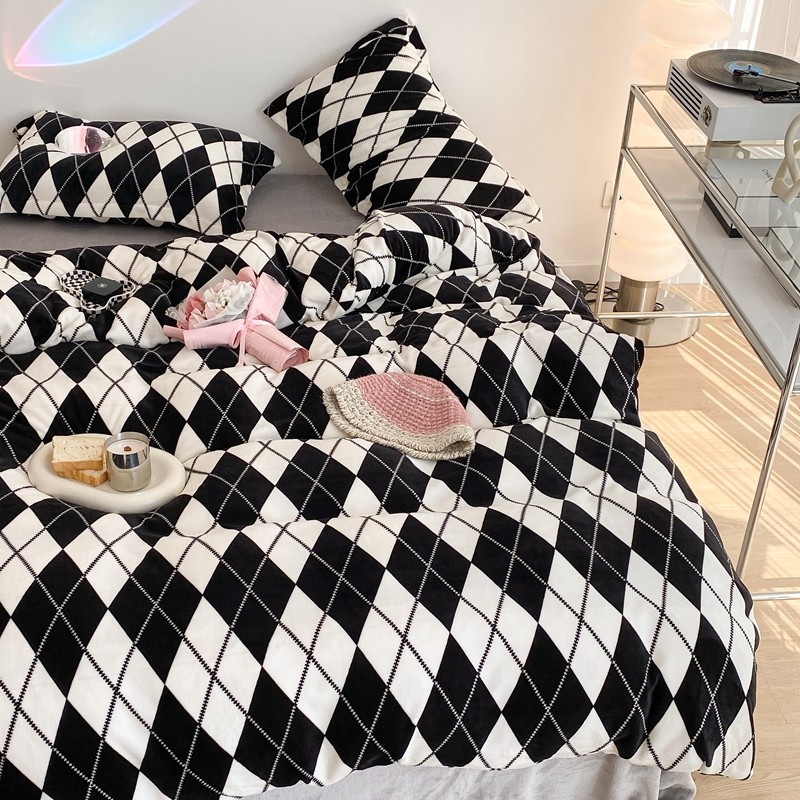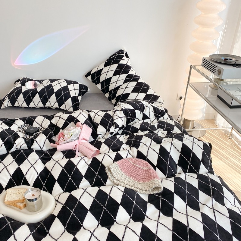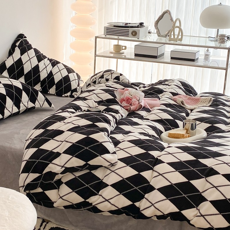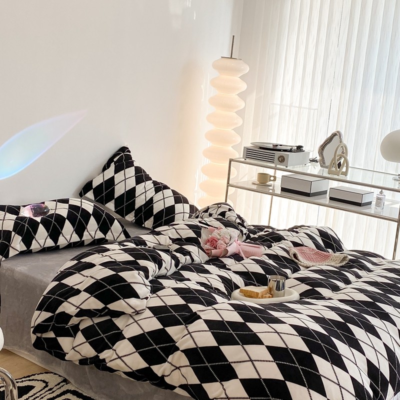 昔可家纺 2021新款牛奶绒四件套-三批 菱格-黑灰