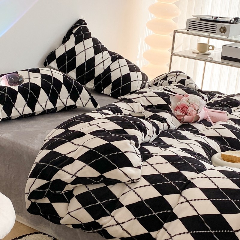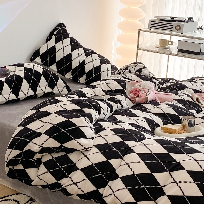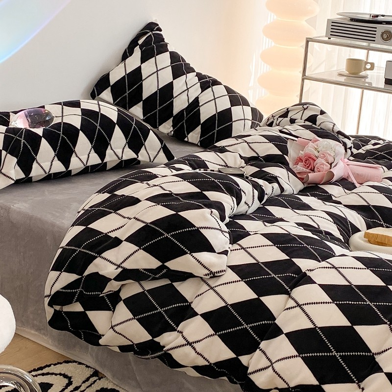商品名称:昔可家纺 2021新款牛奶绒四件套-三批 菱格-黑灰
