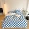 昔可家纺 2021新款泰迪羊羔绒印花四件套蓝色棋盘格