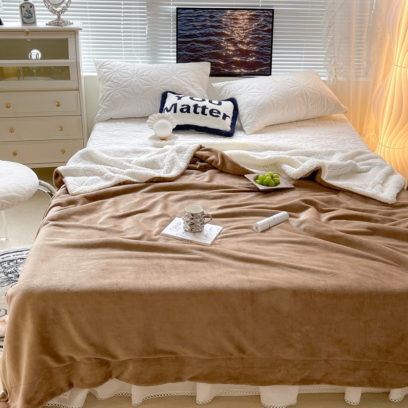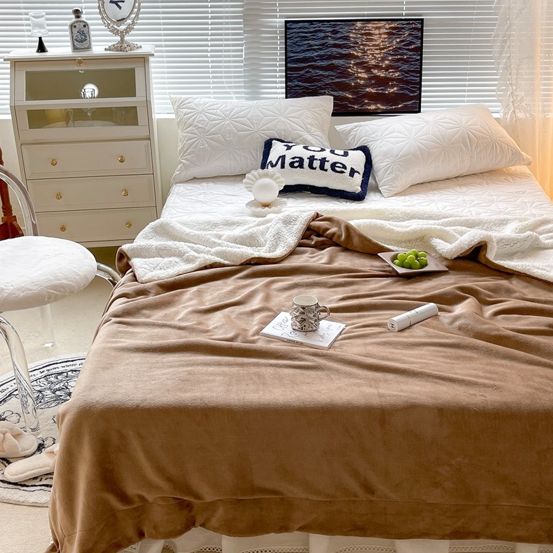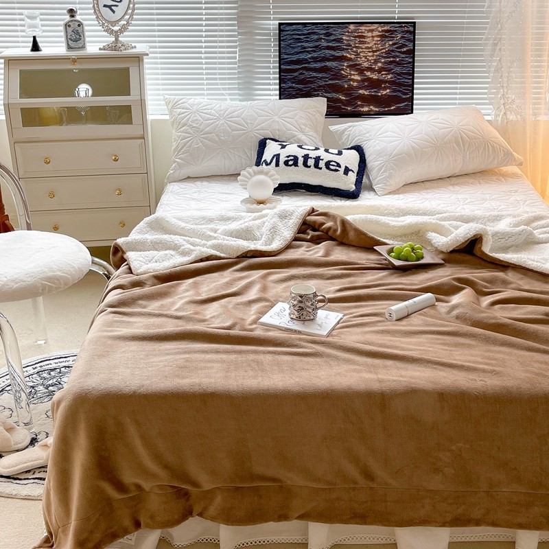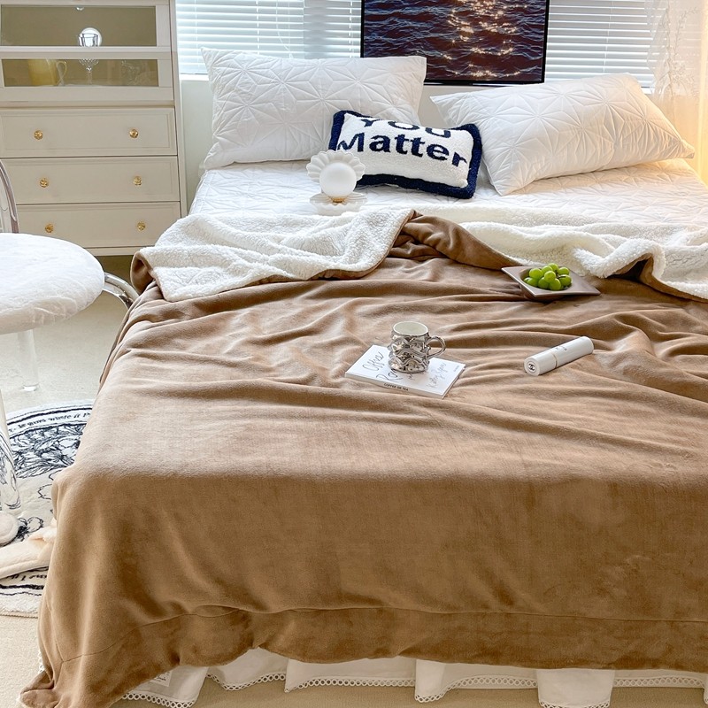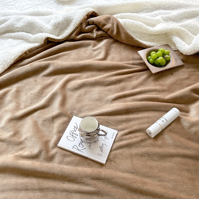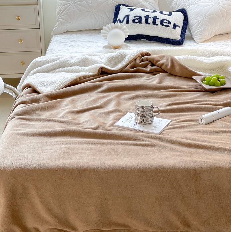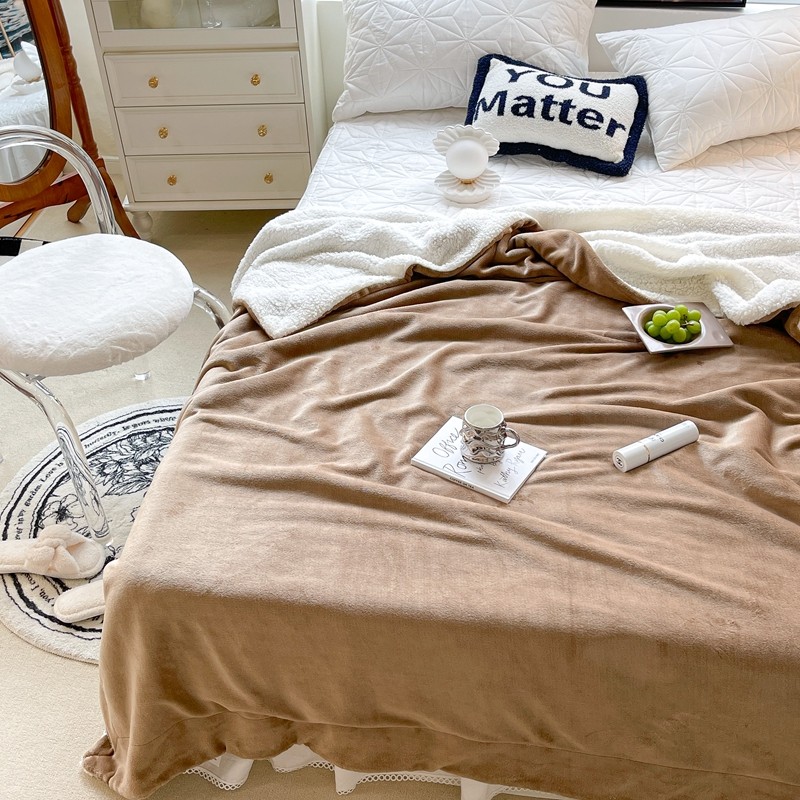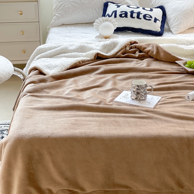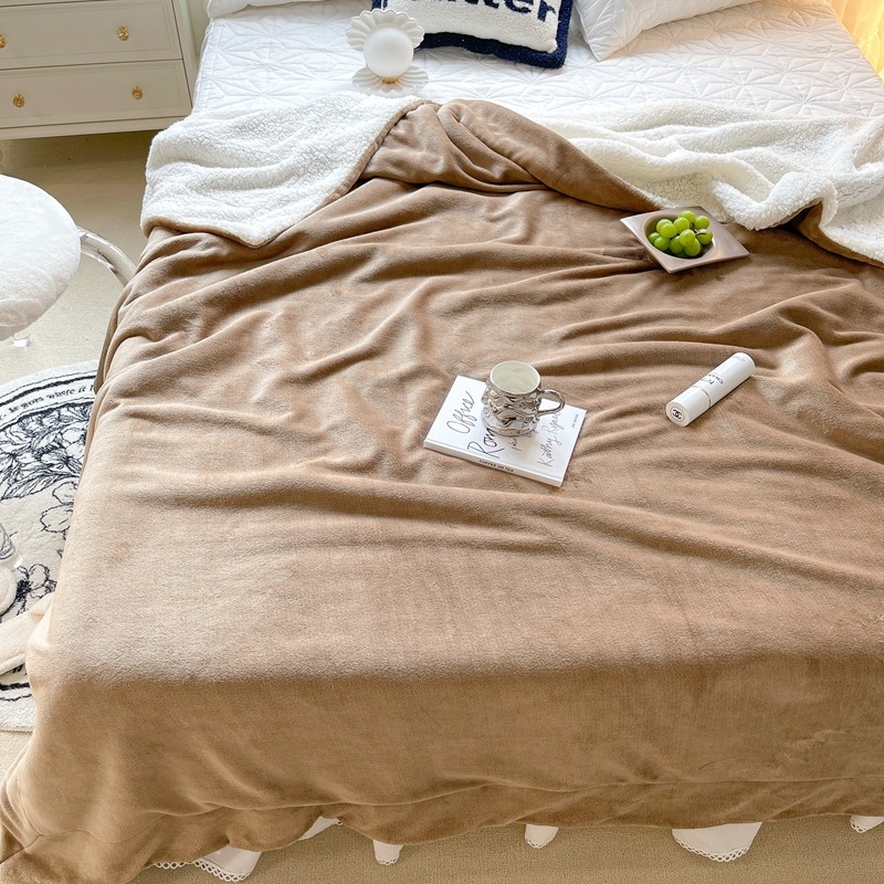 昔可家纺 2021新款素色牛奶绒羊羔绒毛毯 复古棕