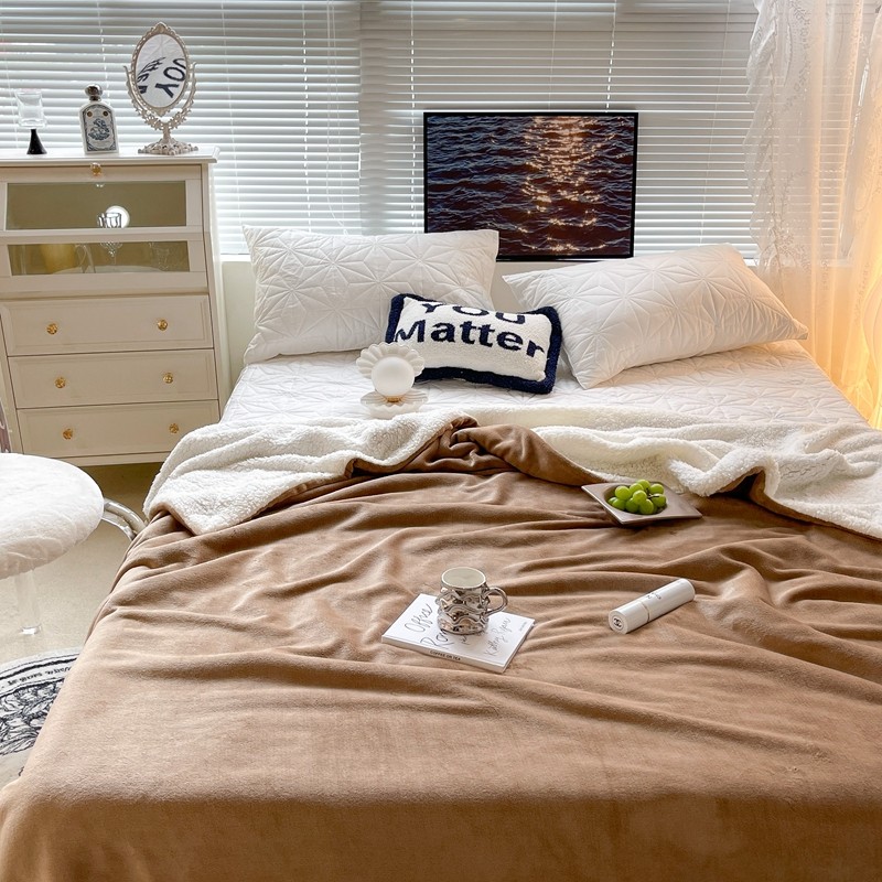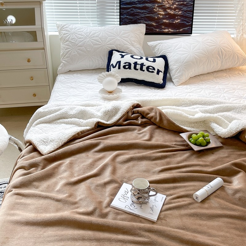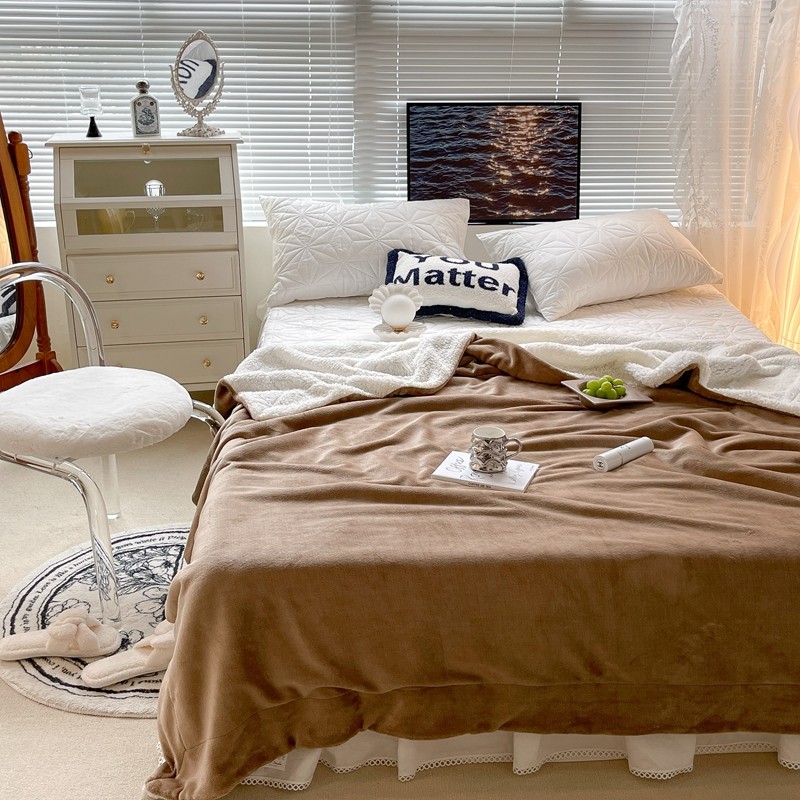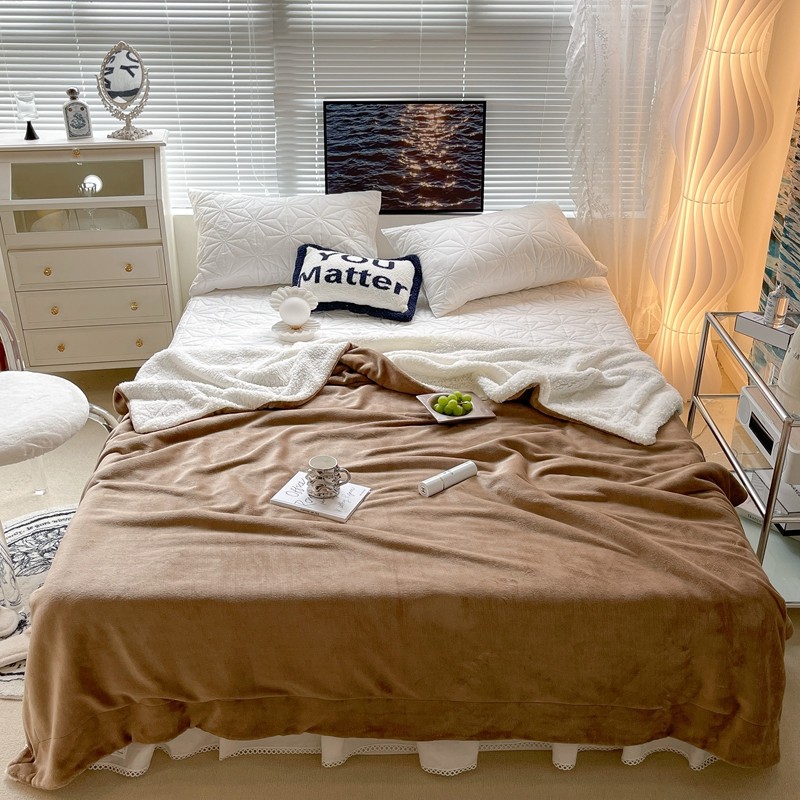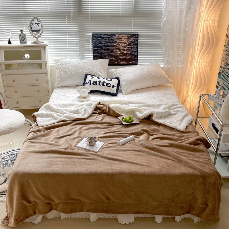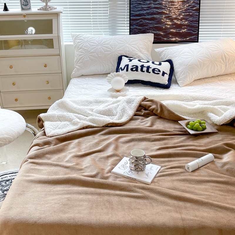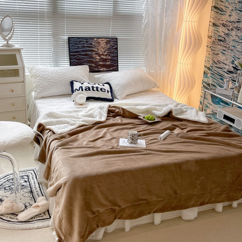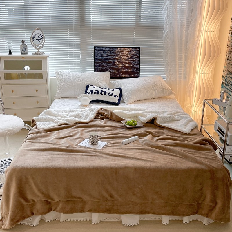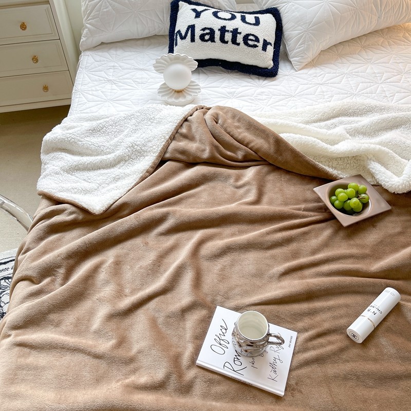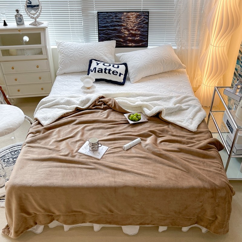 昔可家纺 2021新款素色牛奶绒羊羔绒毛毯 复古棕