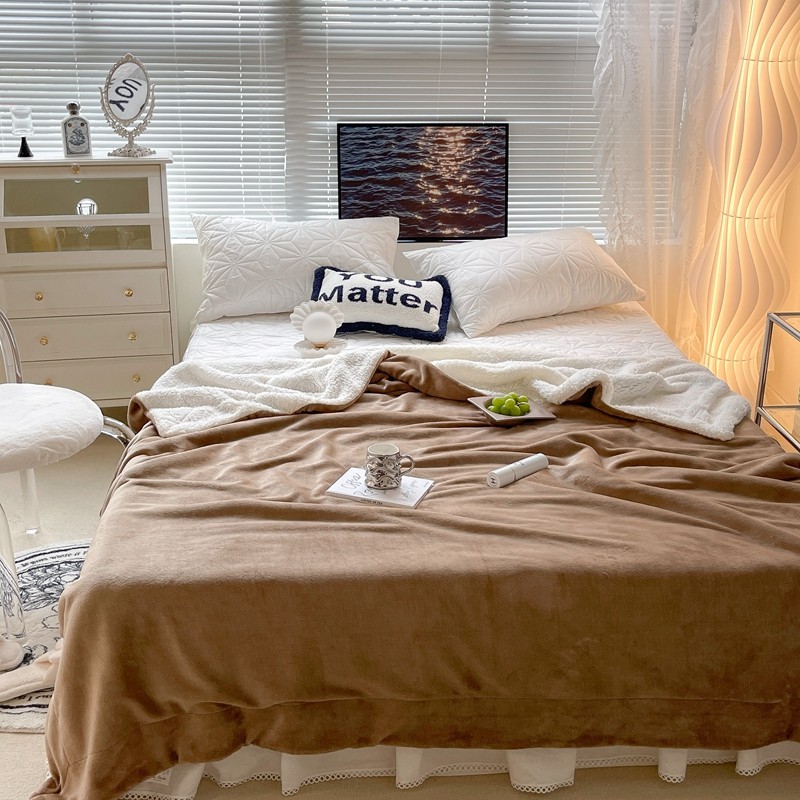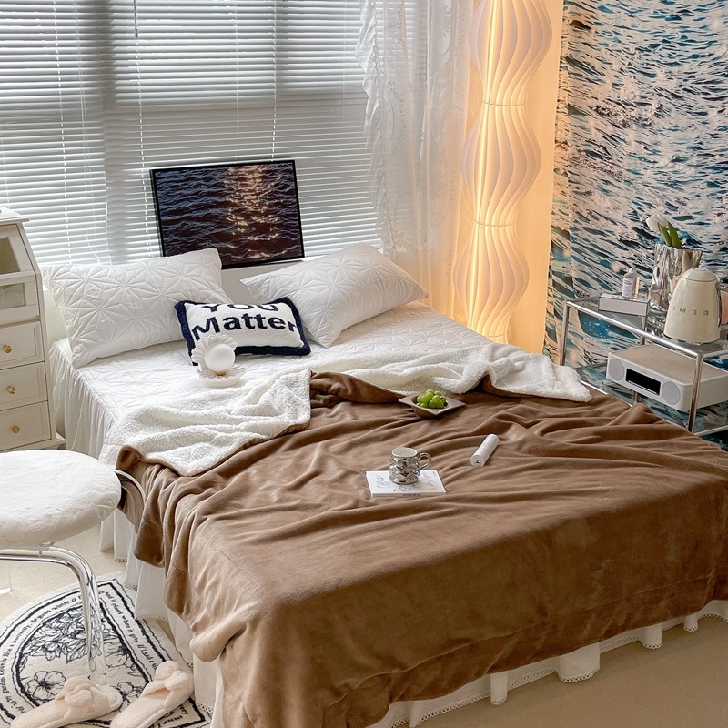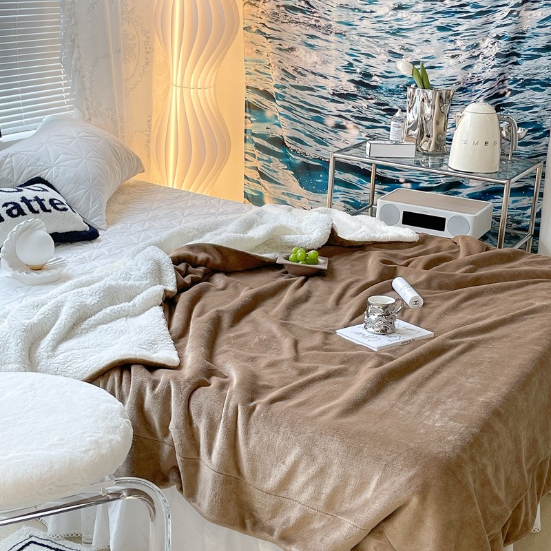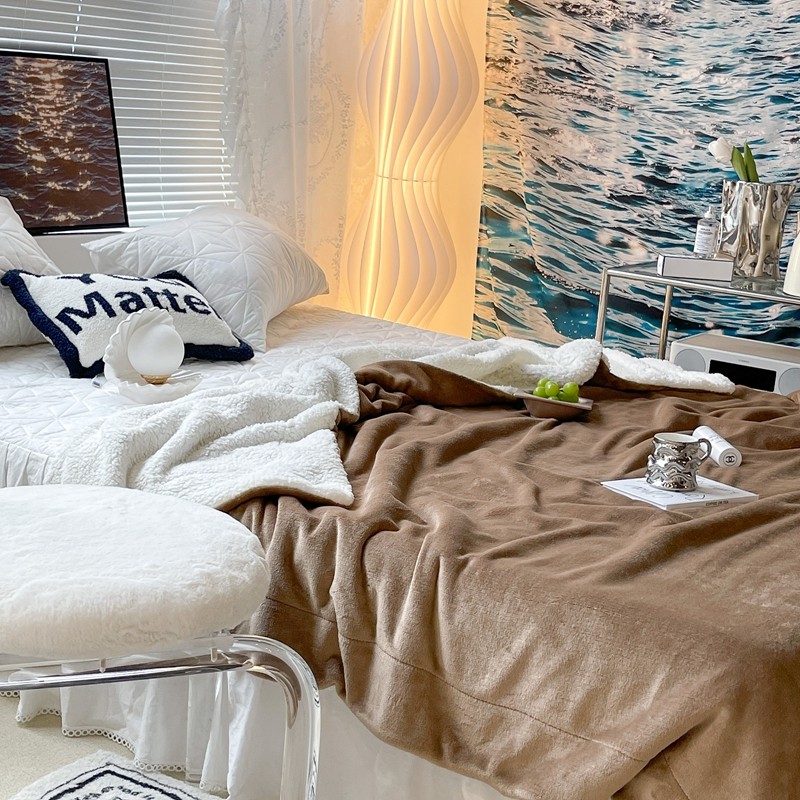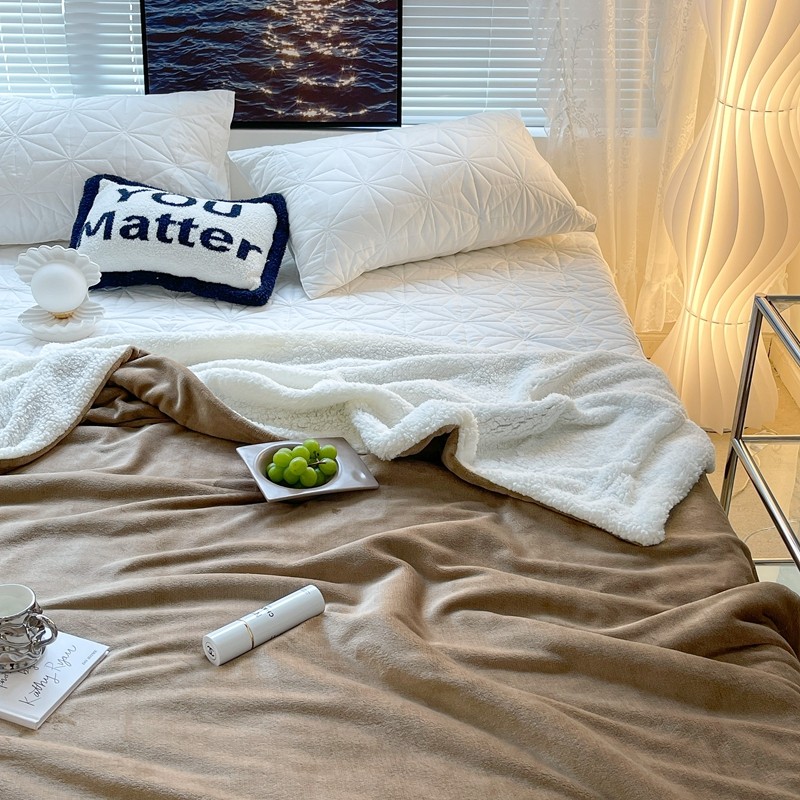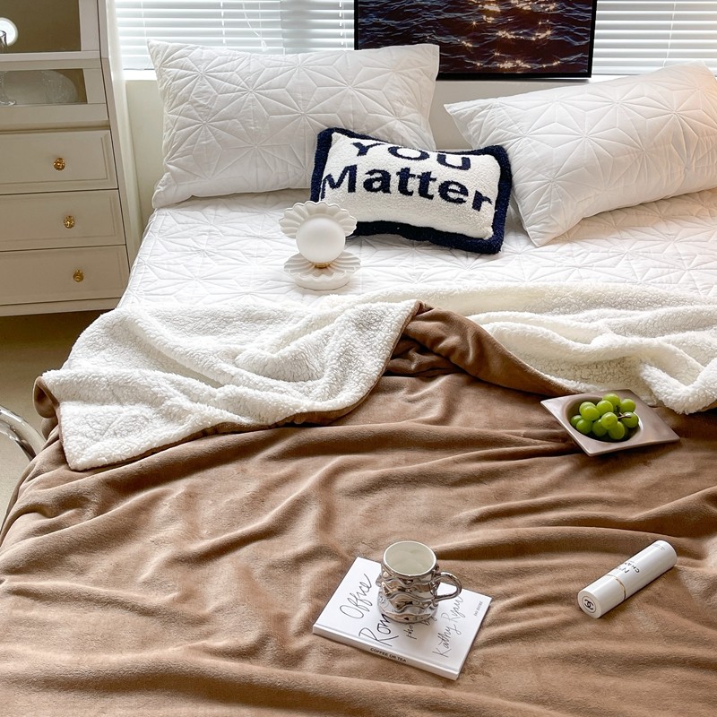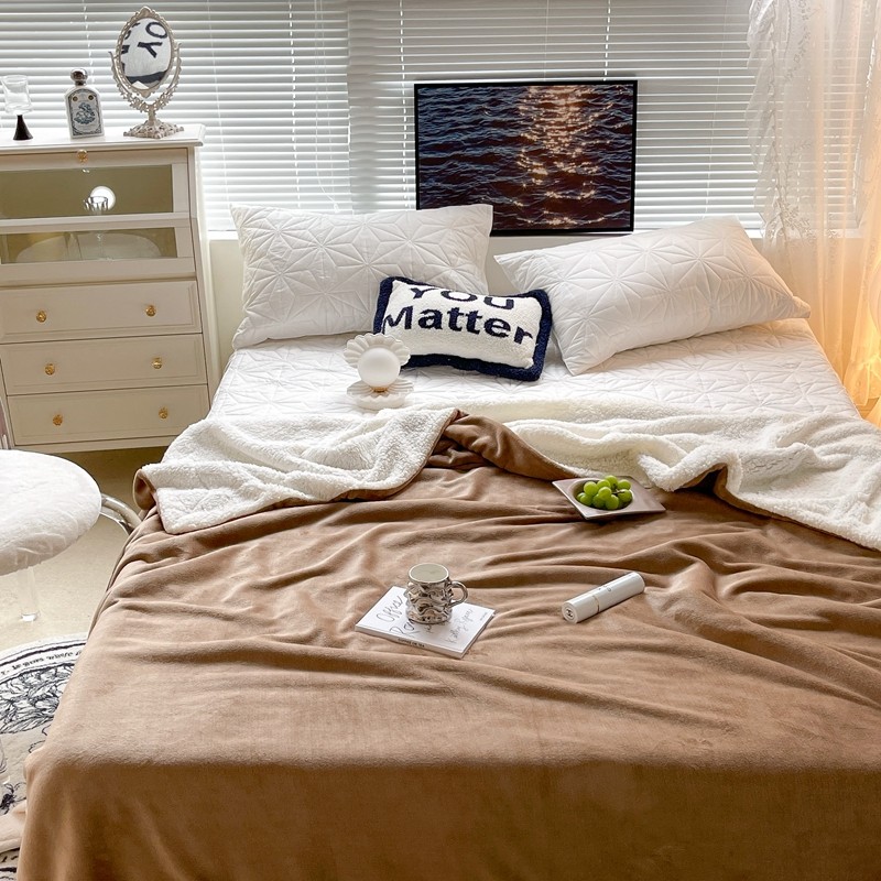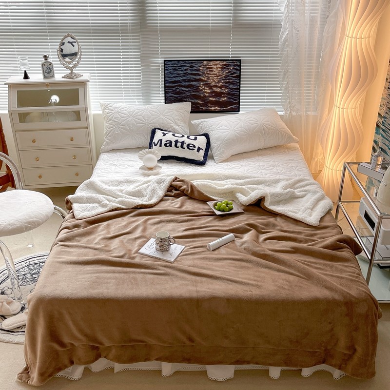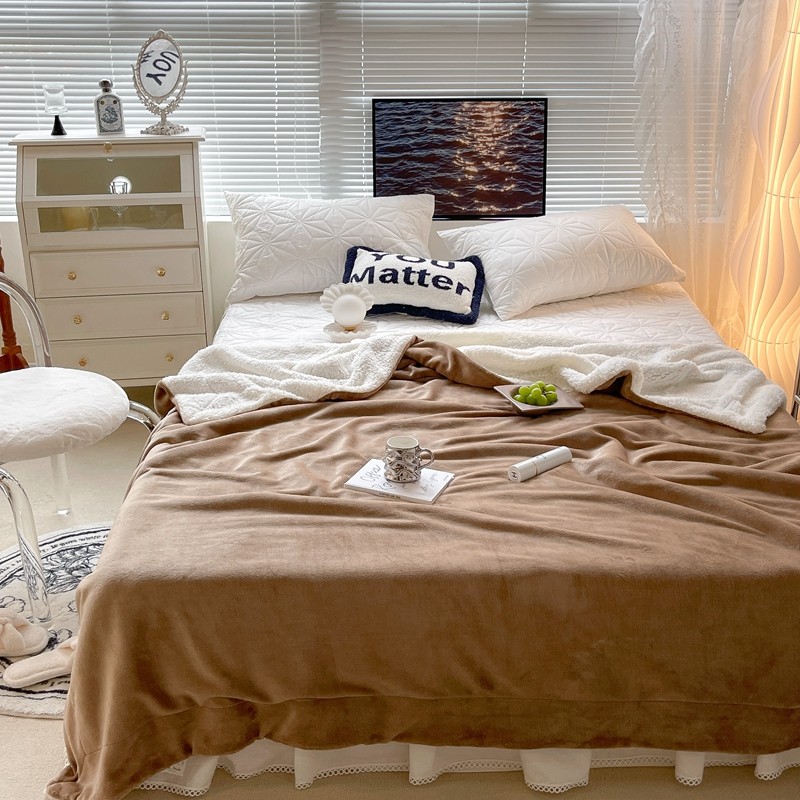 昔可家纺 2021新款素色牛奶绒羊羔绒毛毯 复古棕