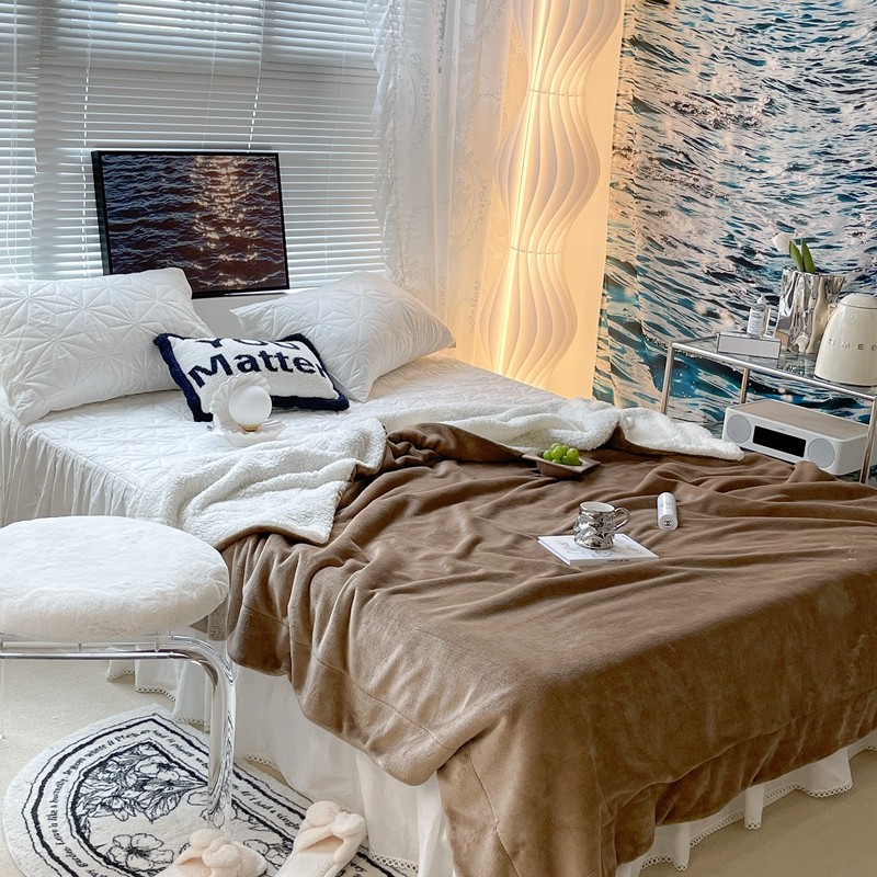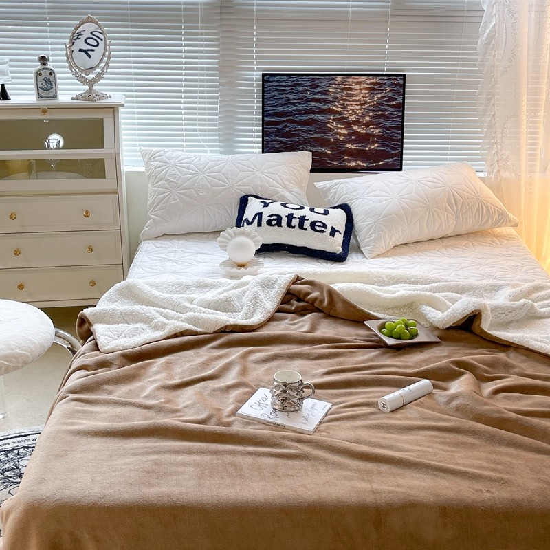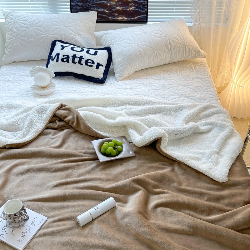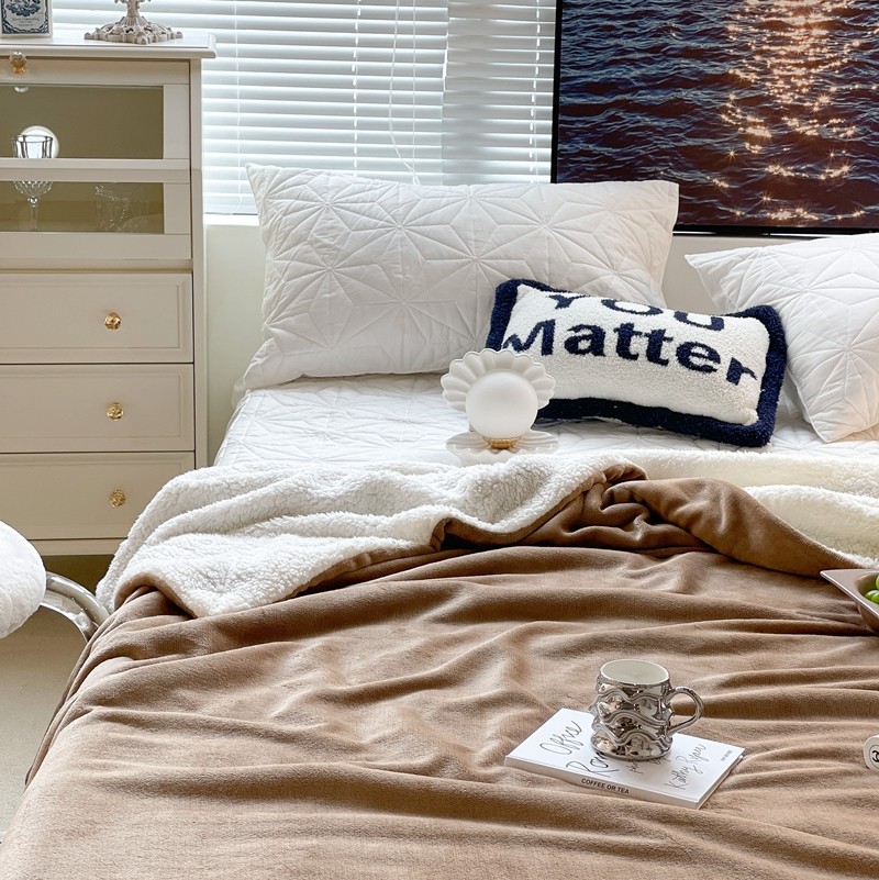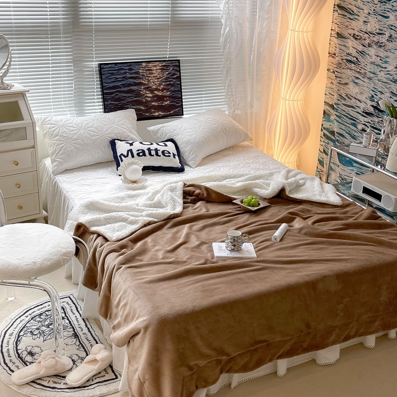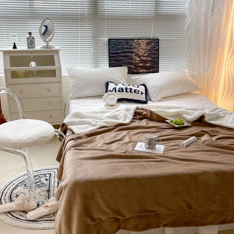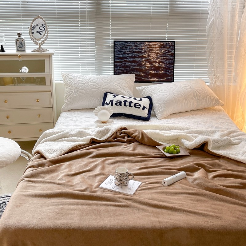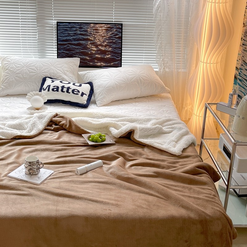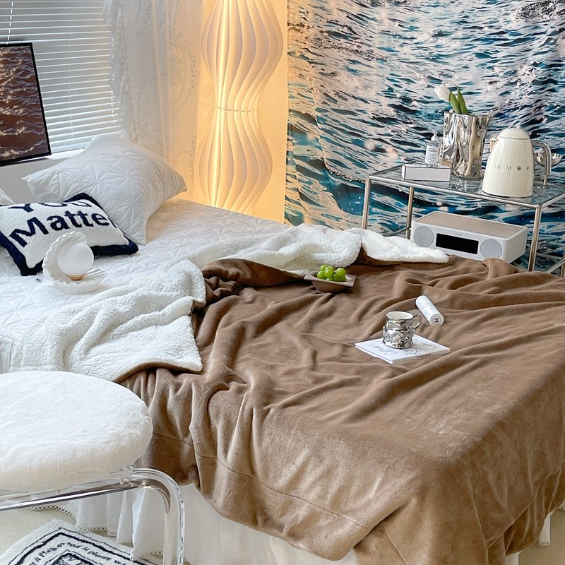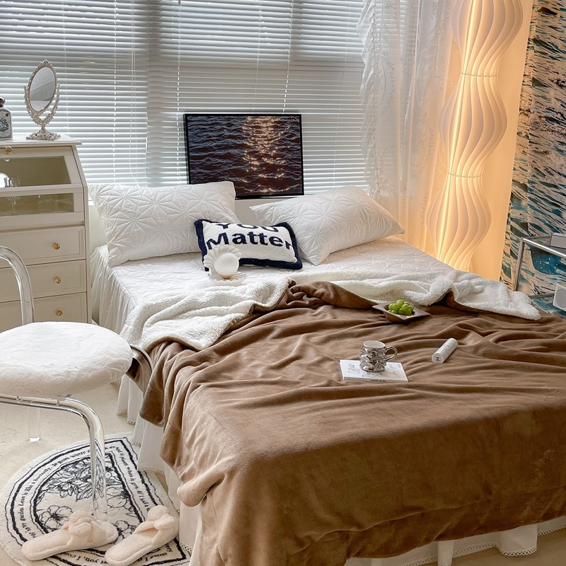 昔可家纺 2021新款素色牛奶绒羊羔绒毛毯 复古棕